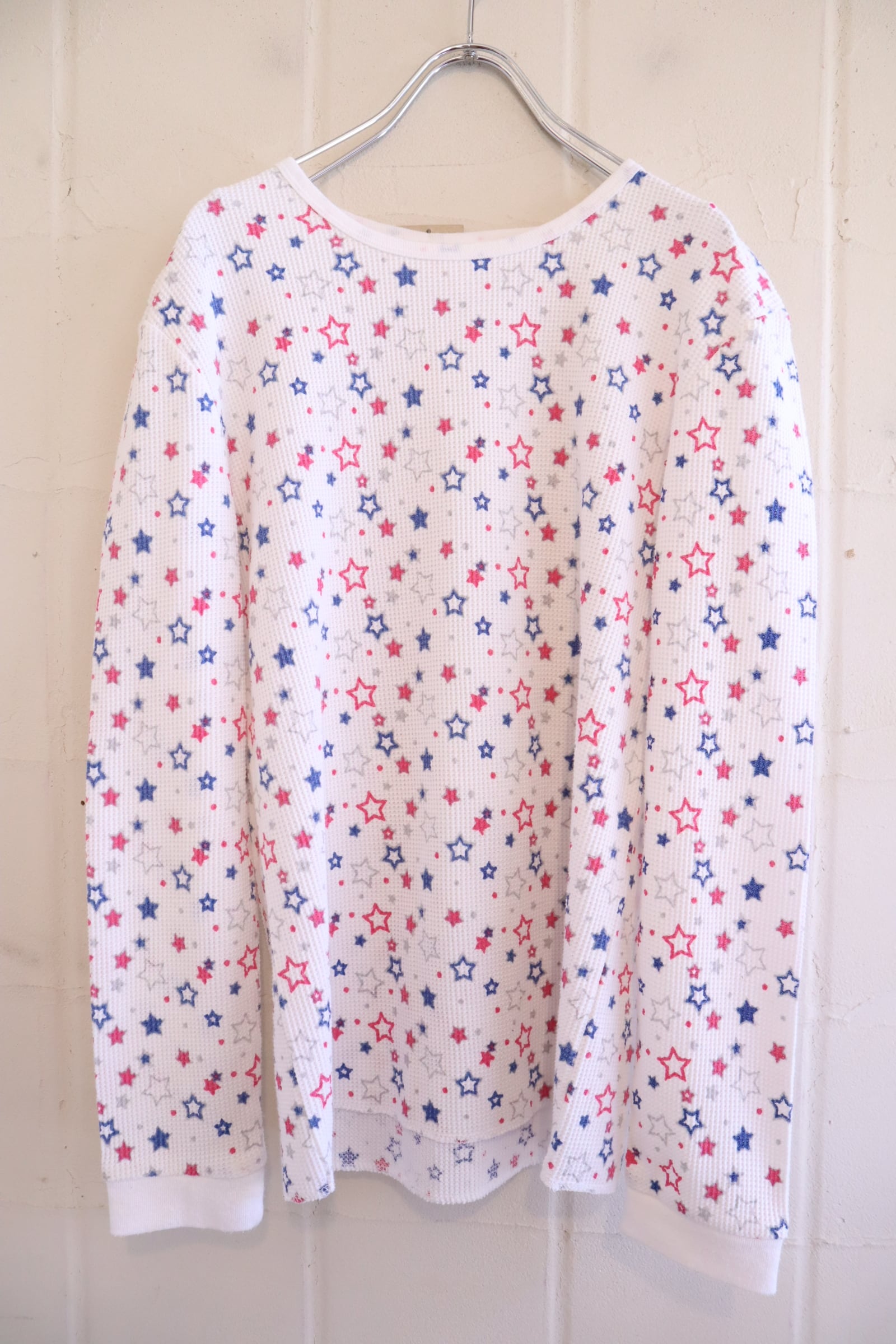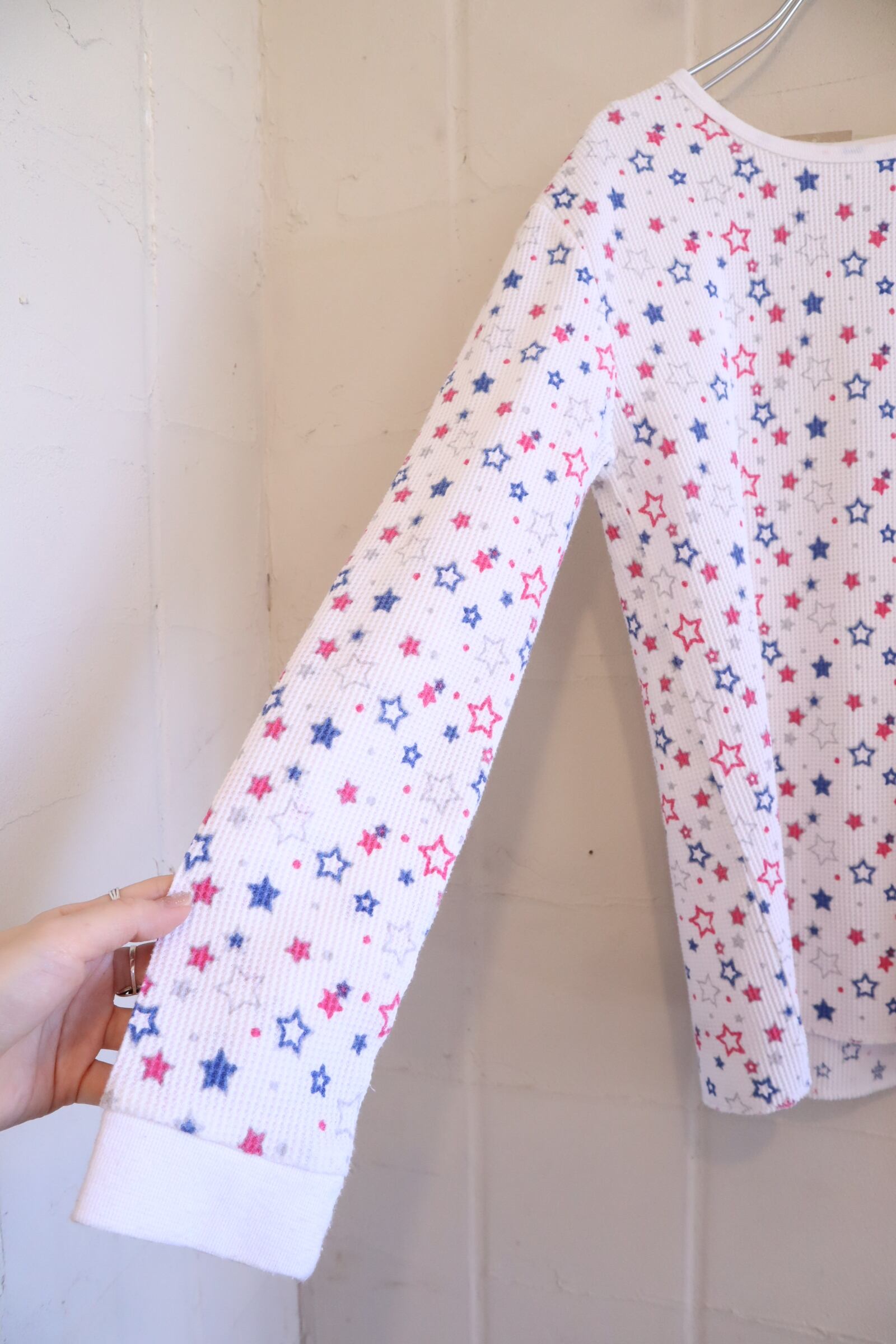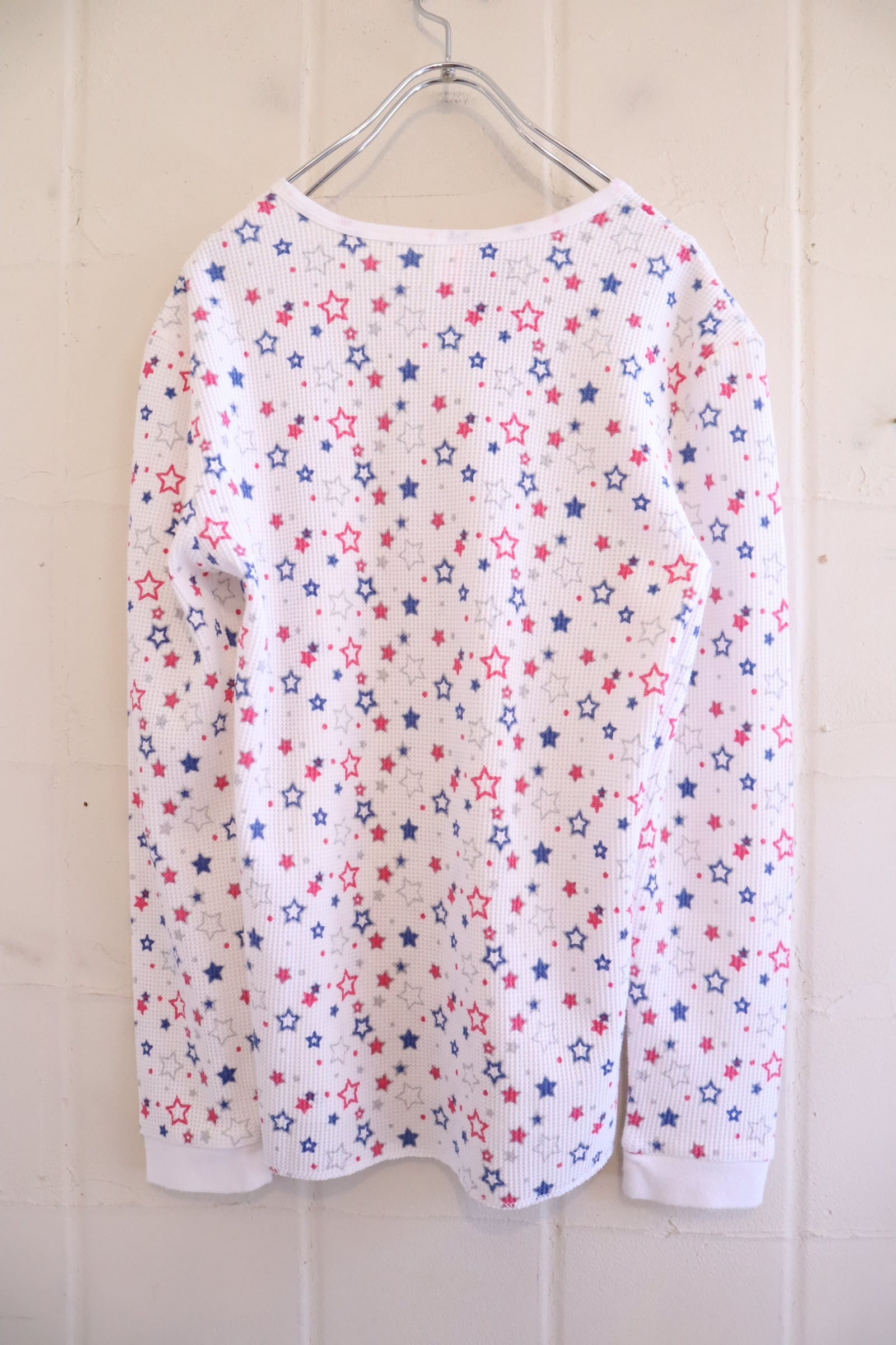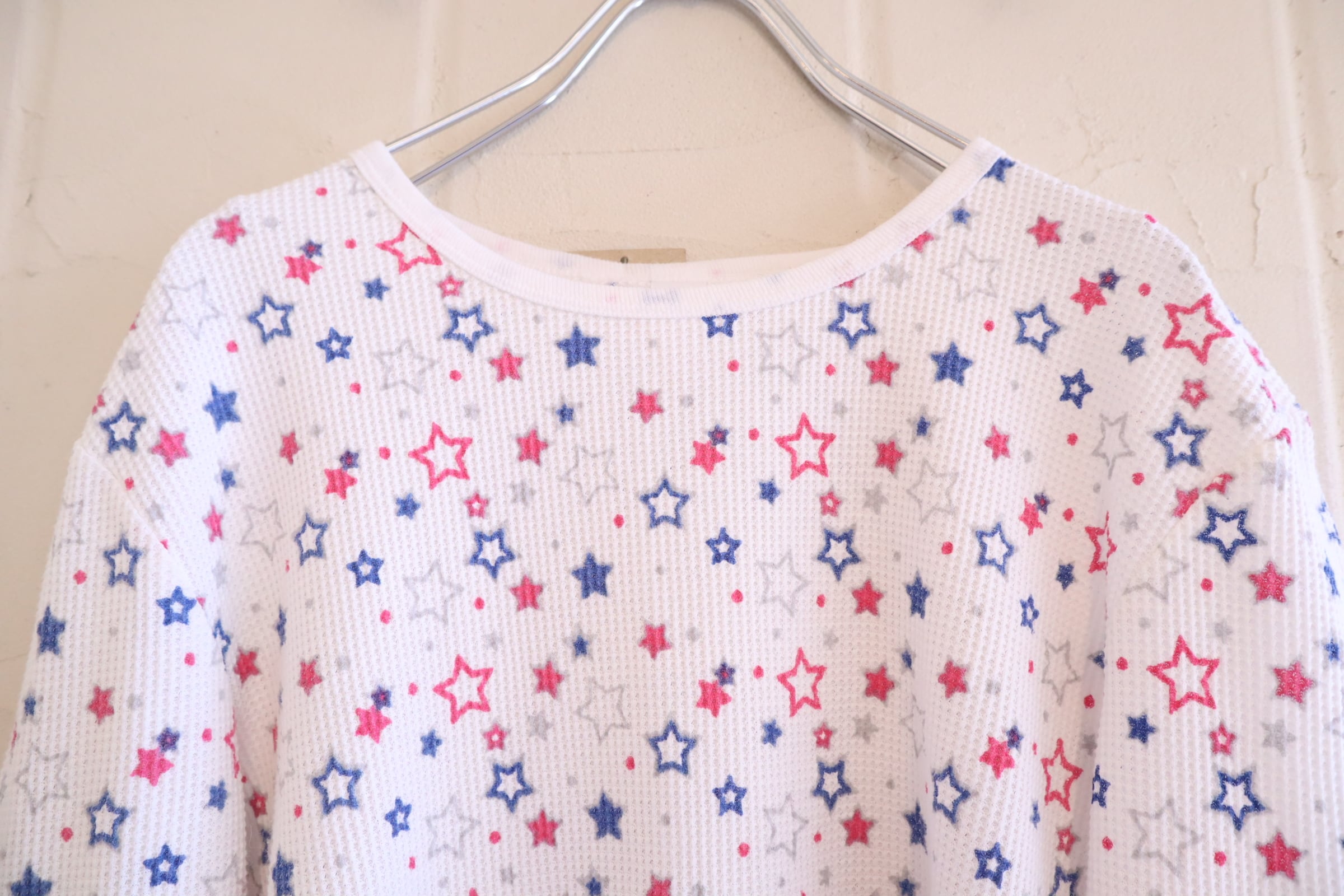 あまり見ない星柄とポップなカラーリングがとっても可愛いサーマルトップスです☆