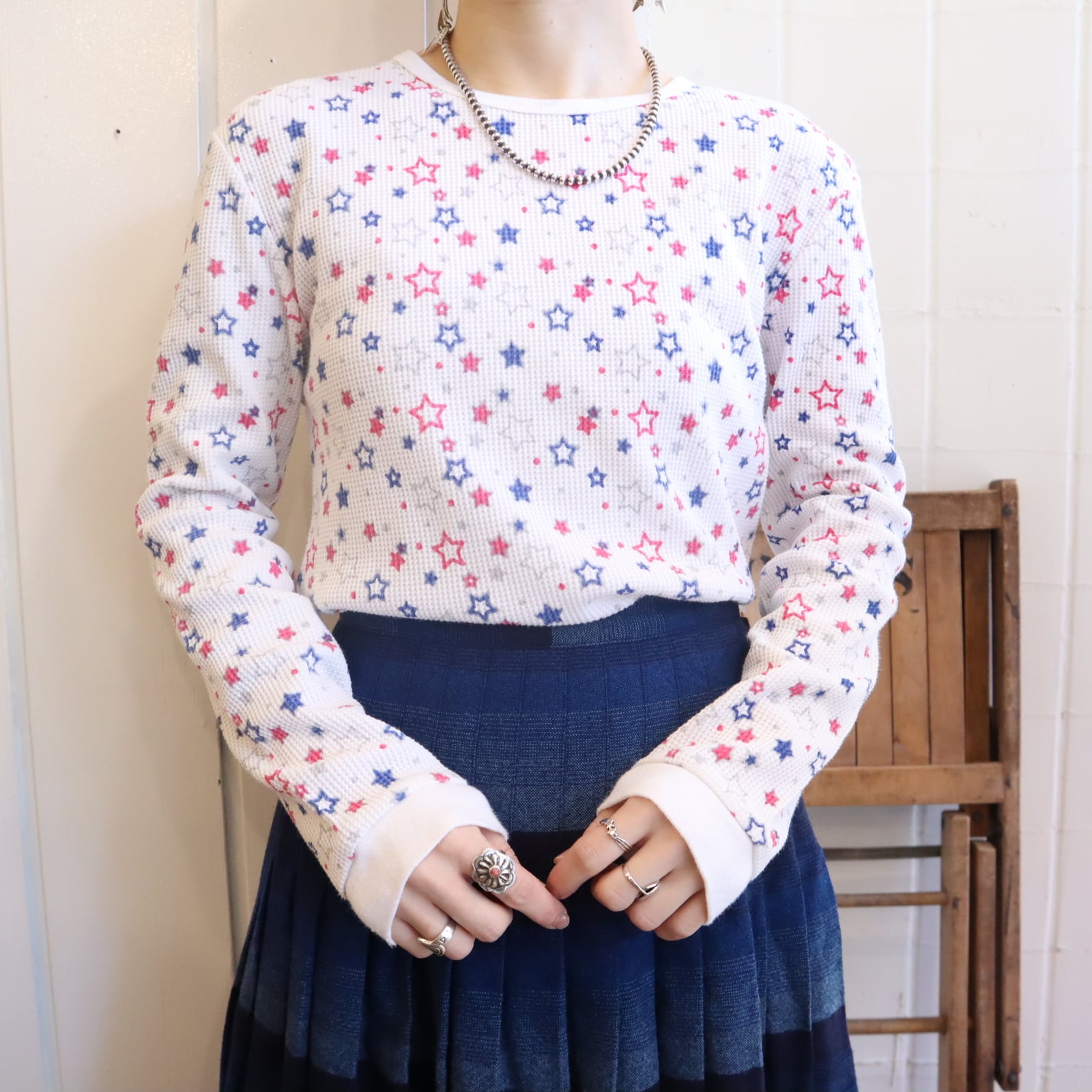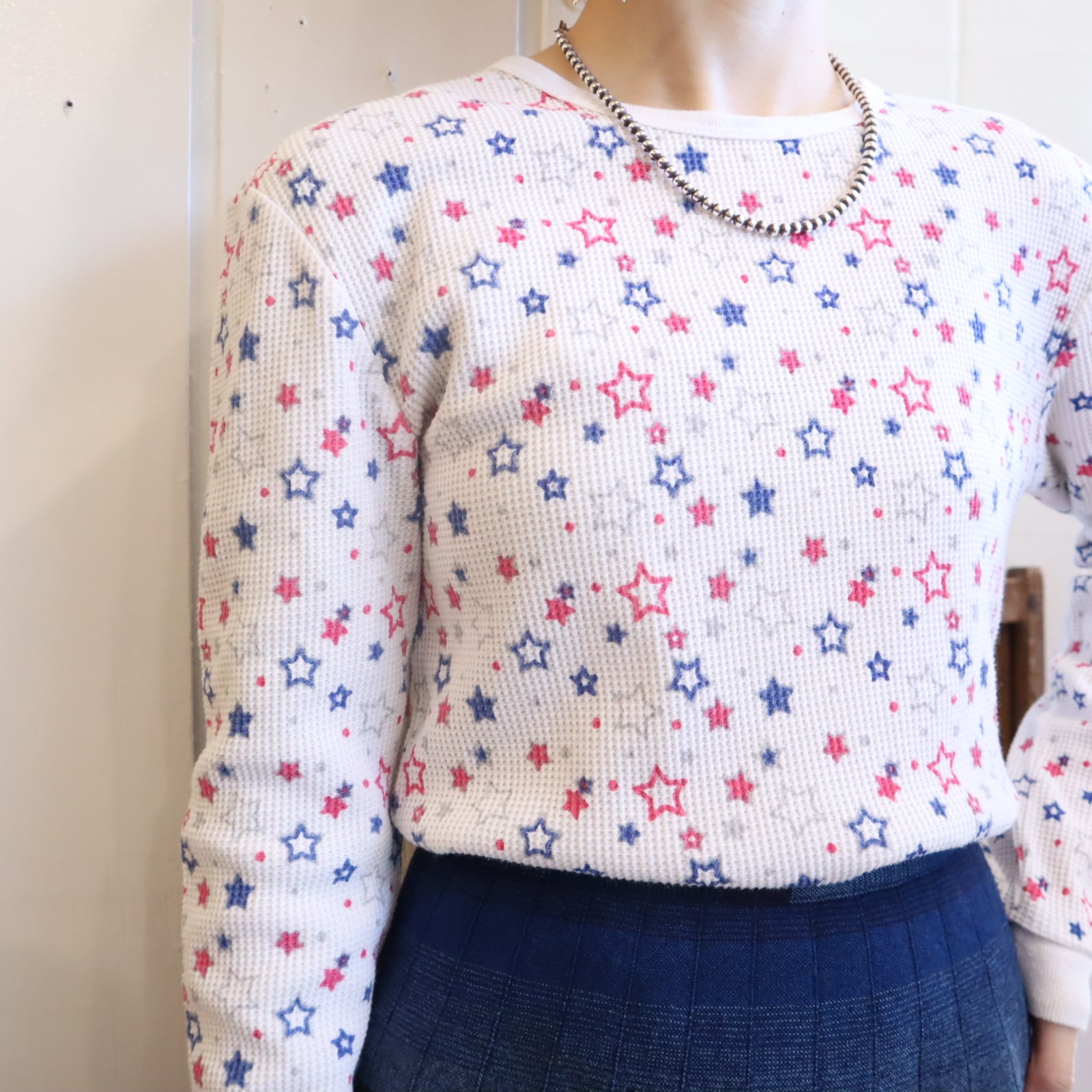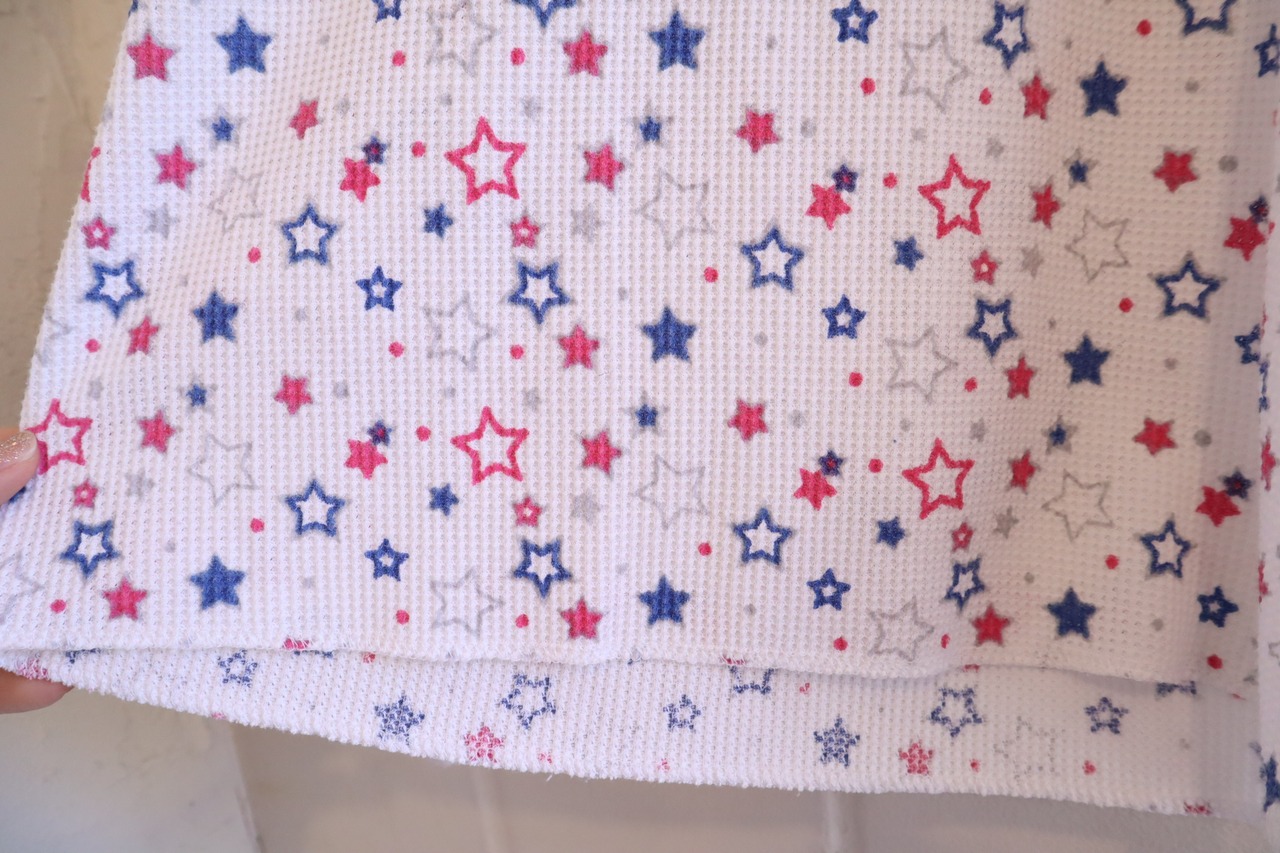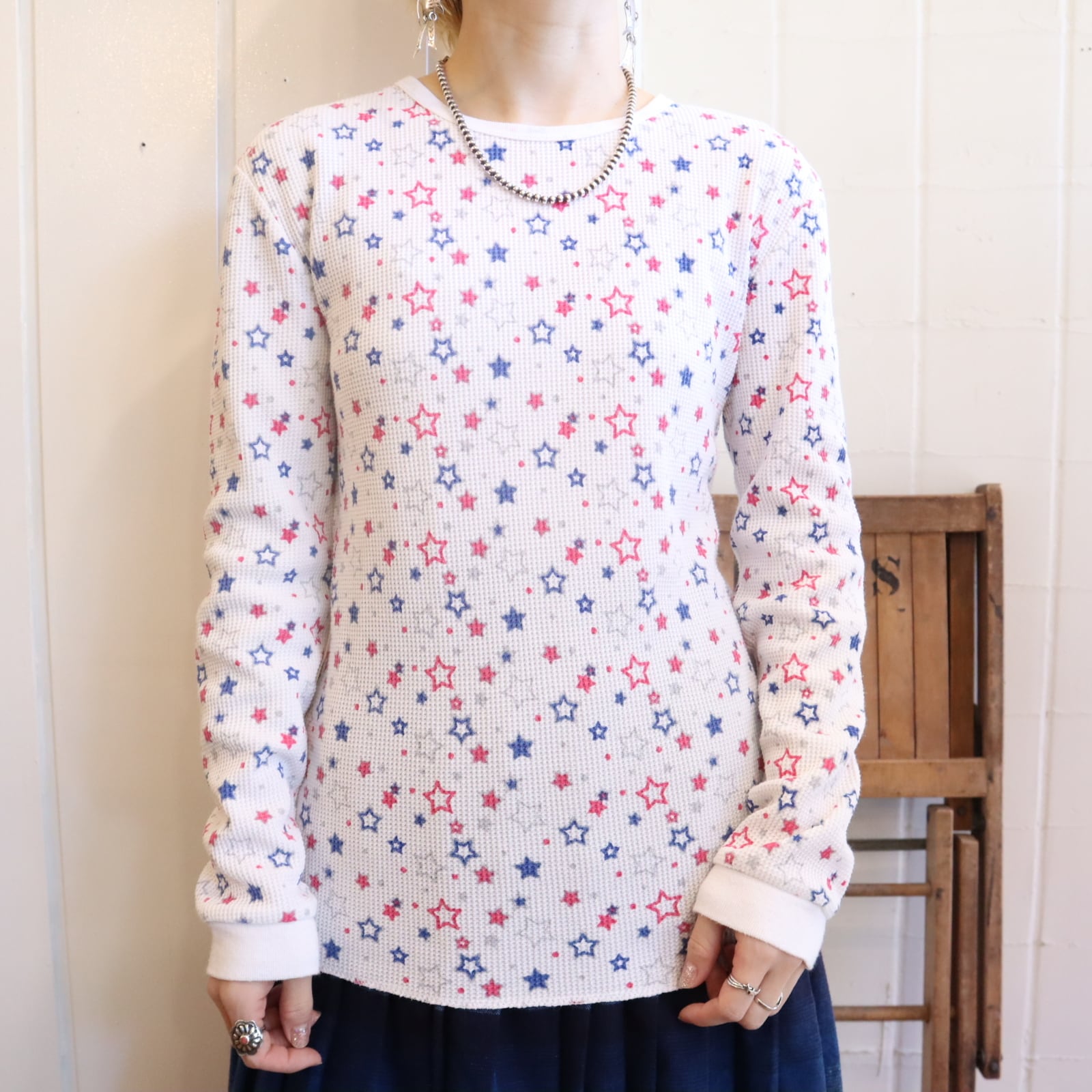 あまり見ない星柄とポップなカラーリングがとっても可愛いサーマルトップスです☆