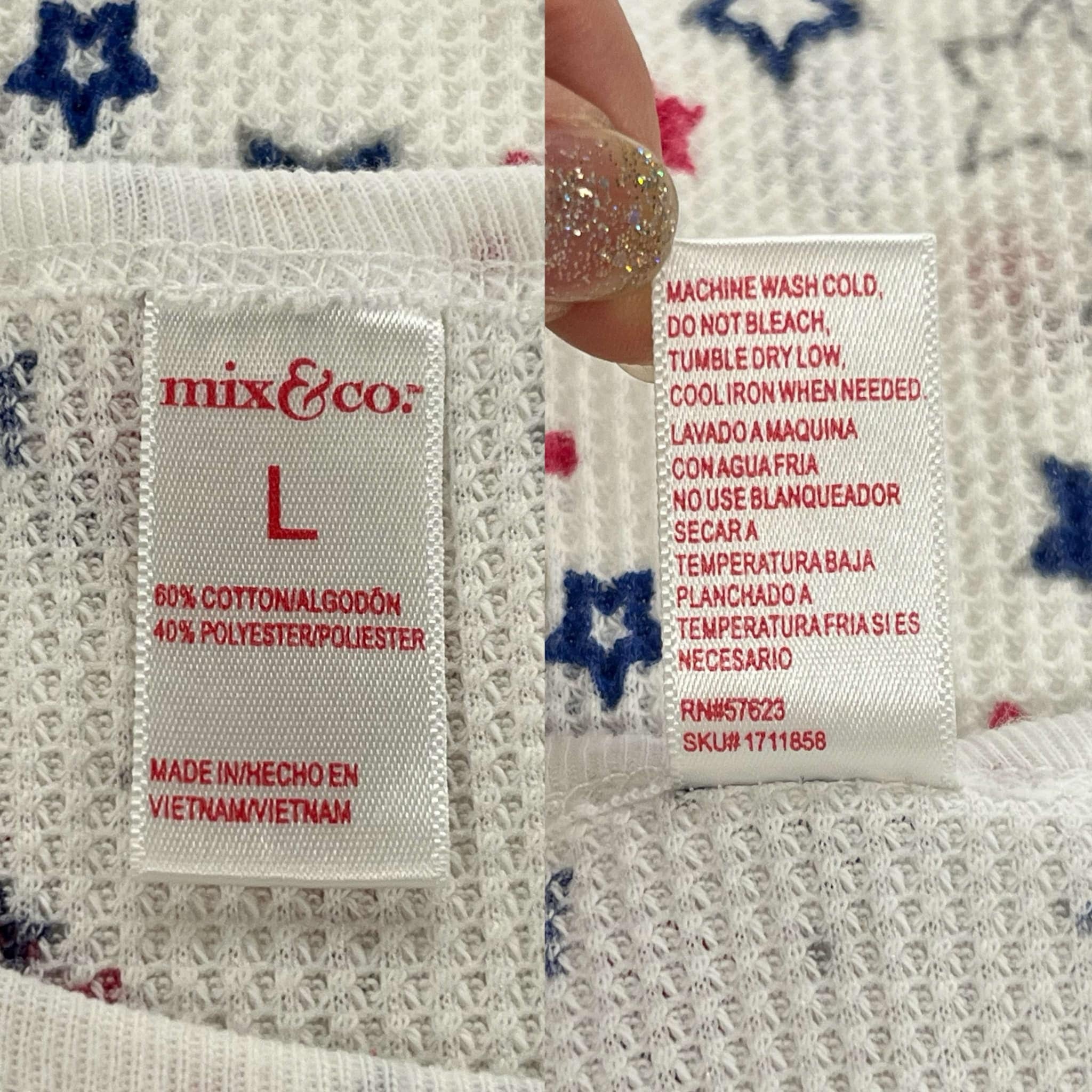 素材表記 60%コットン、40%ポリエステル
