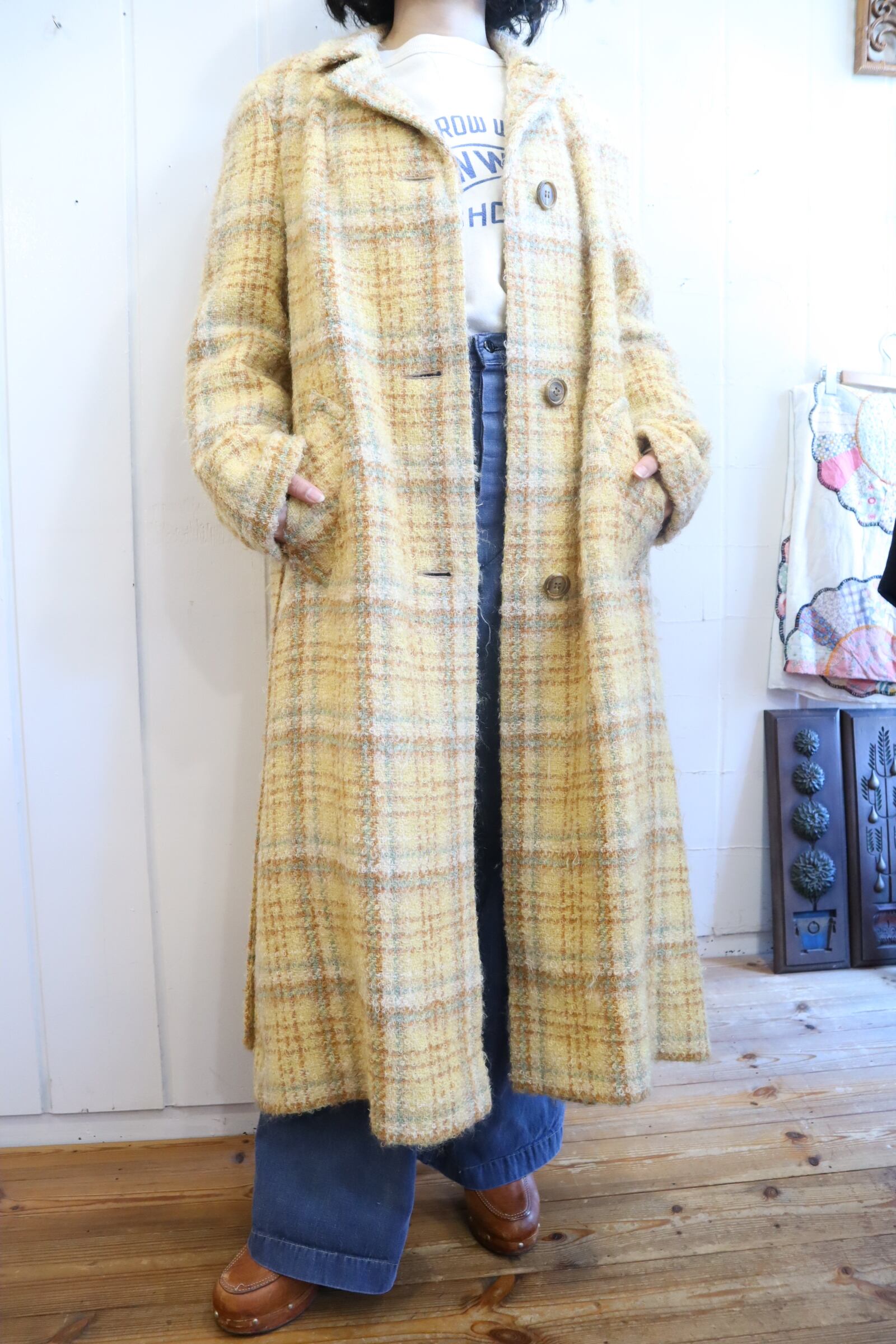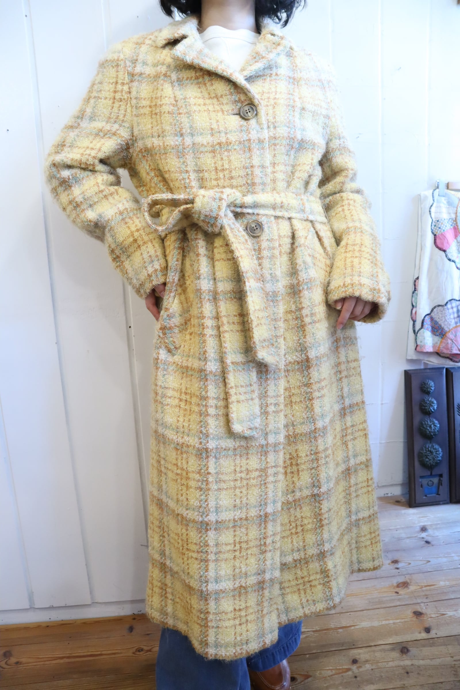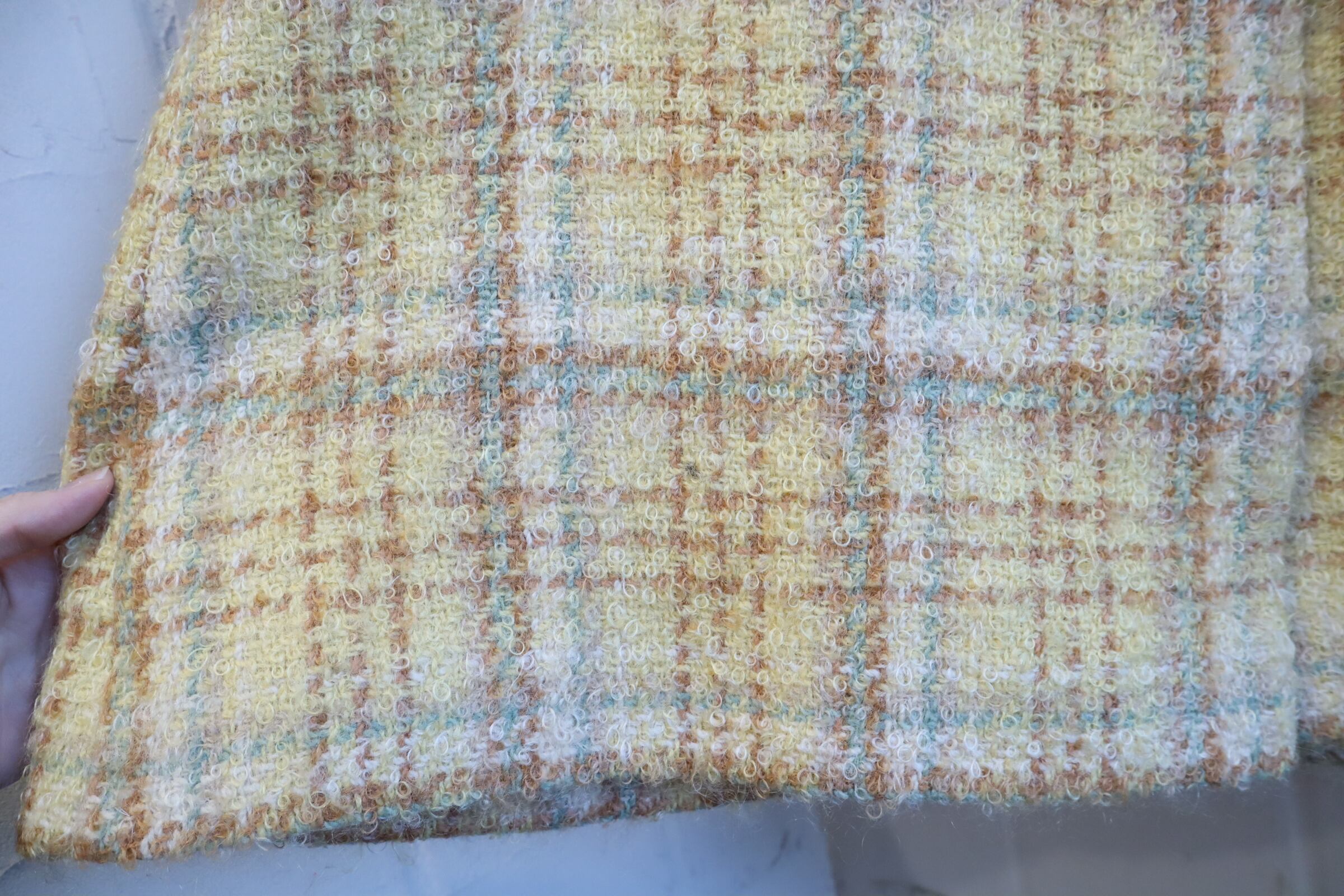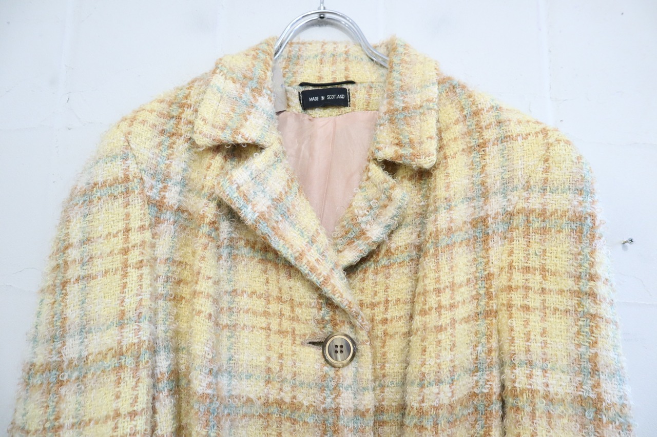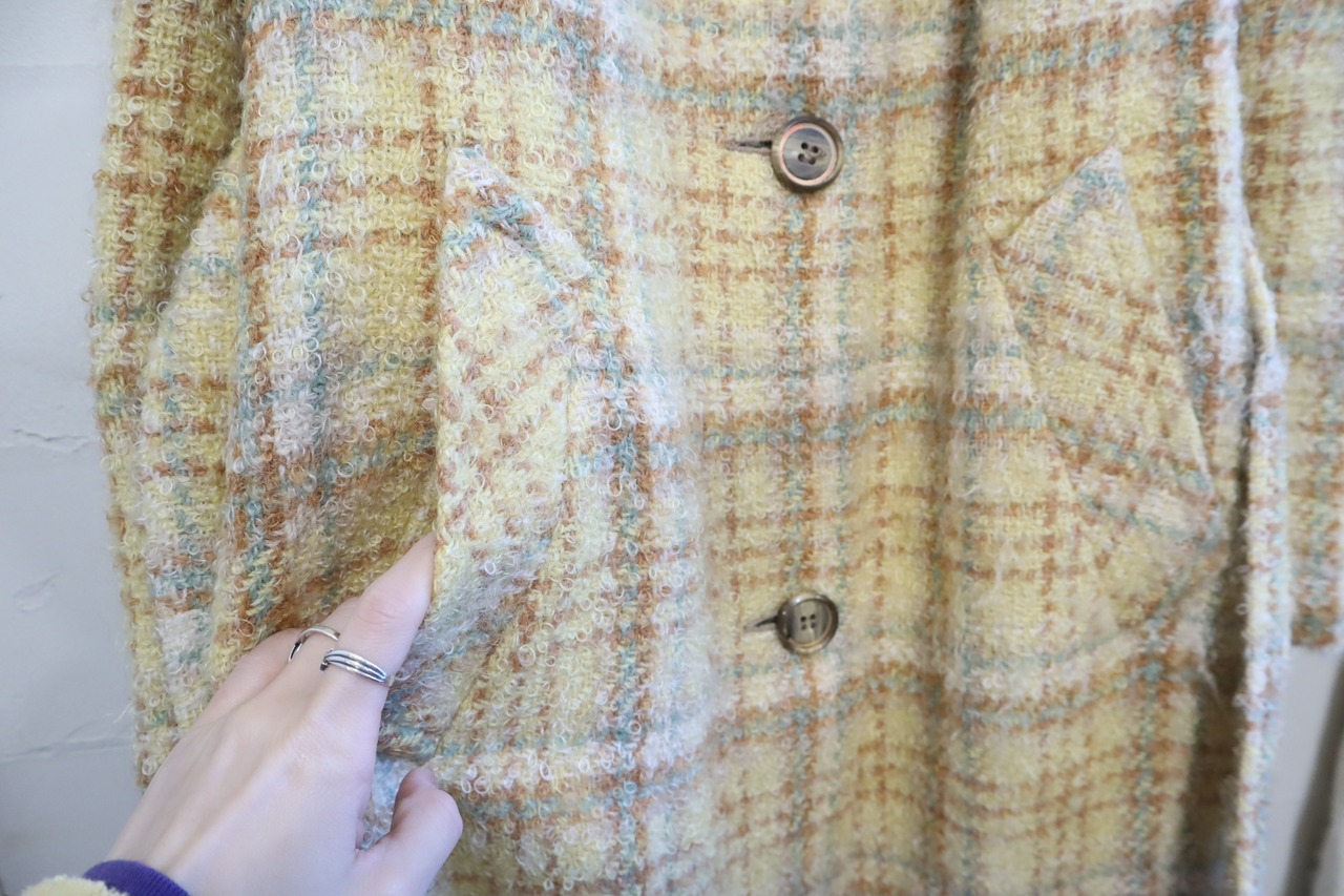 yellow×lightbrown plaid poodle yarn coat [l-4506]