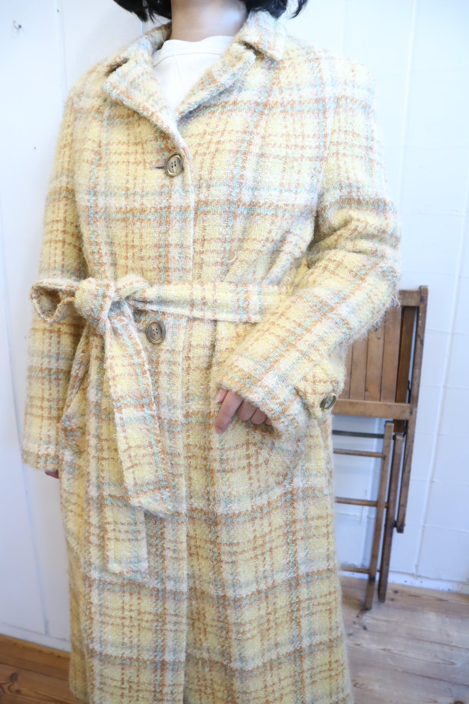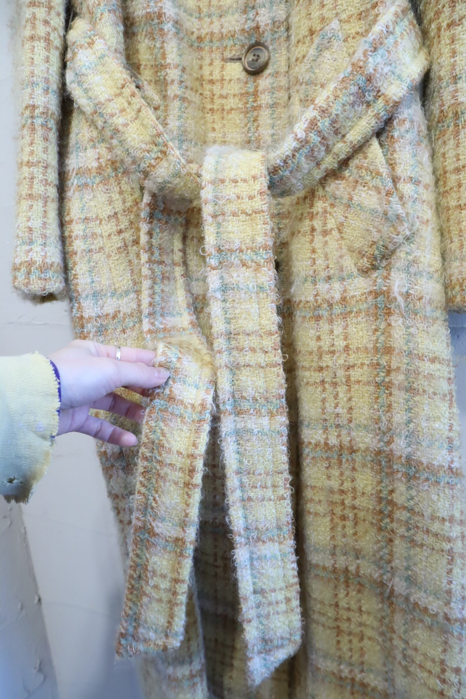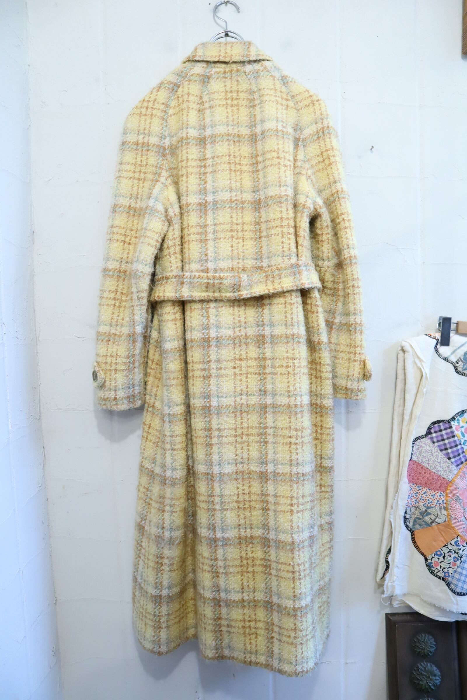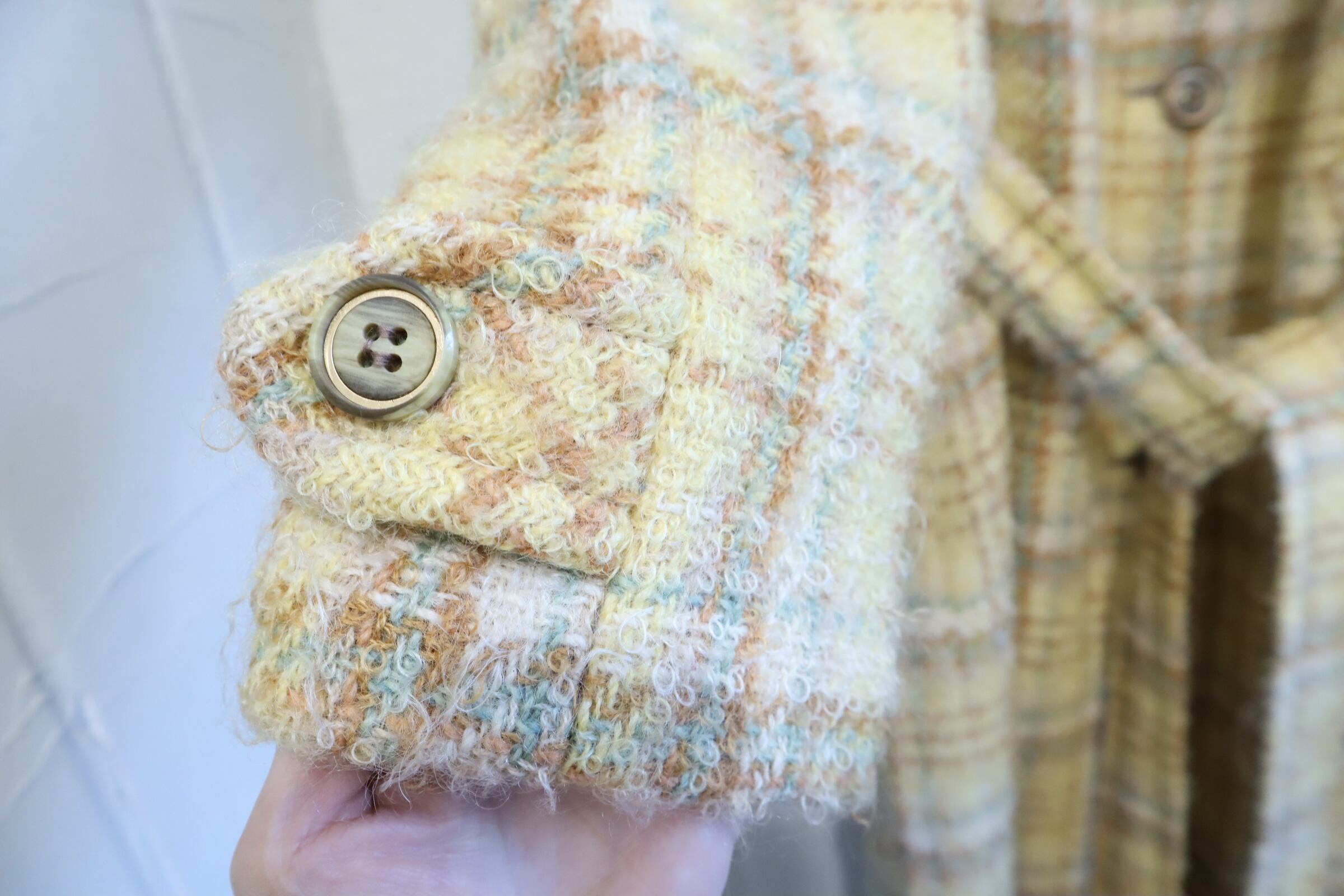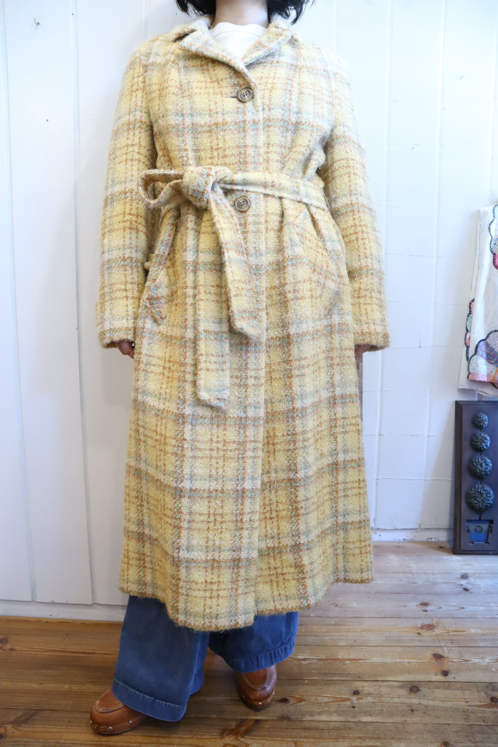 yellow×lightbrown plaid poodle yarn coat [l-4506]