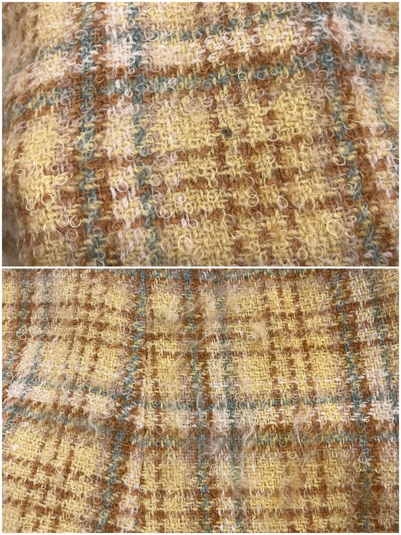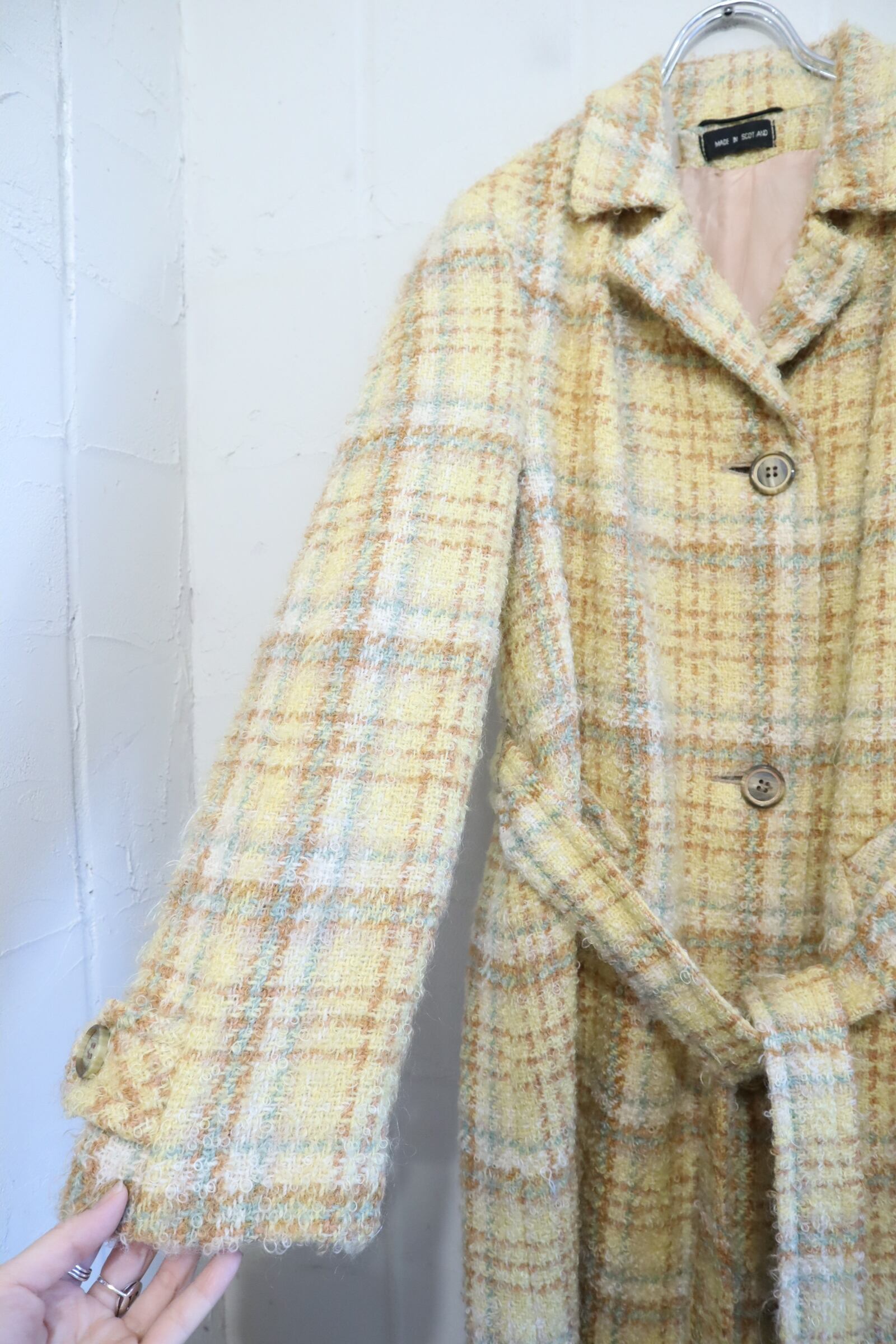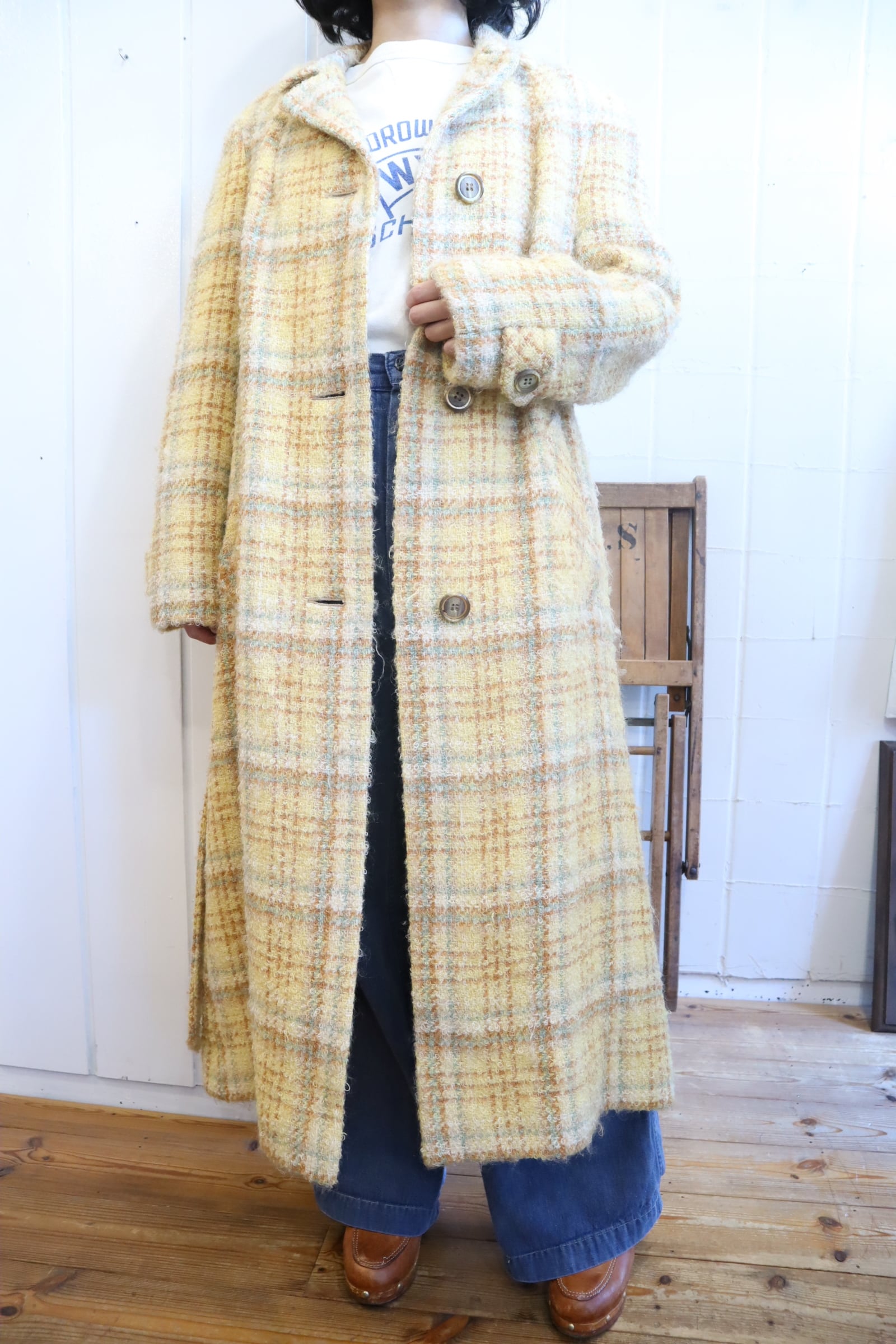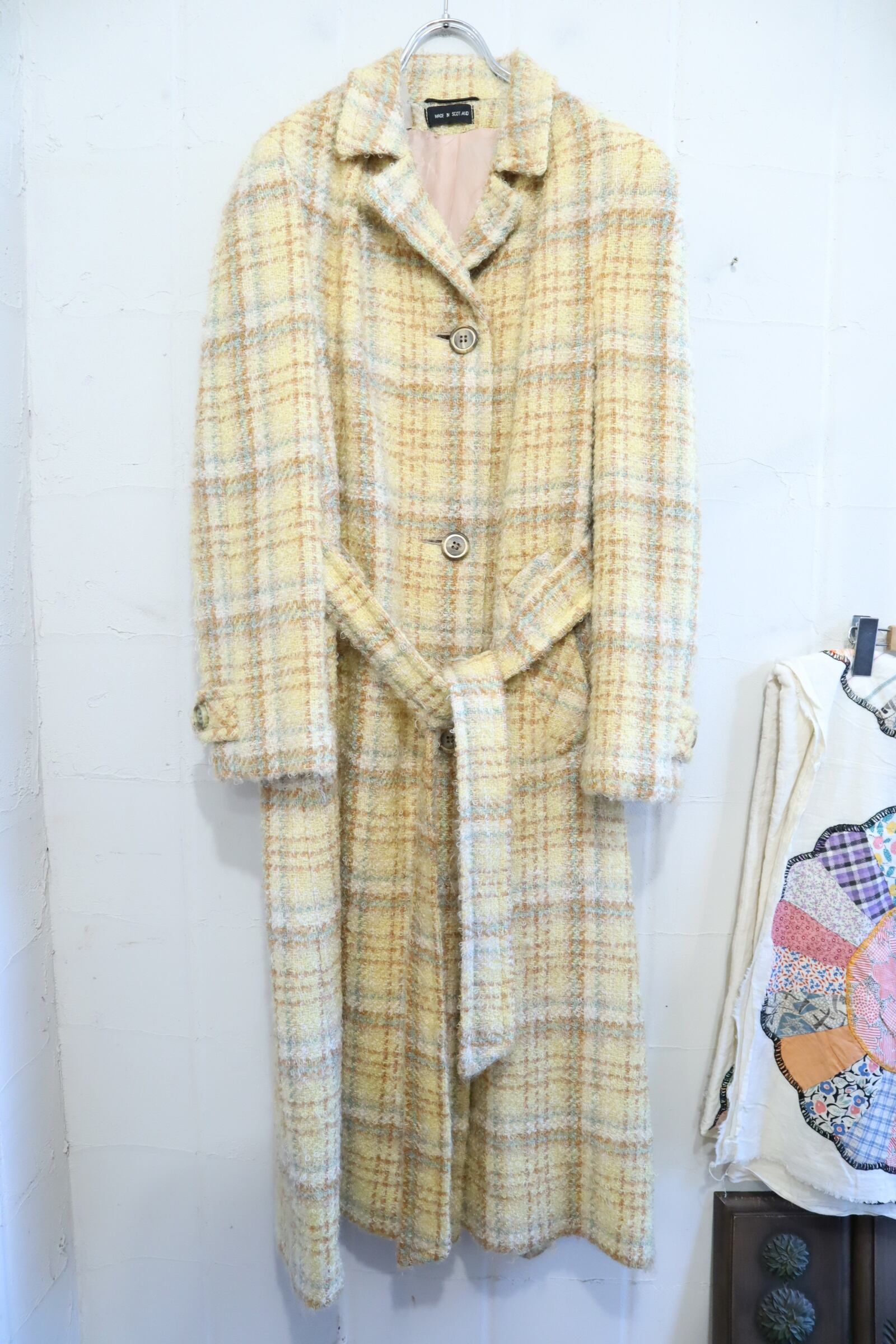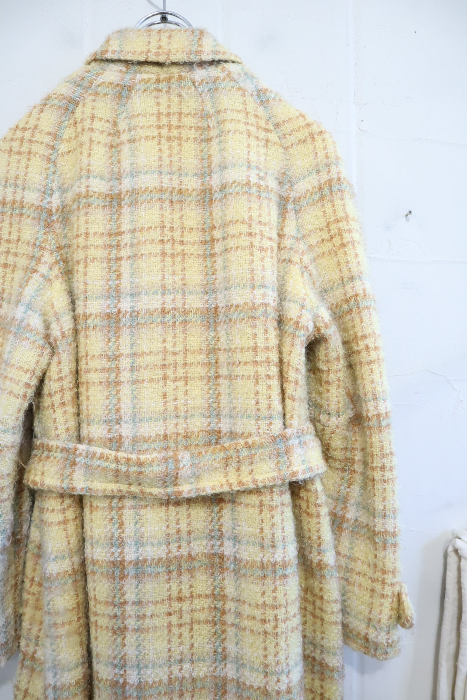 yellow×lightbrown plaid poodle yarn coat [l-4506]