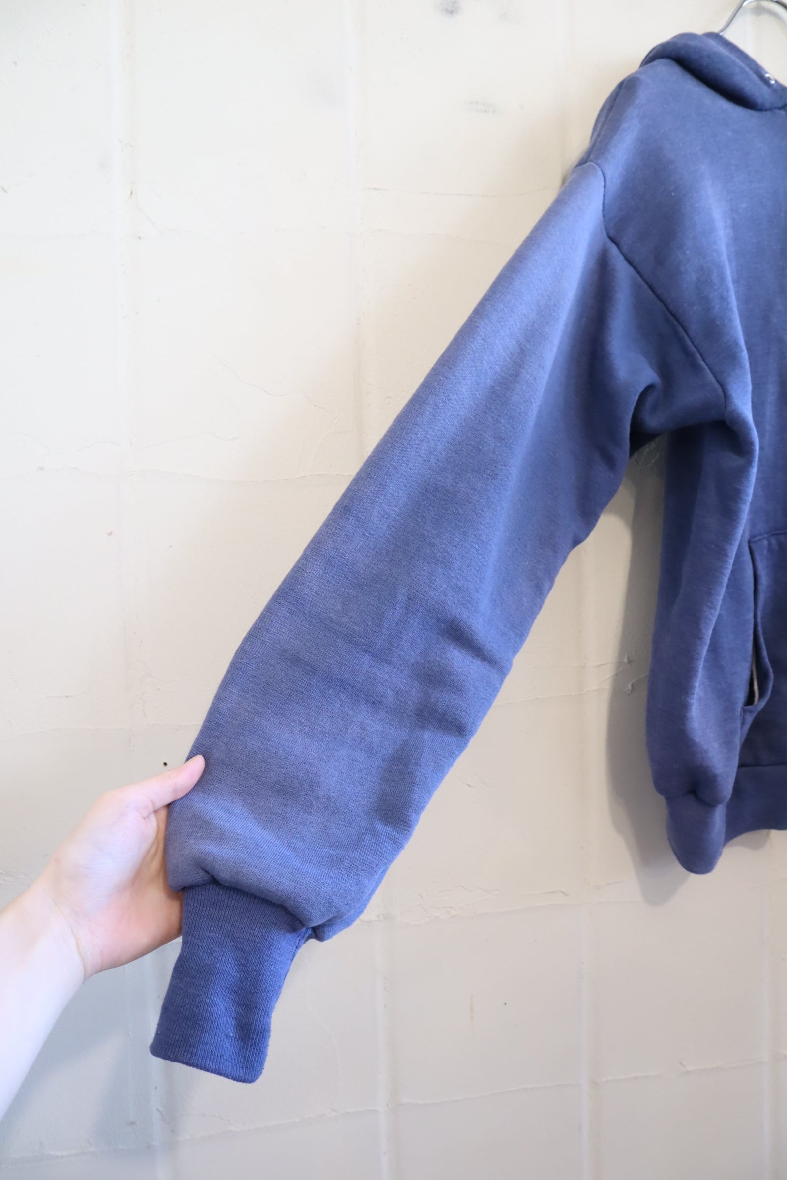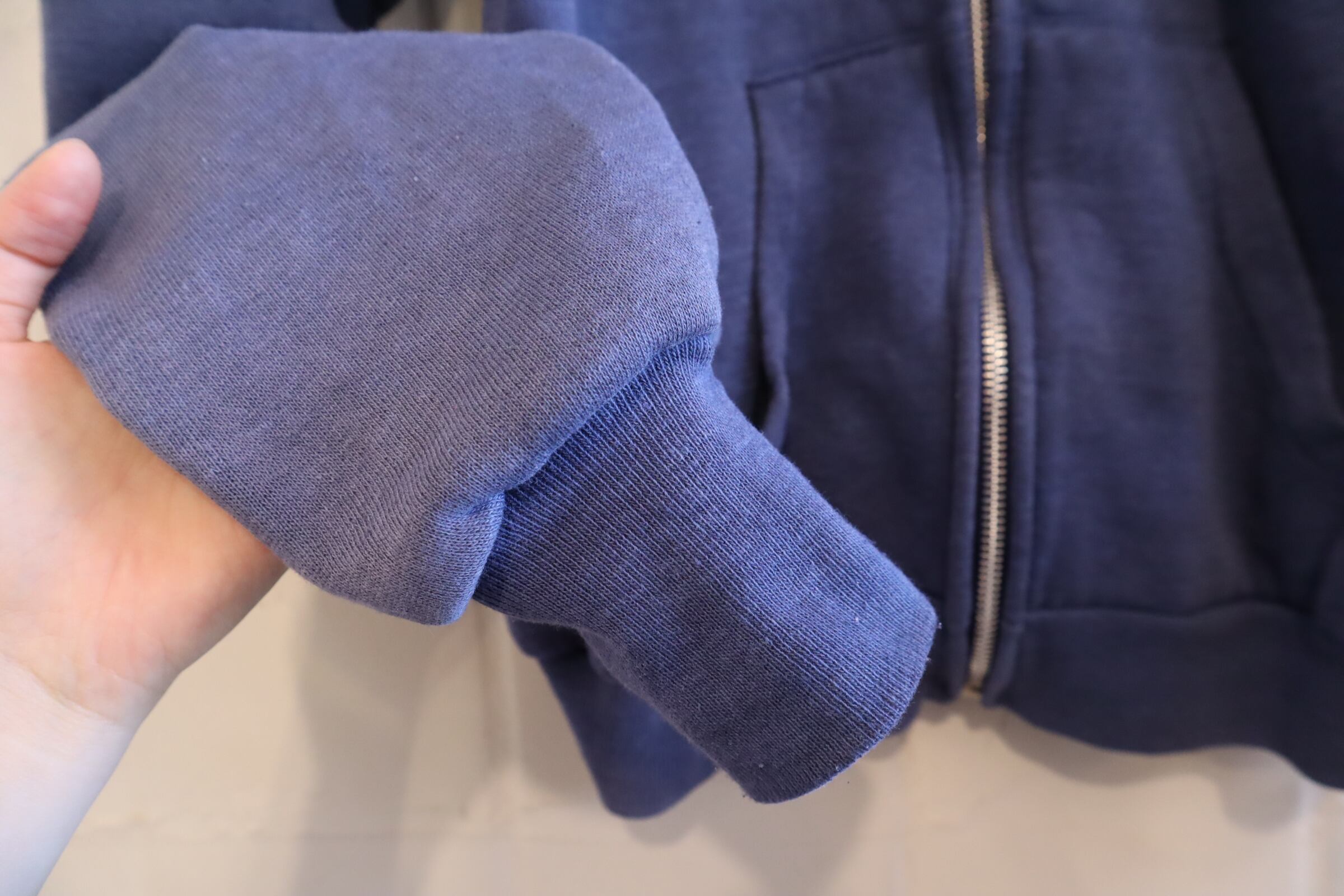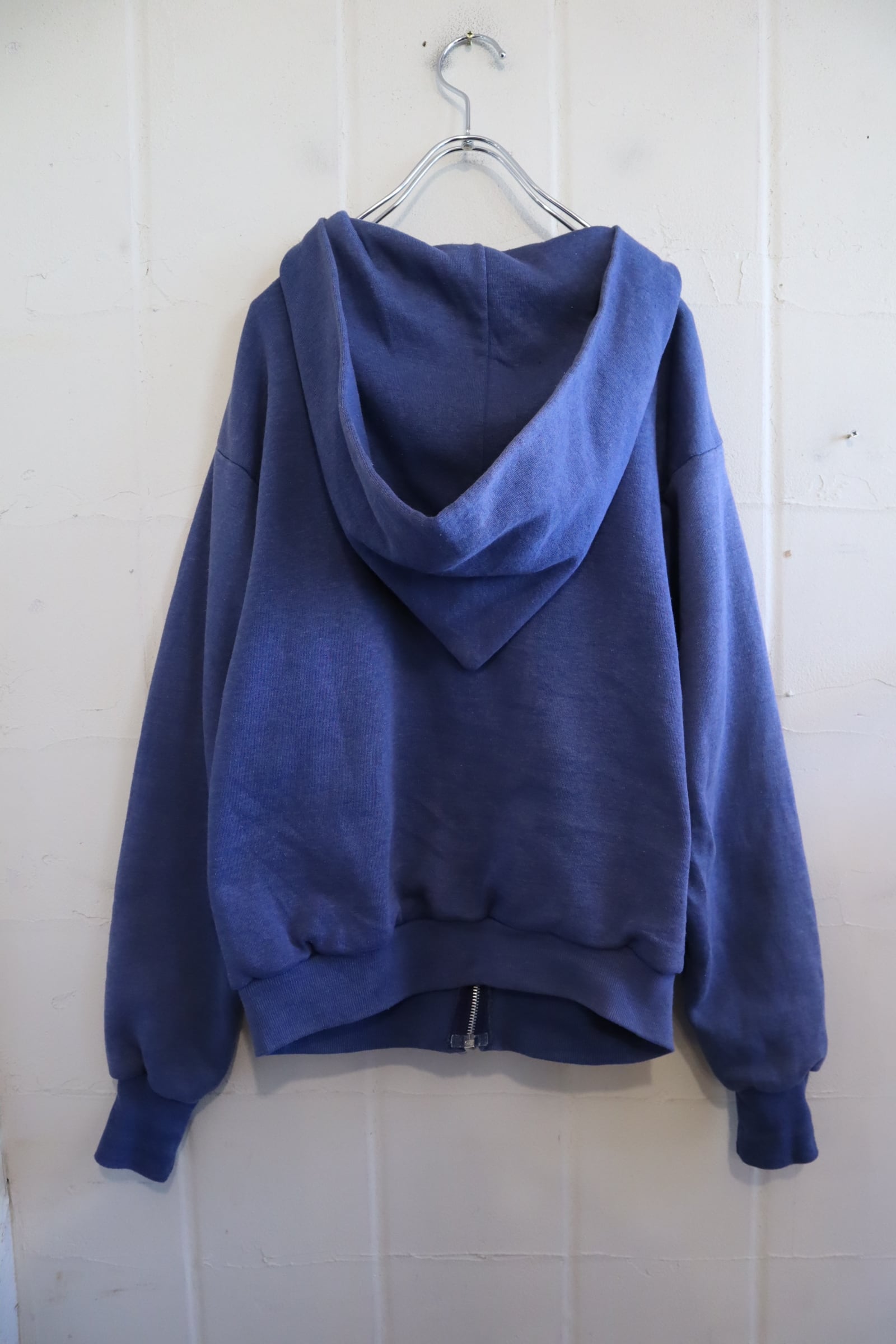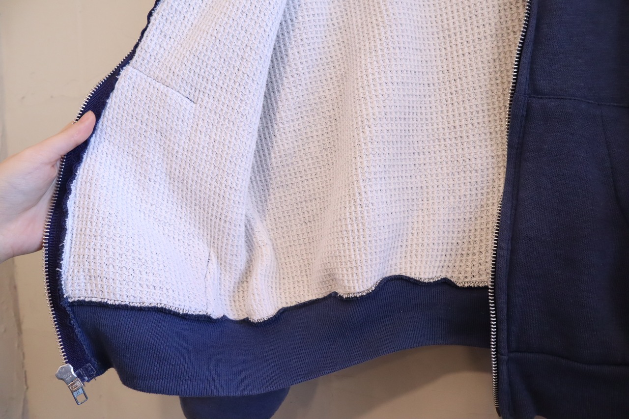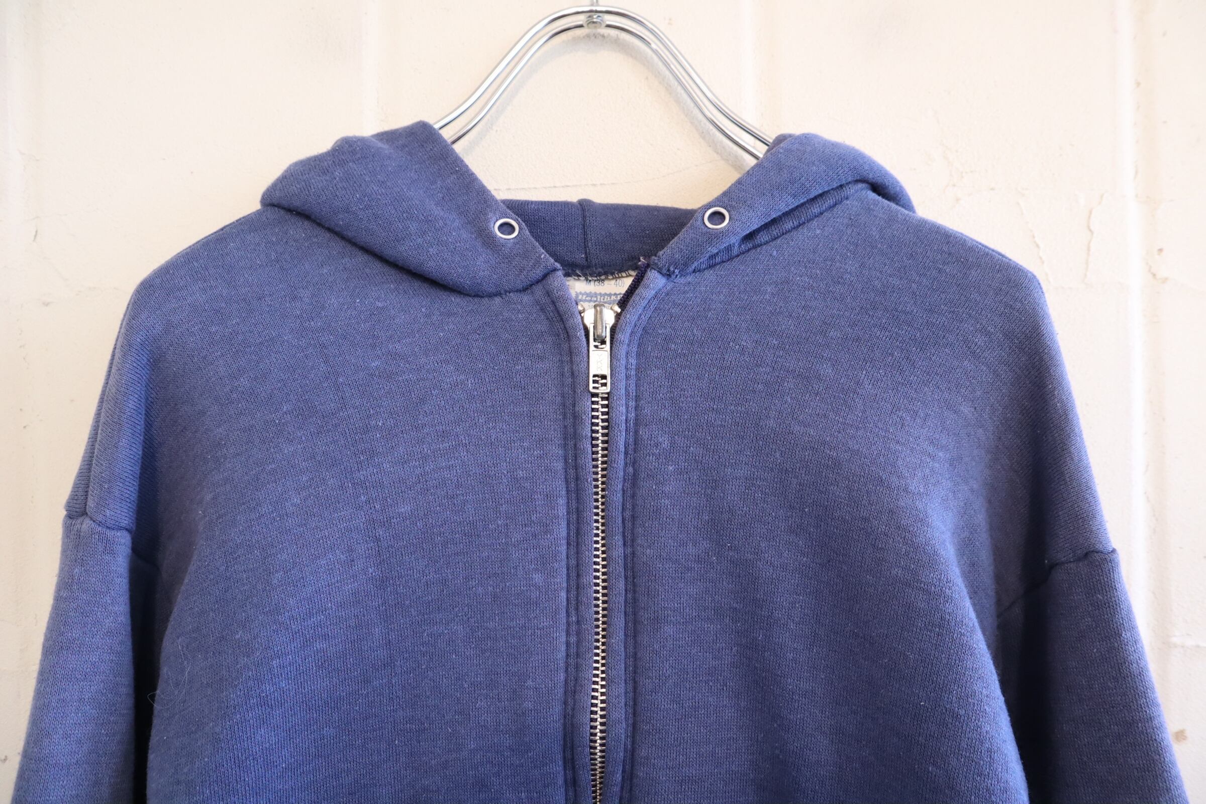 フェードしたネイビーのお色味が素敵なhealthknitボディのジップパーカー。