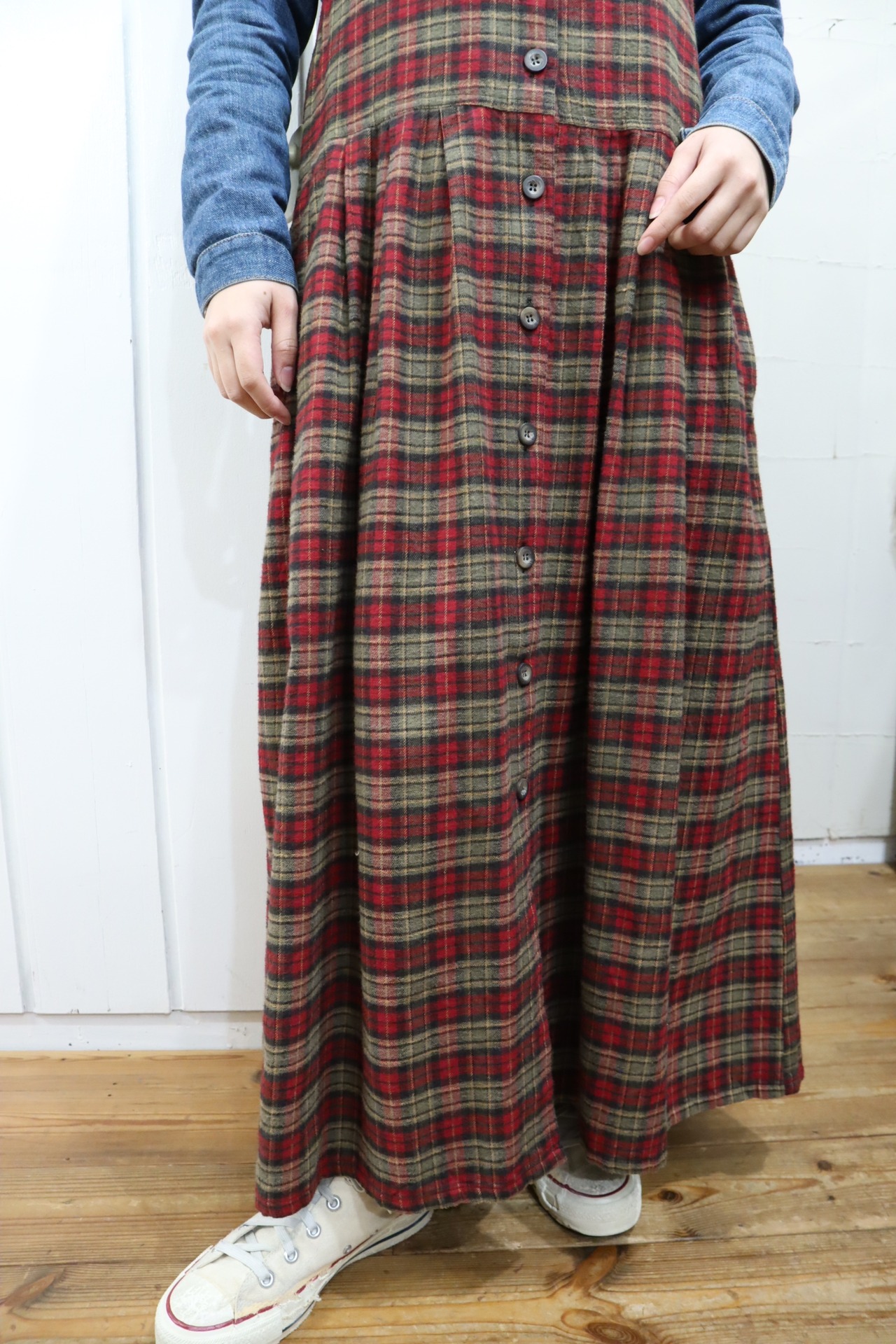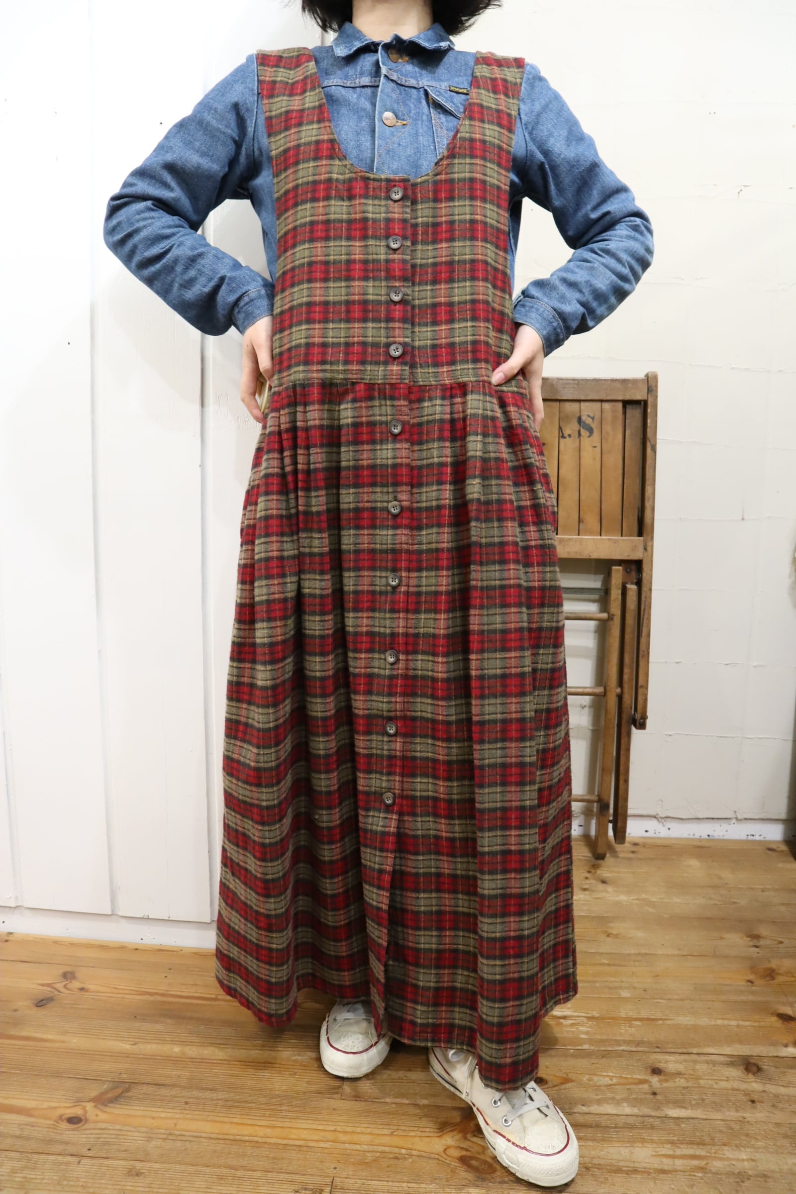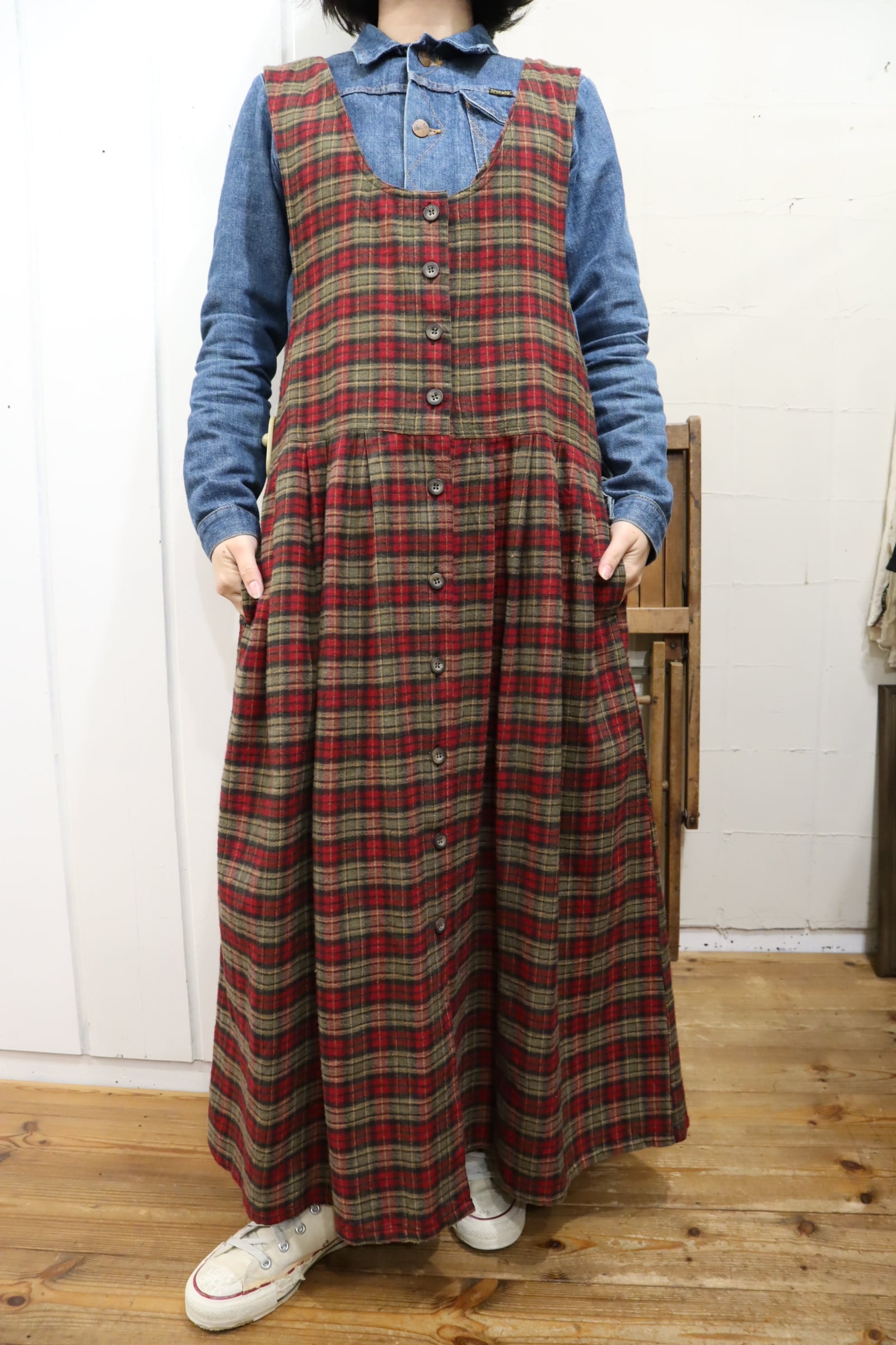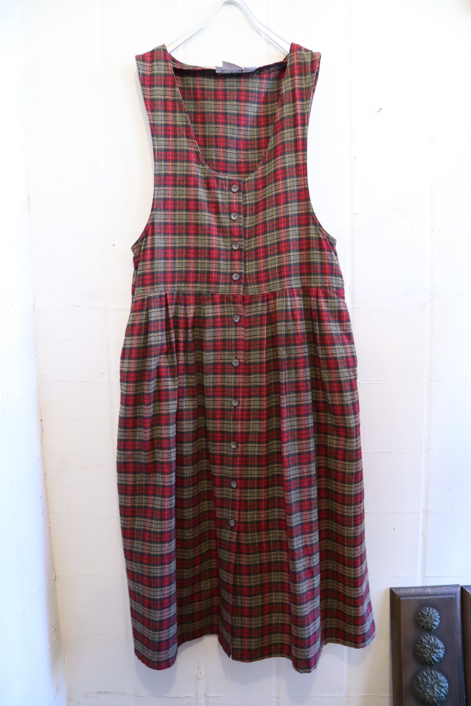 Woolrich red×khaki plaid flannel jumper dress [l-4511]