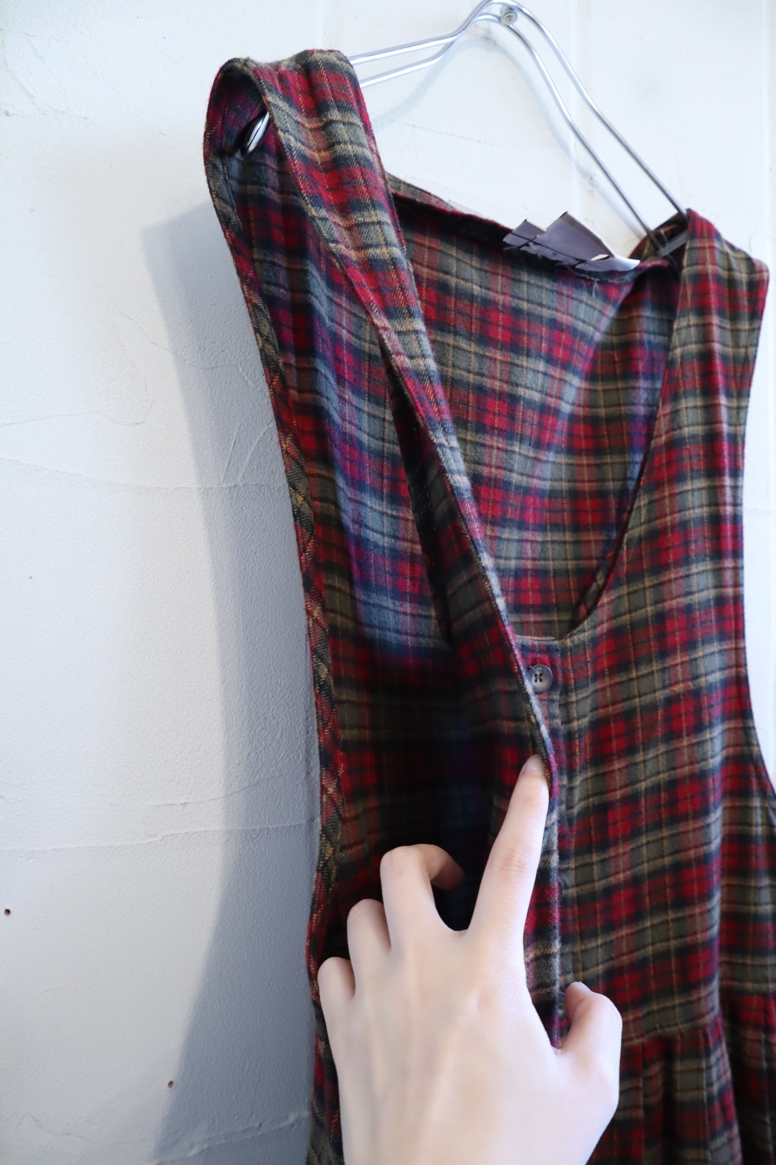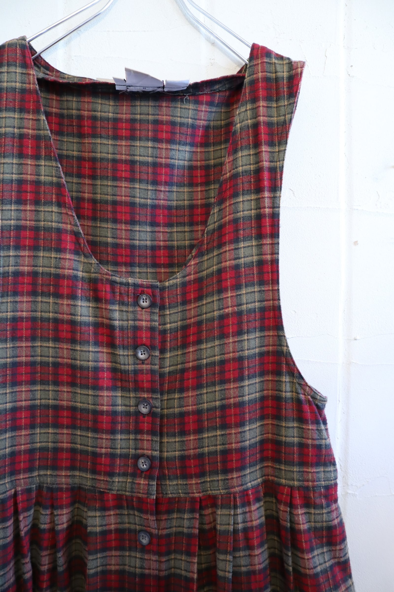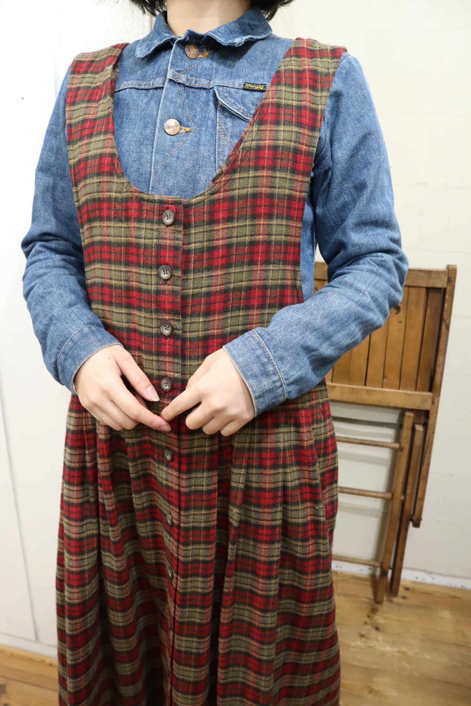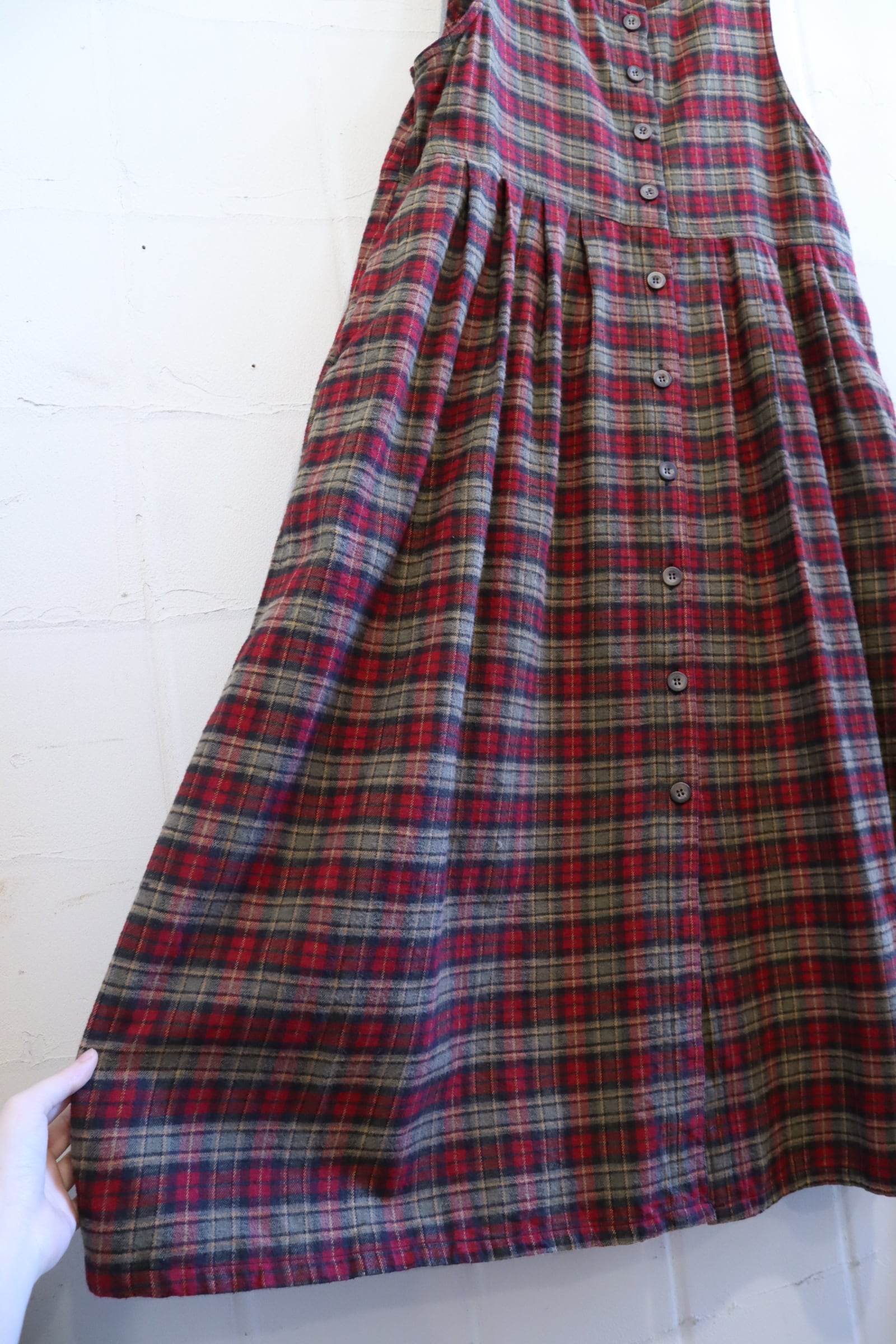 Woolrich red×khaki plaid flannel jumper dress [l-4511]