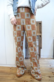 ニットがプリントされたような珍しいテキスタイルのポリパンツ。