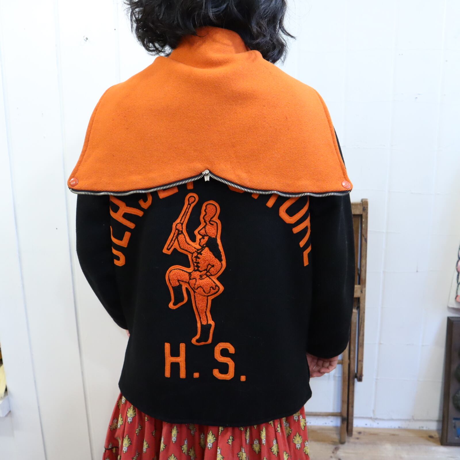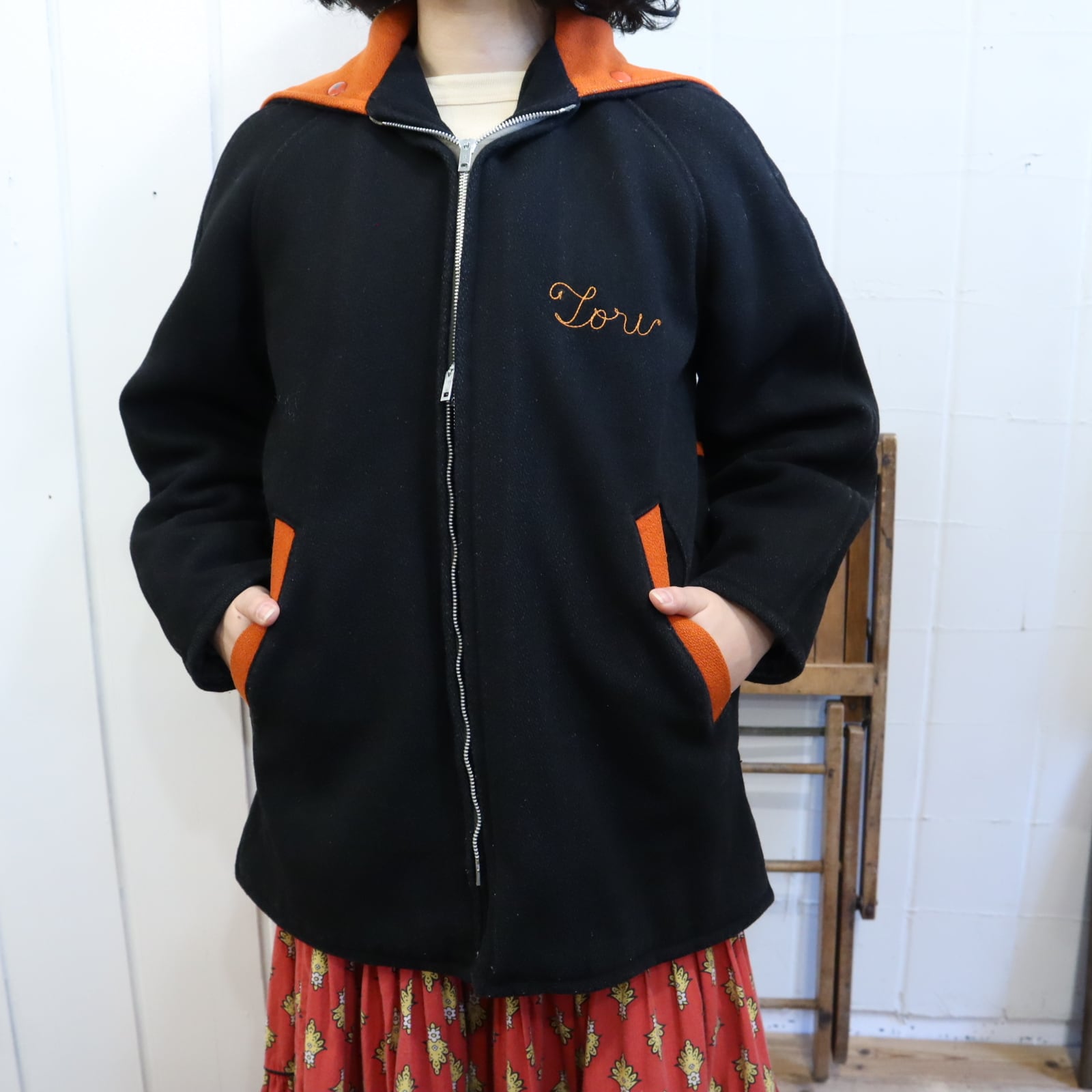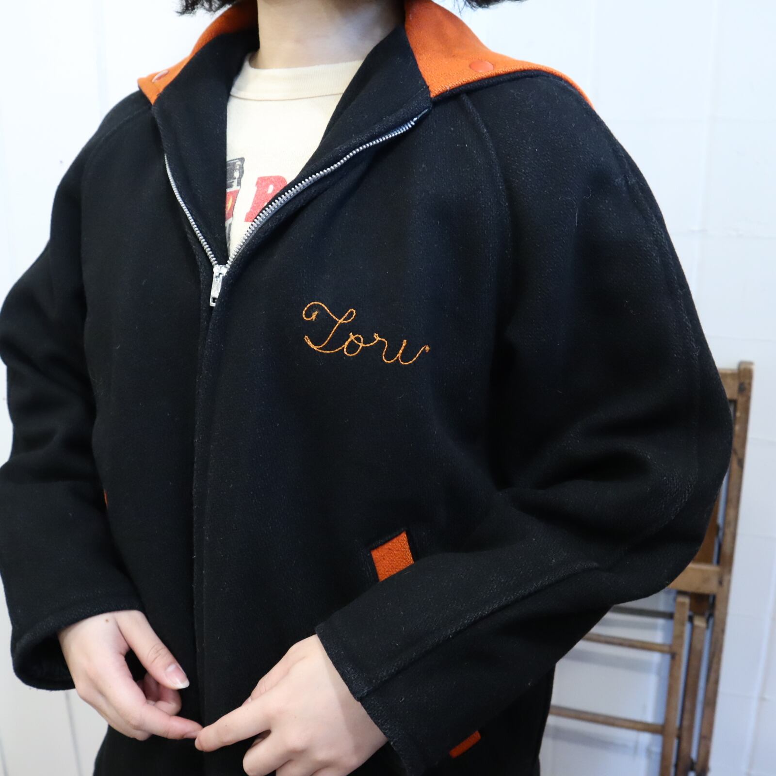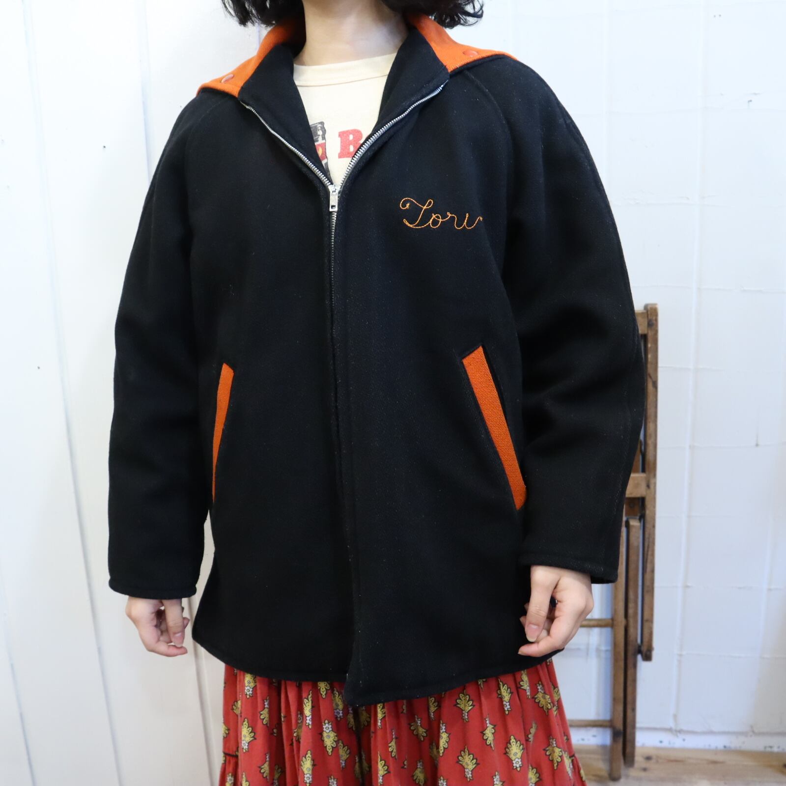 70s black×orange 2WAY collar reversible stadium jumper [l-4523]