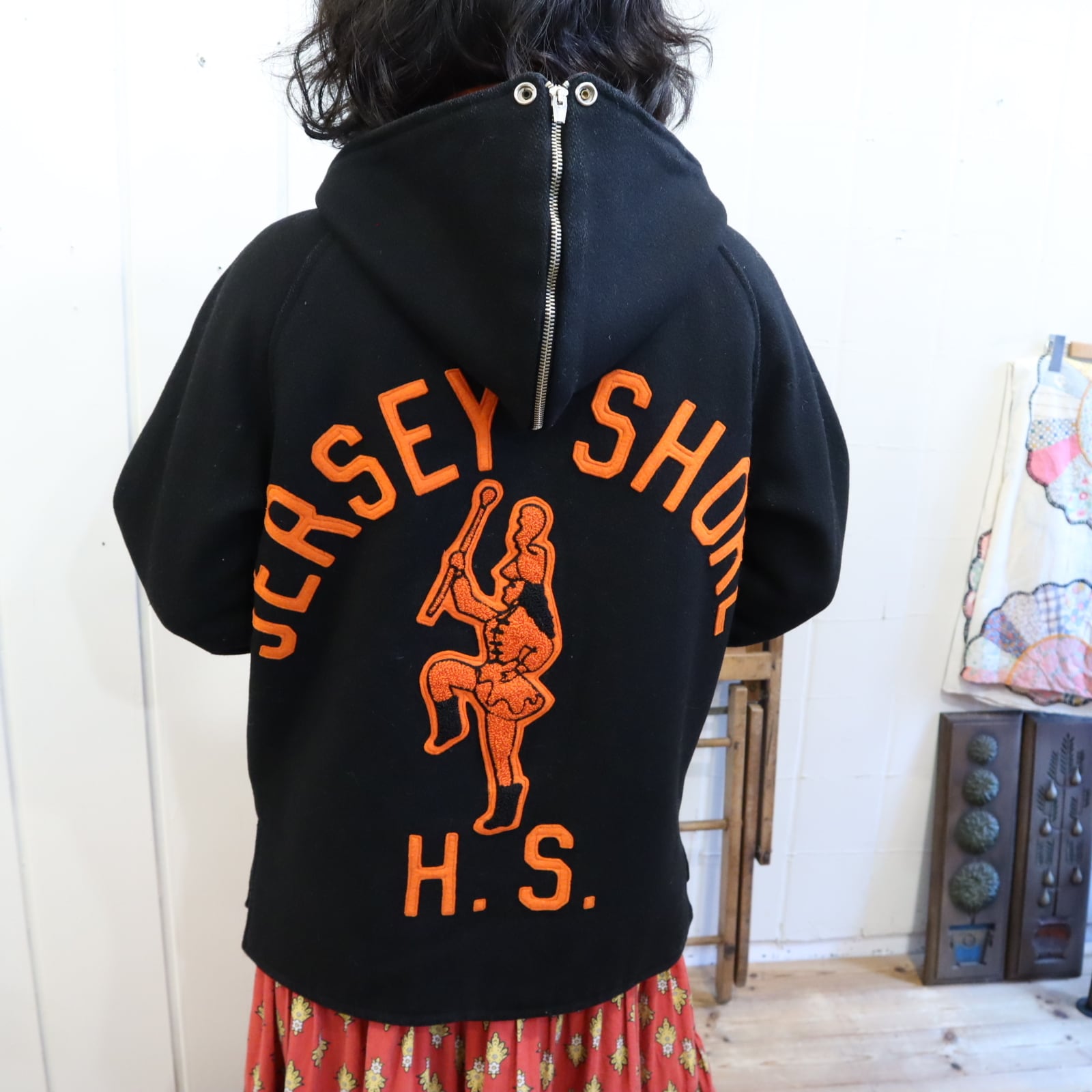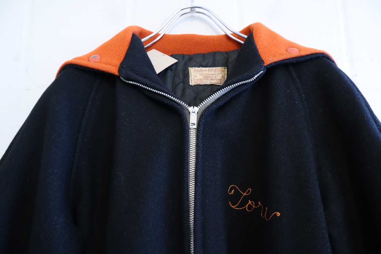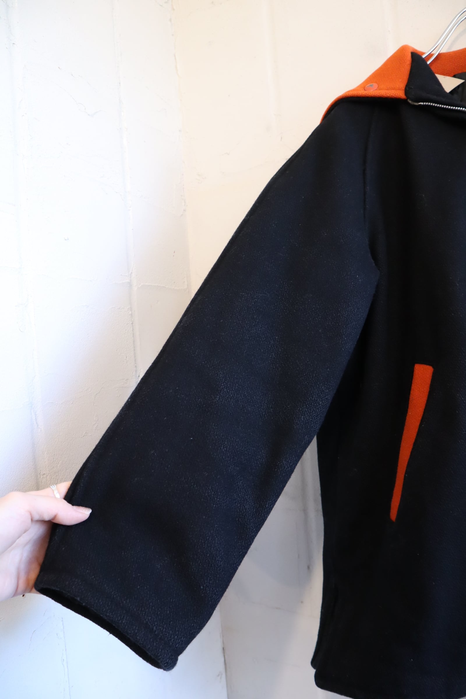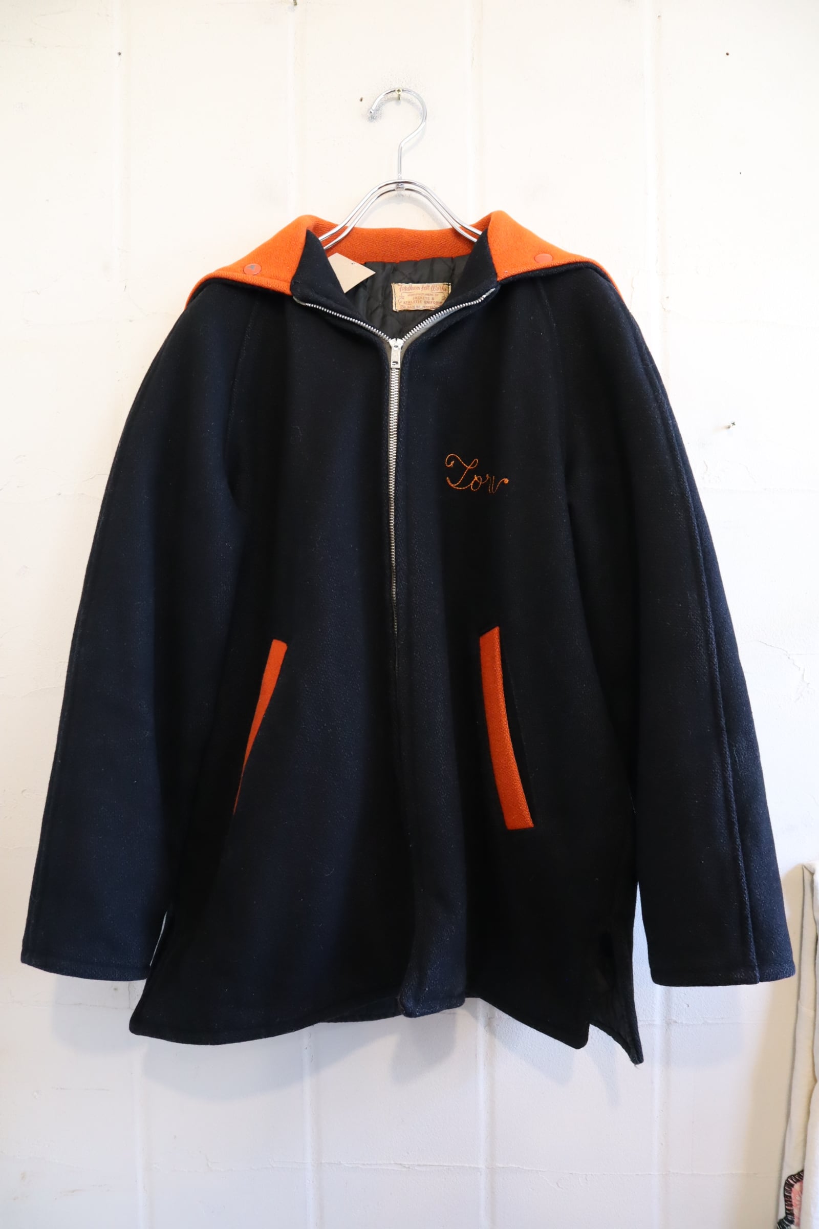 70s black×orange 2WAY collar reversible stadium jumper [l-4523]