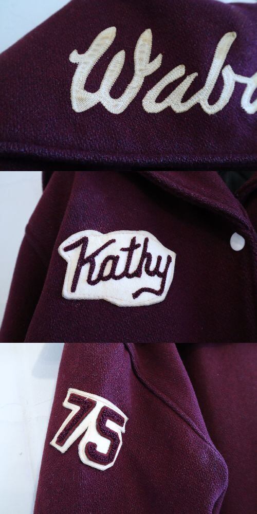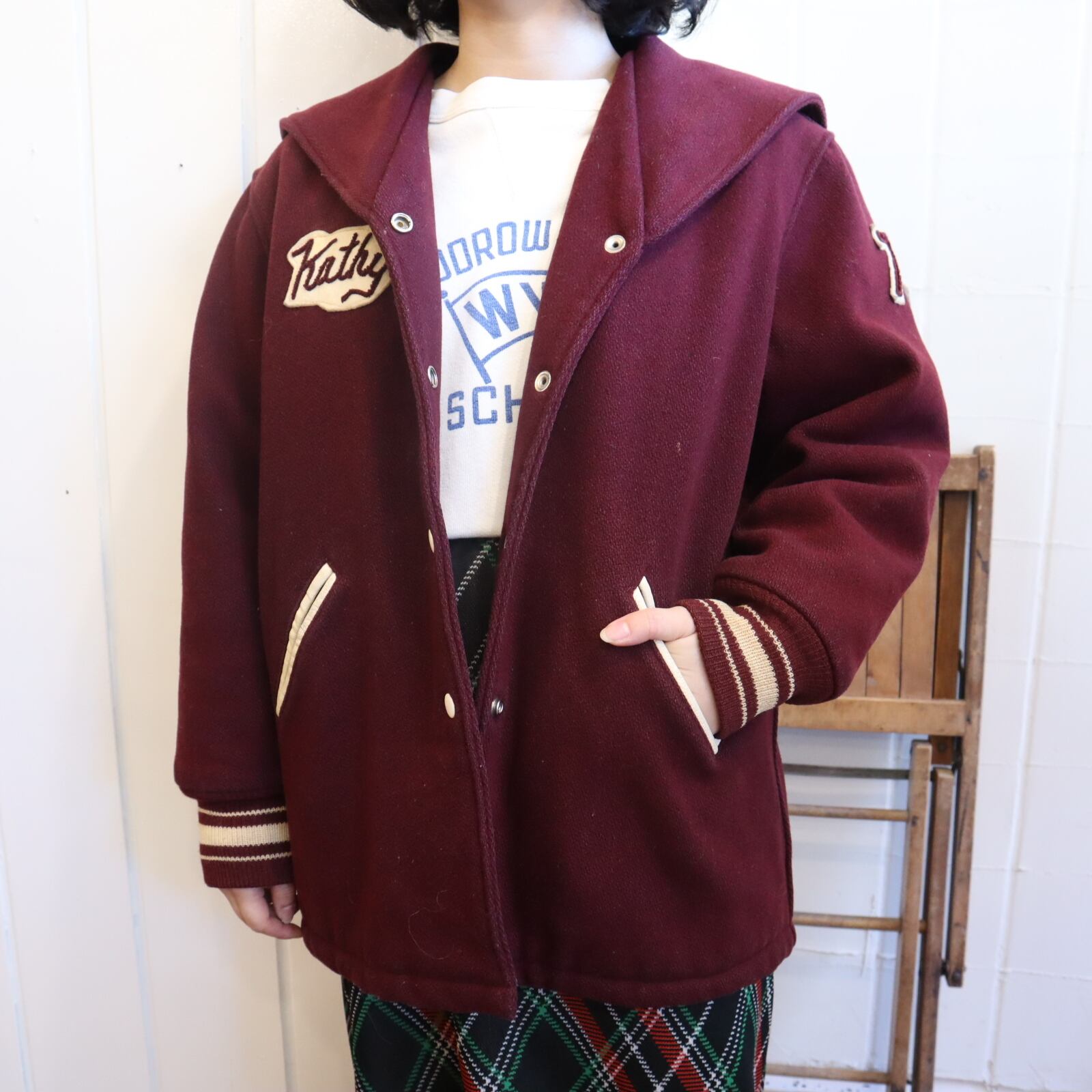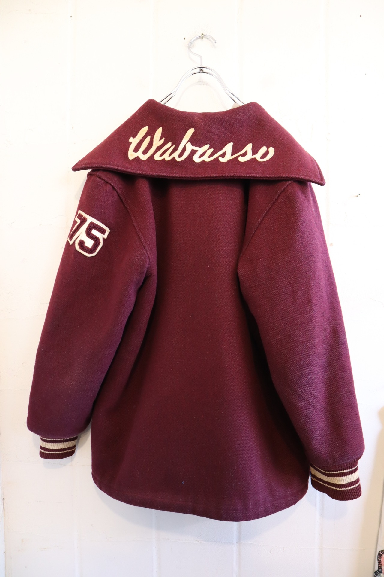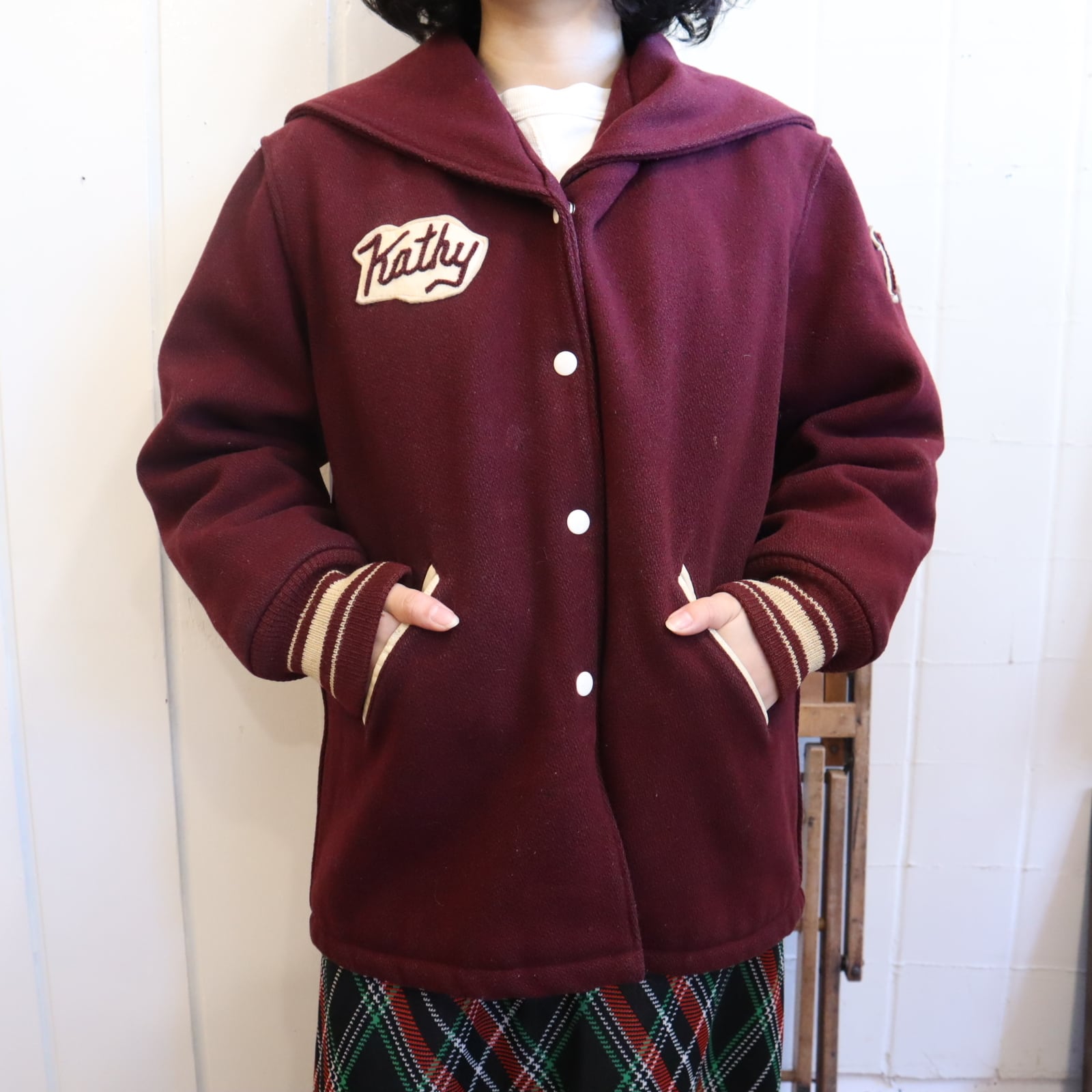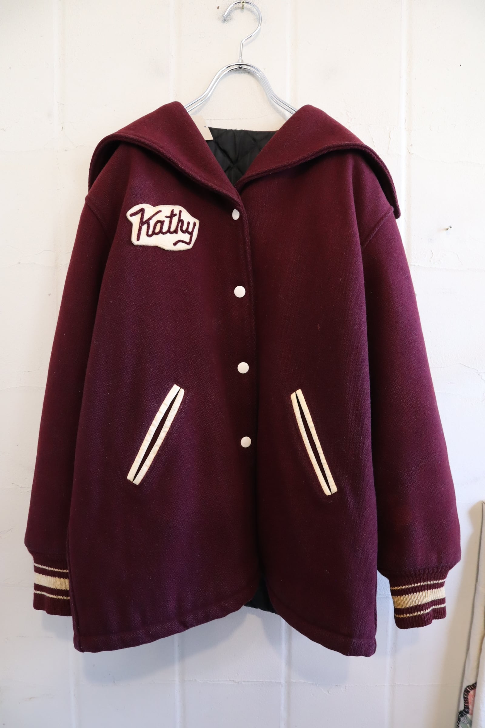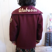 70s bordeaux×offwhite sailor collar stadium jumper [l-4524]
