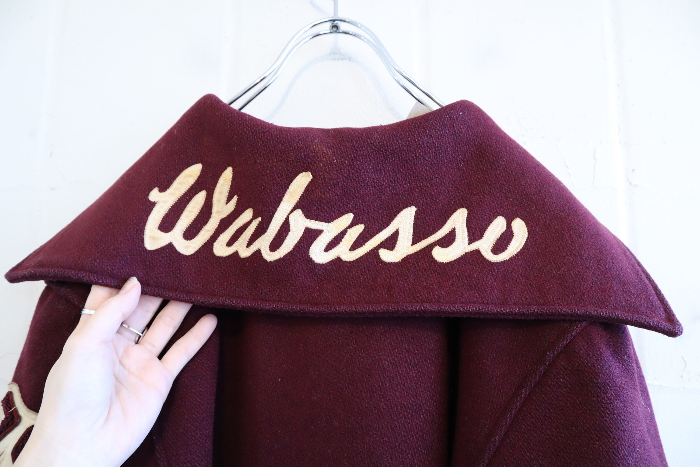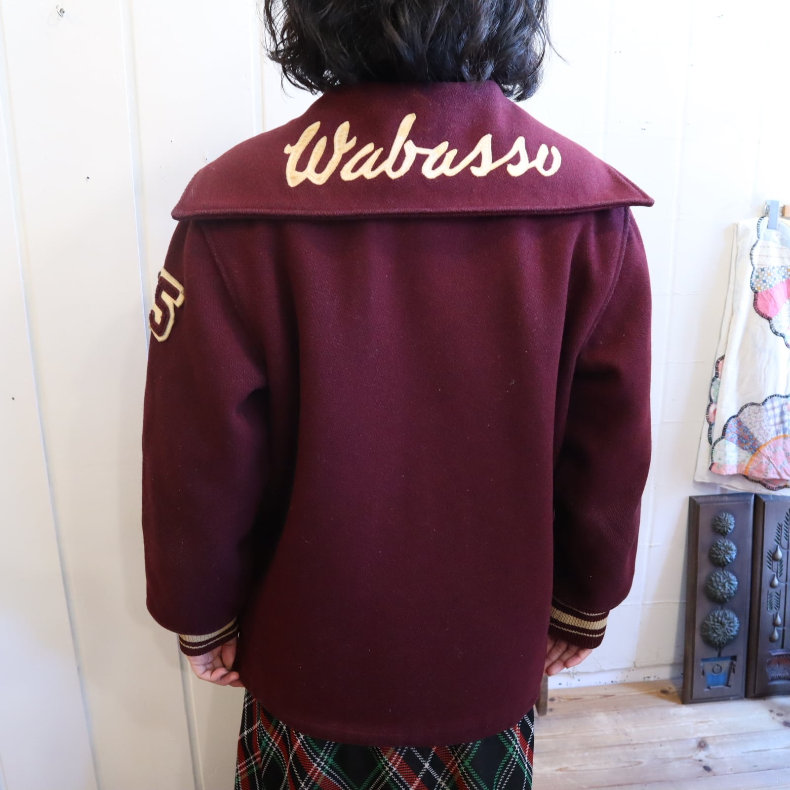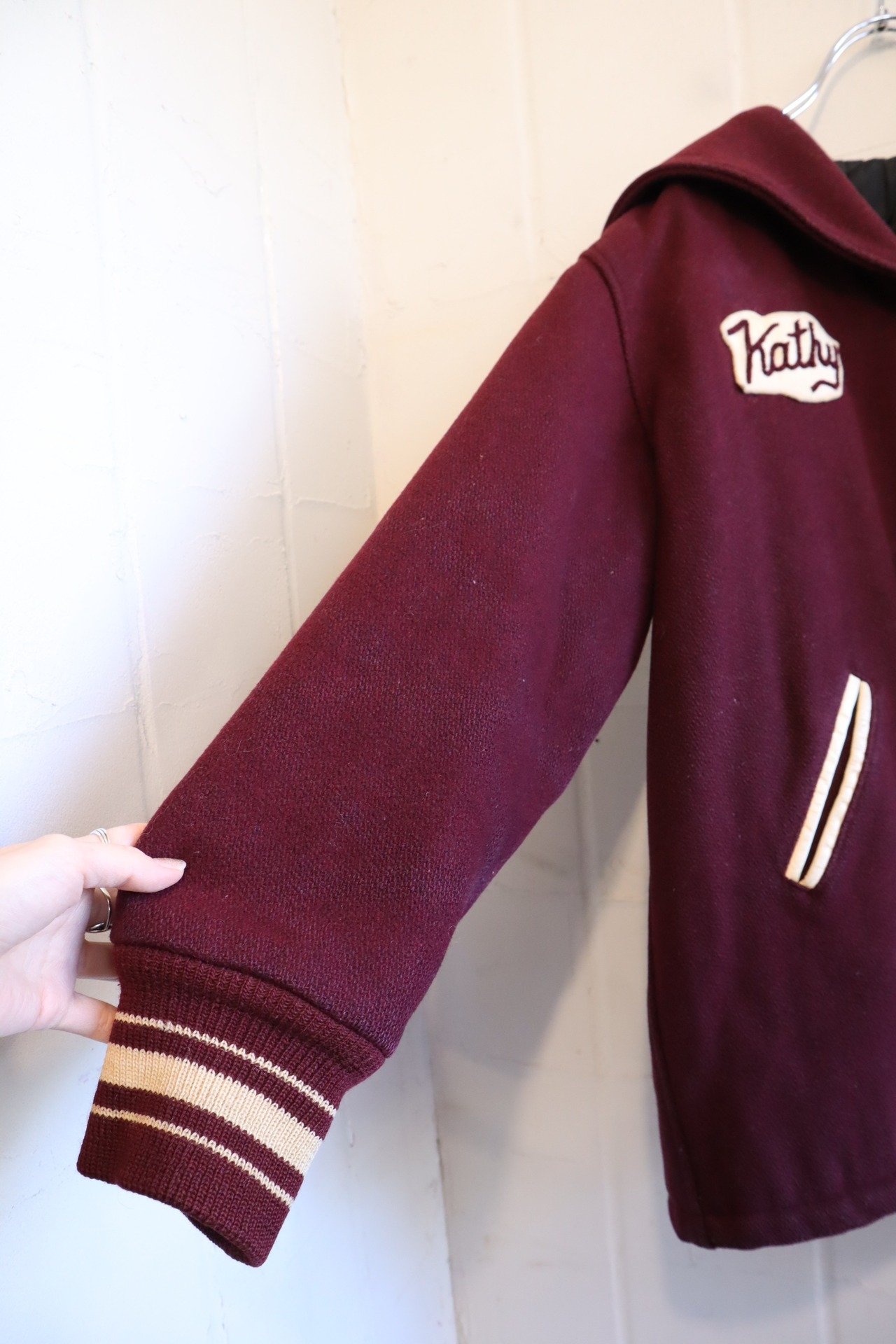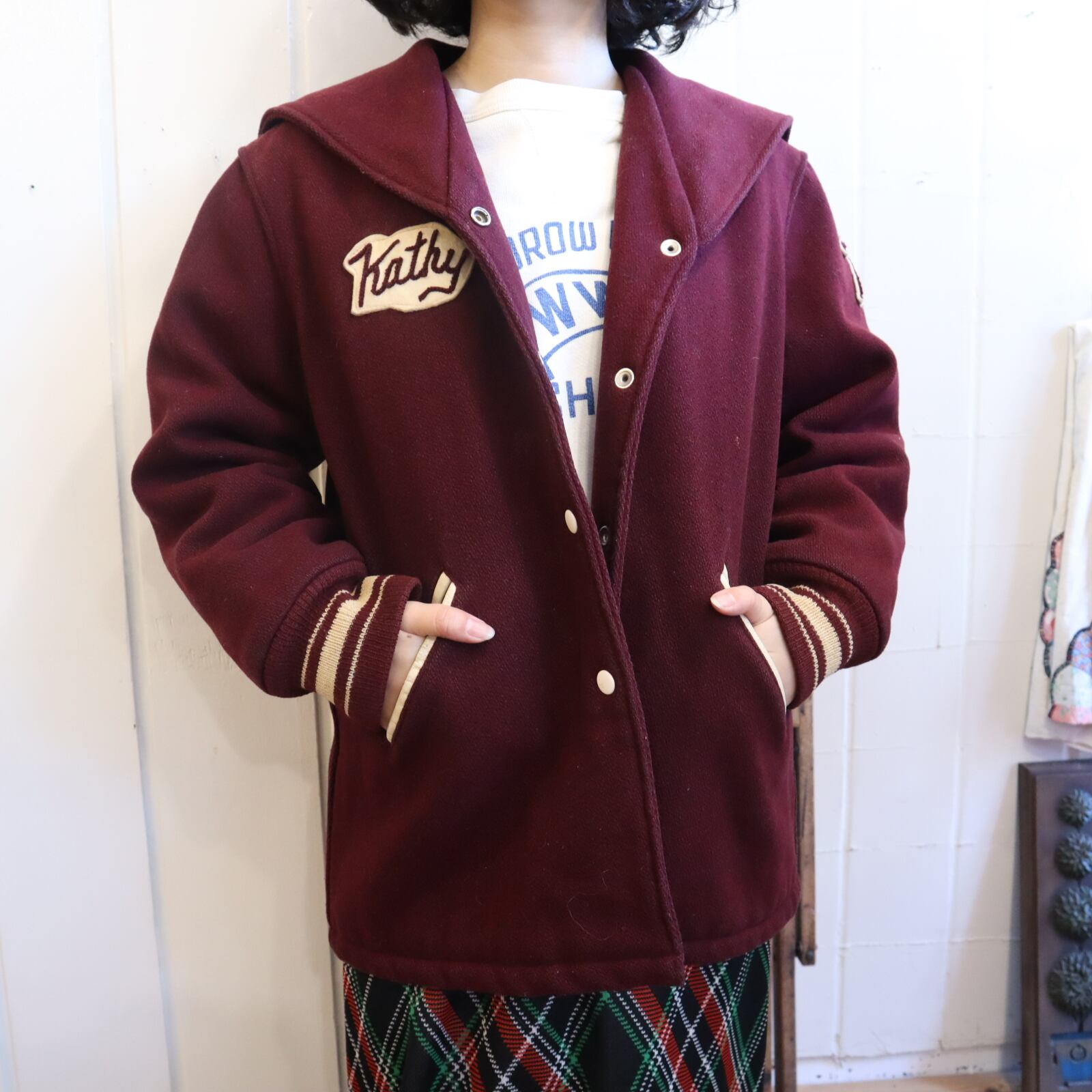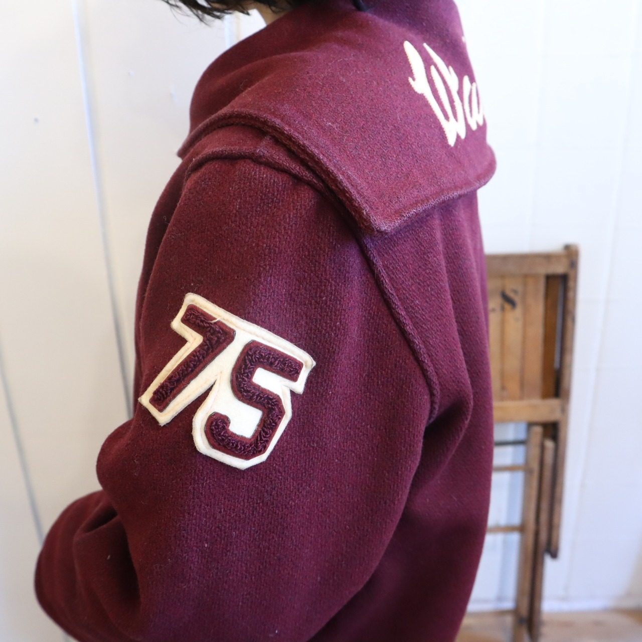70s bordeaux×offwhite sailor collar stadium jumper [l-4524]