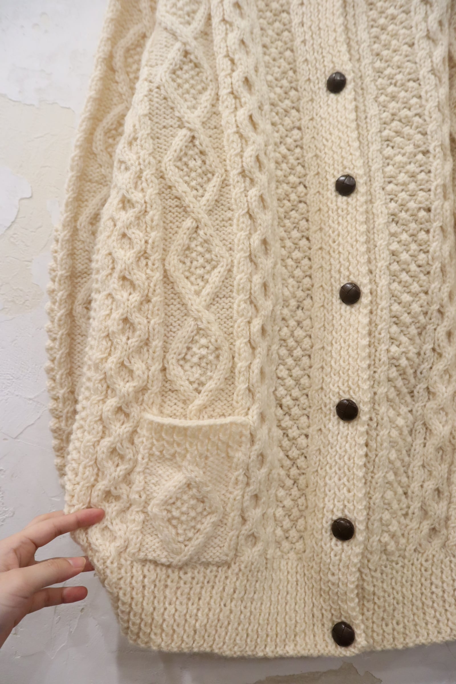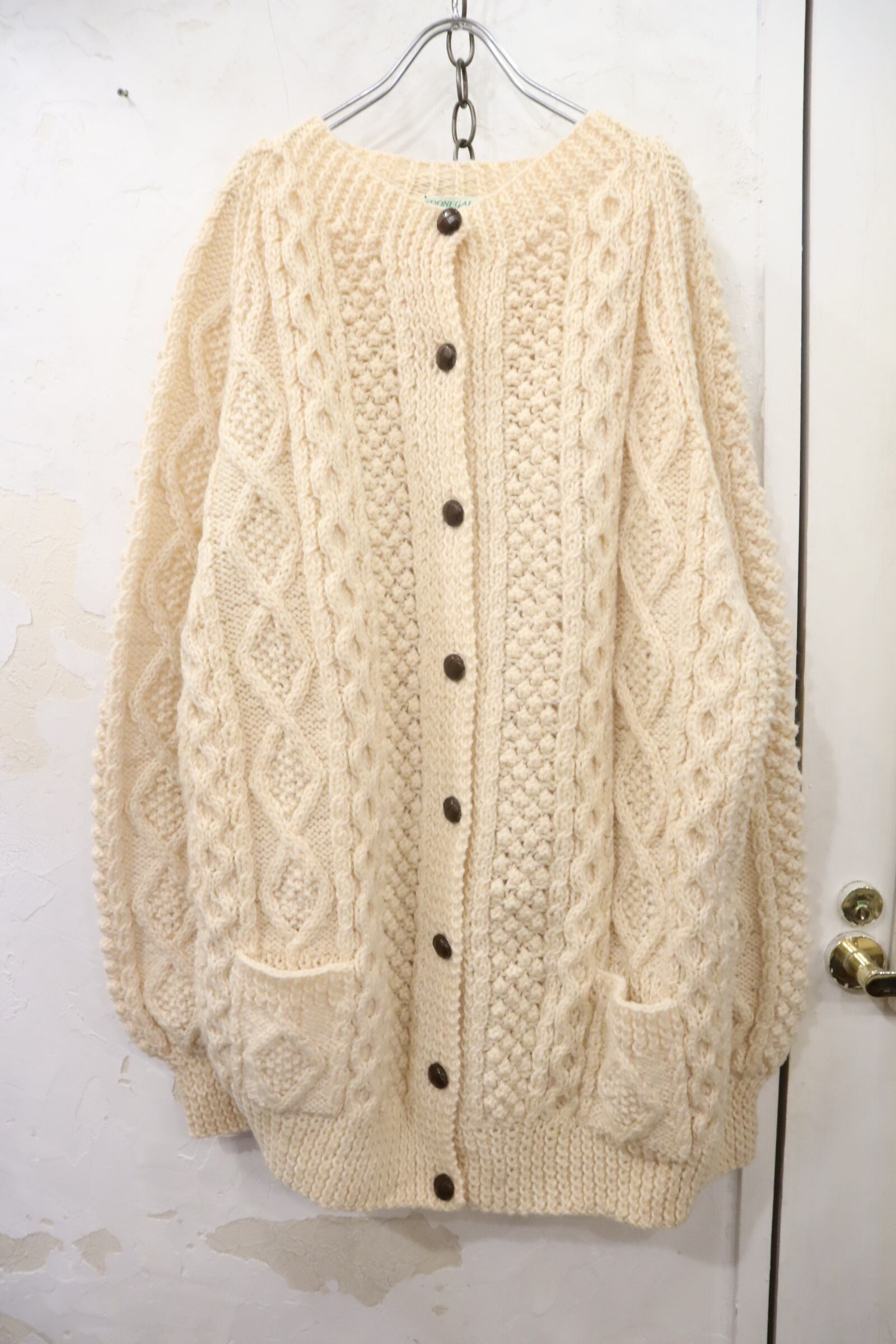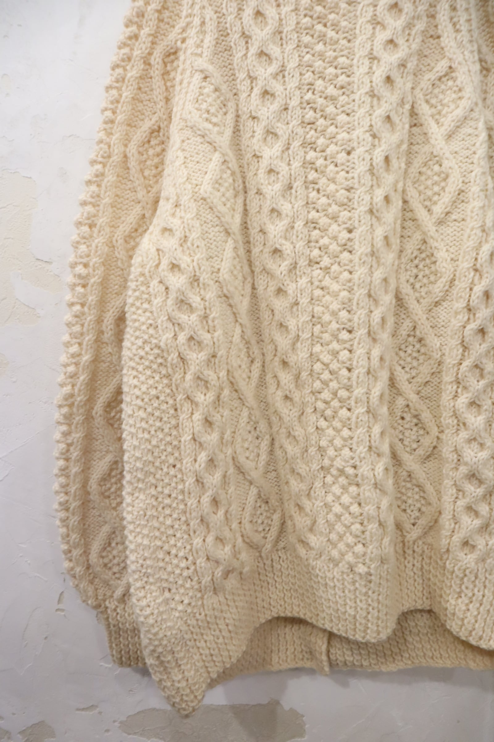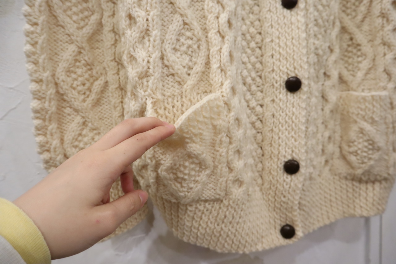 made in IRELAND offwhite fisherman knit cardigan [l-4525]