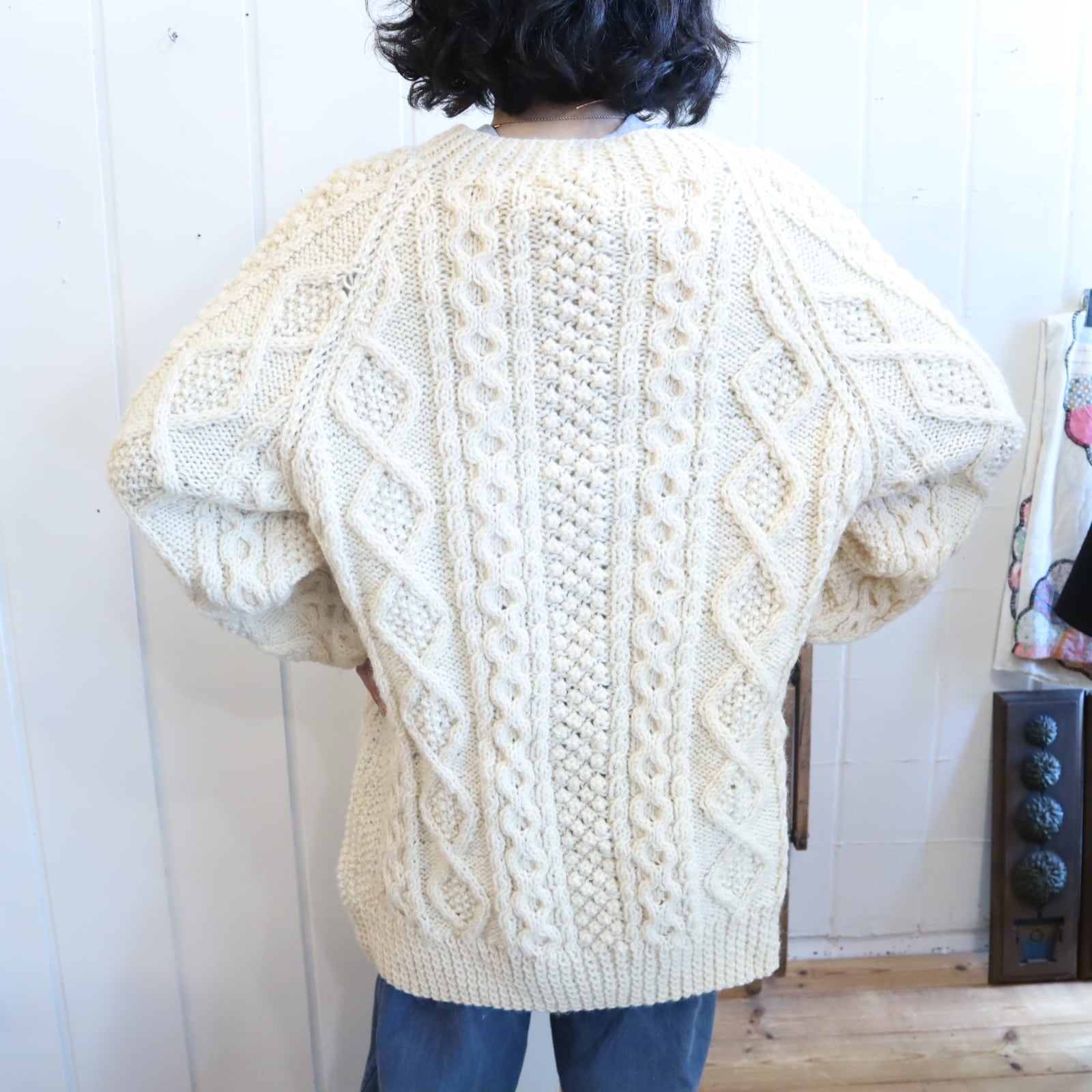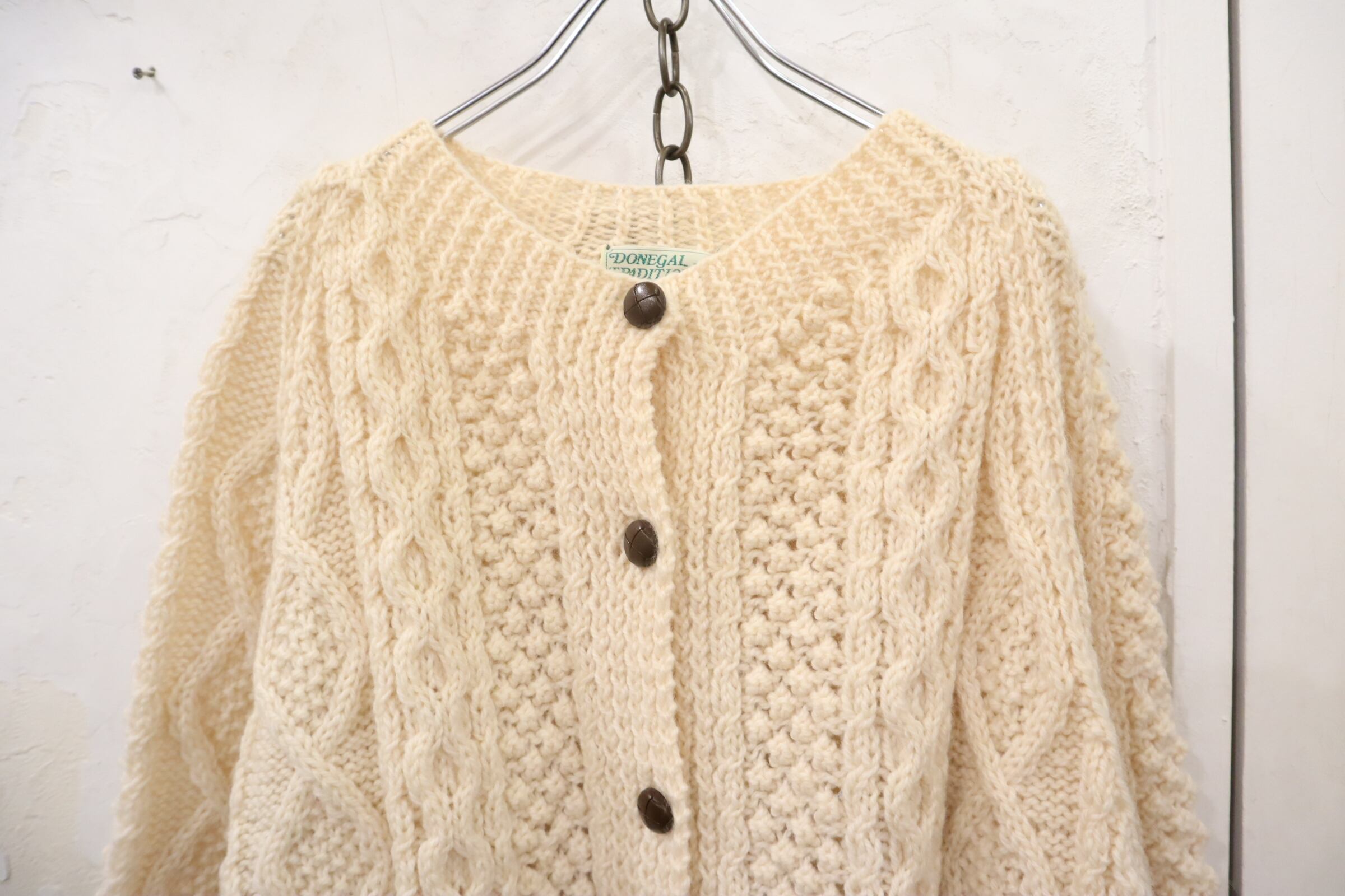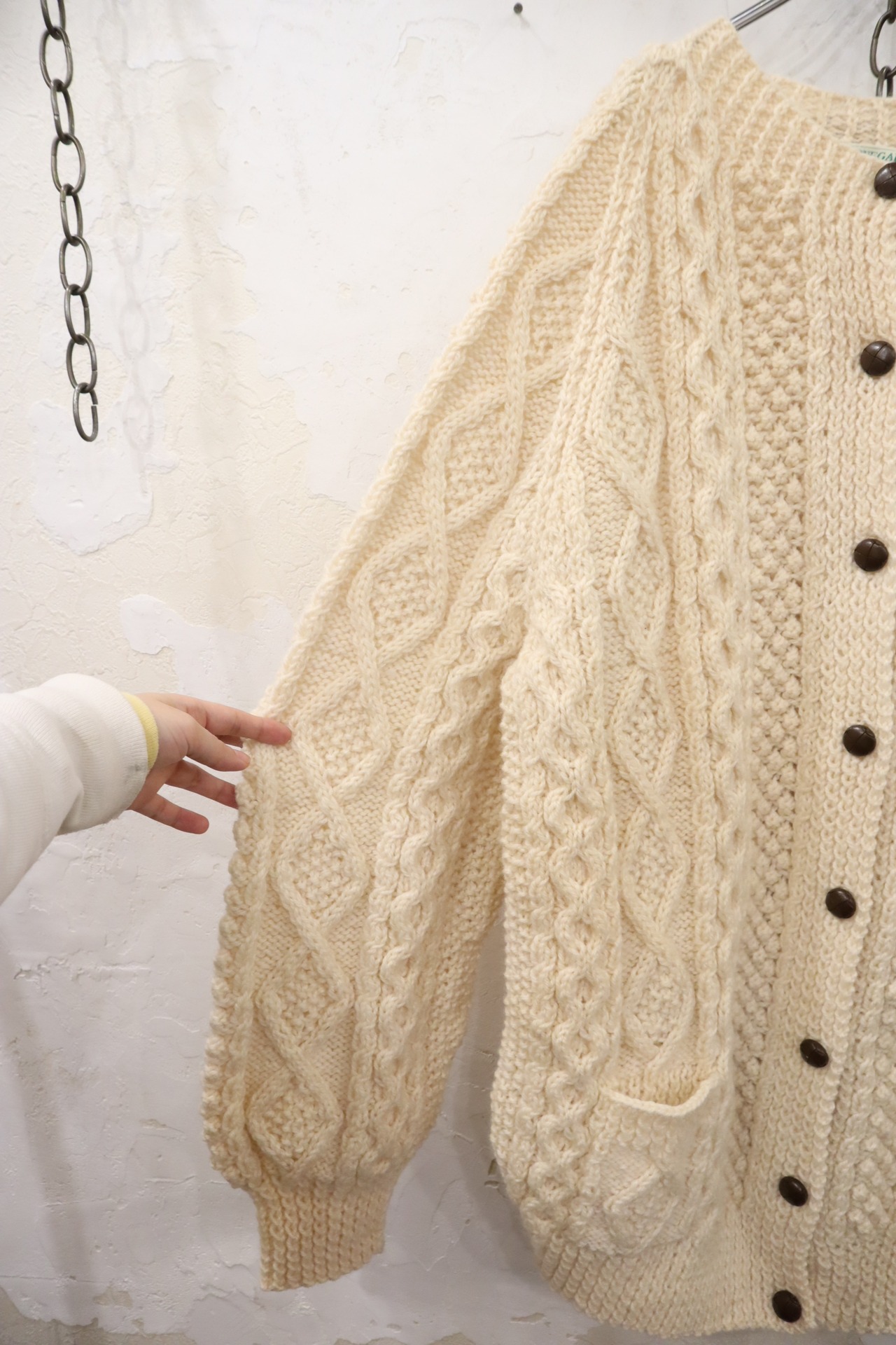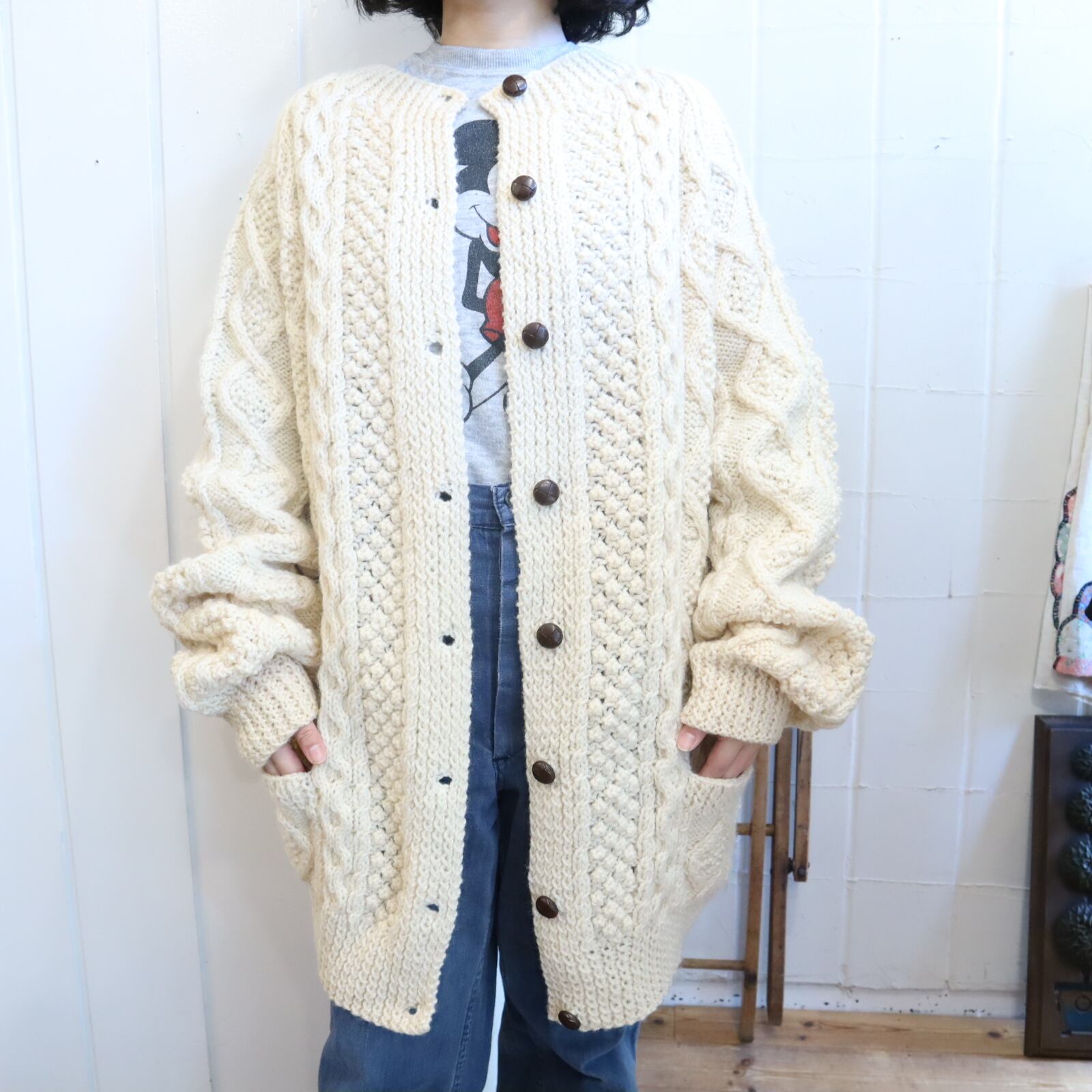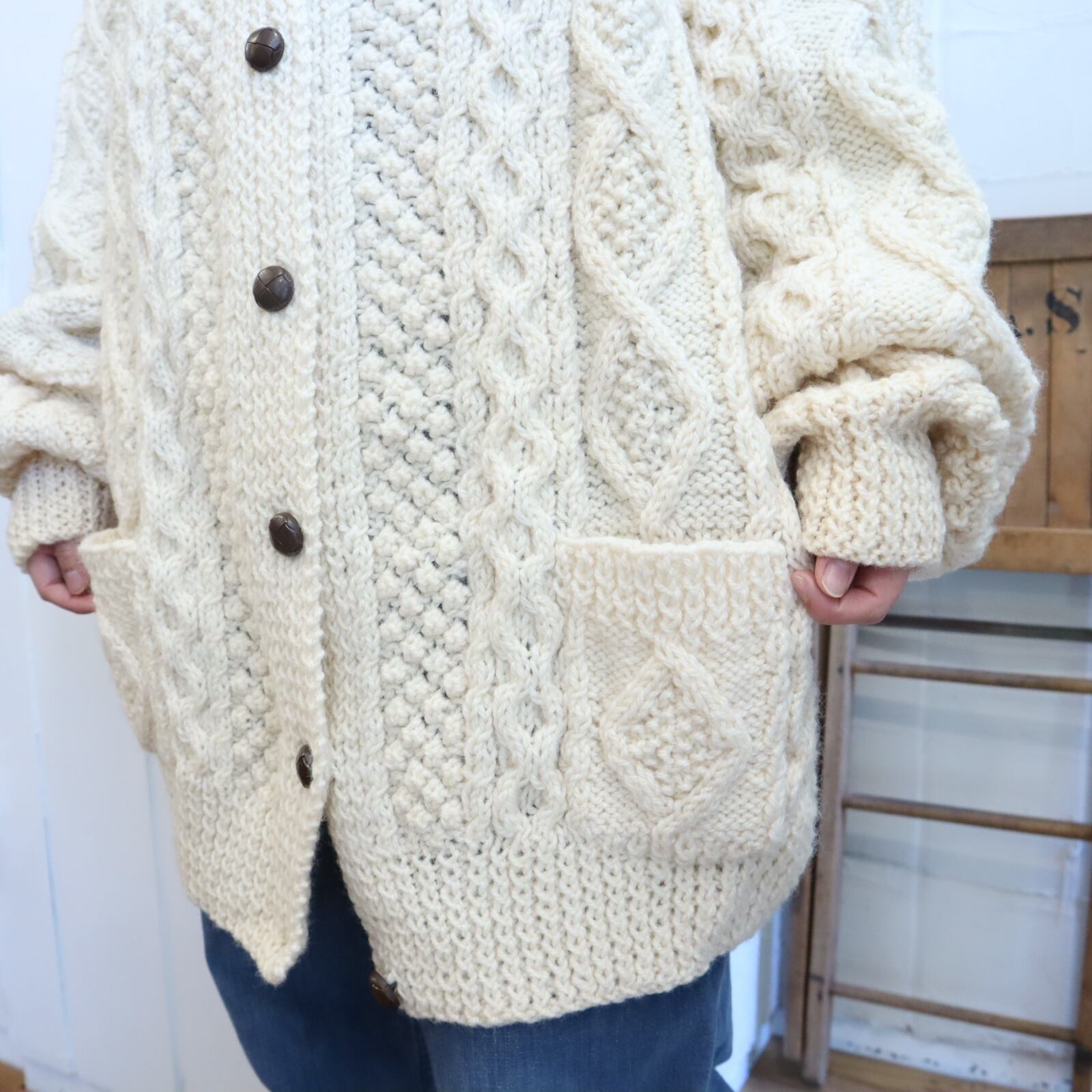 made in IRELAND offwhite fisherman knit cardigan [l-4525]