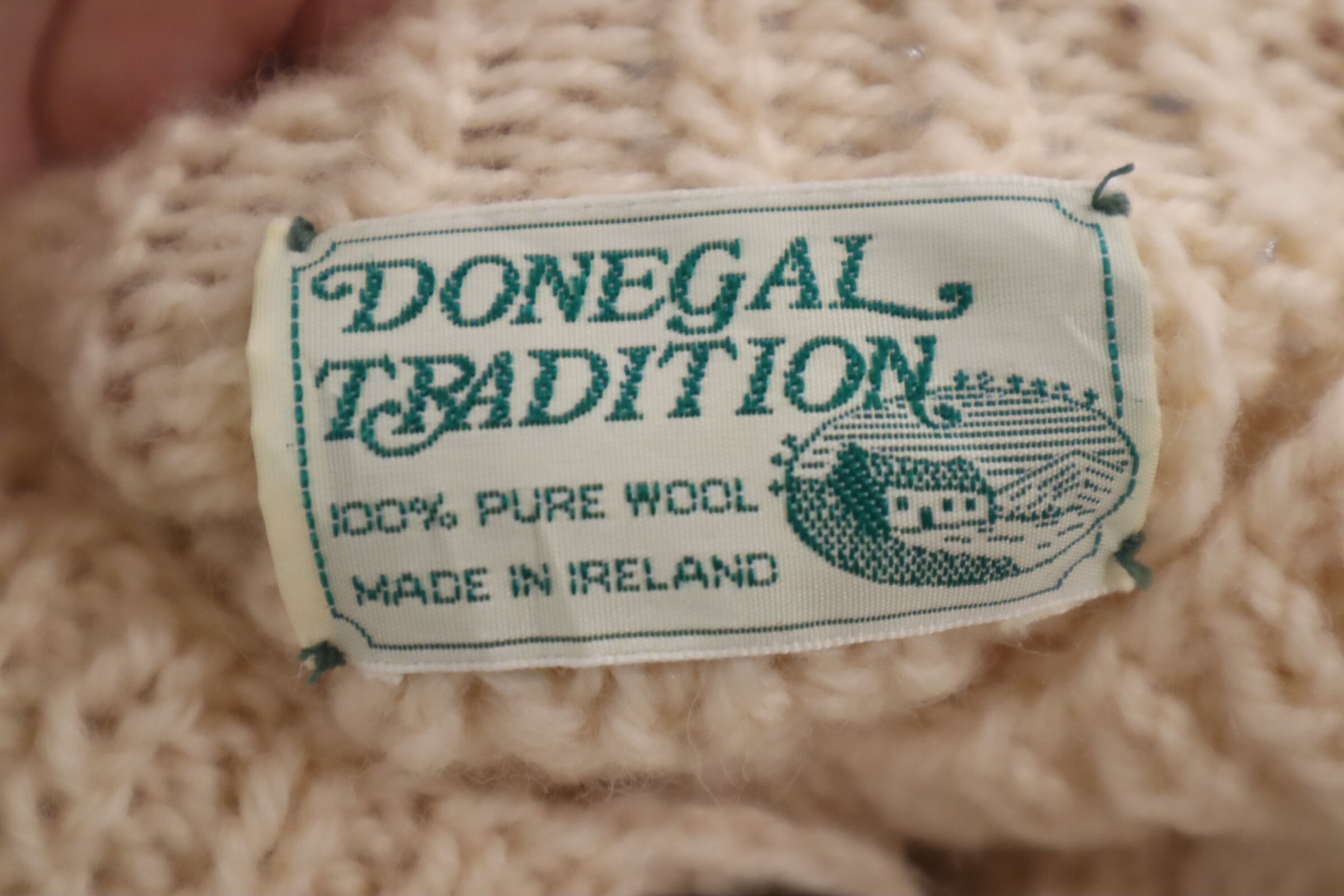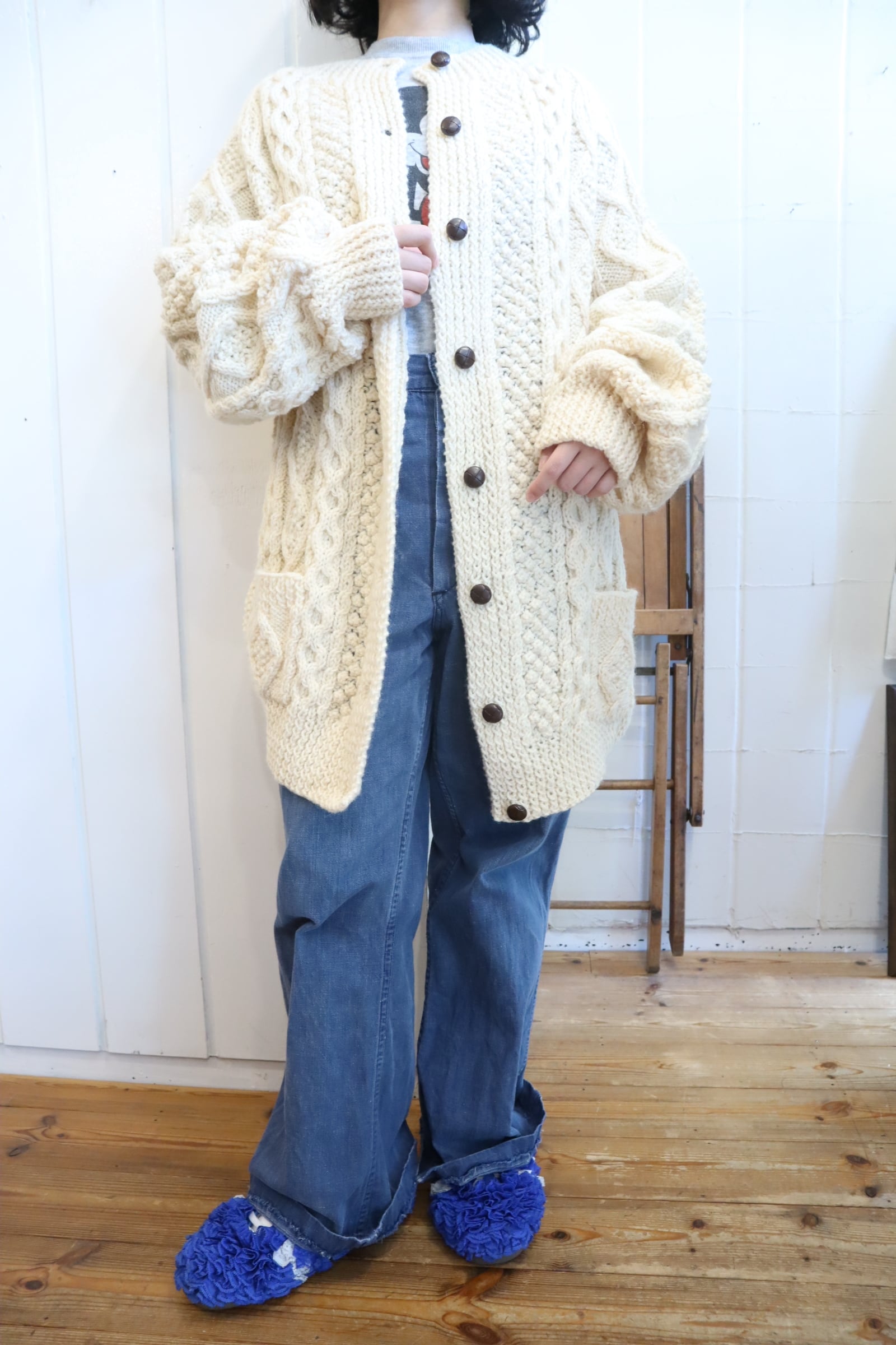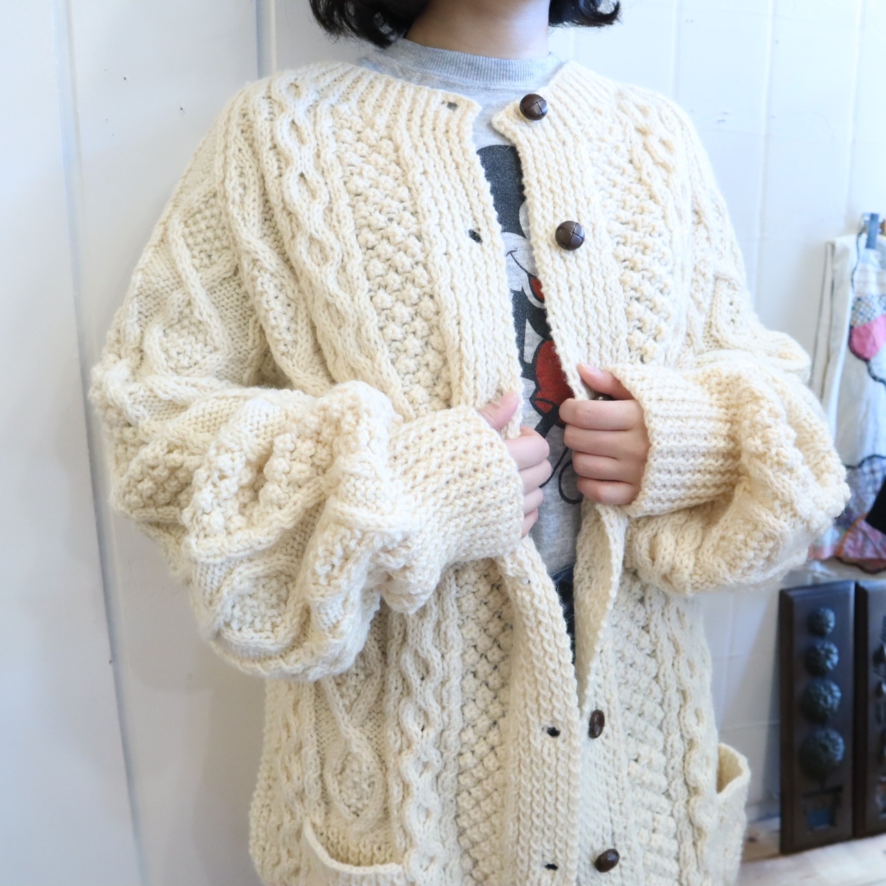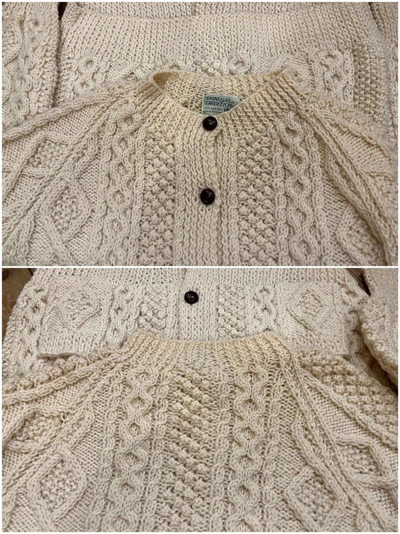 made in IRELAND offwhite fisherman knit cardigan [l-4525]