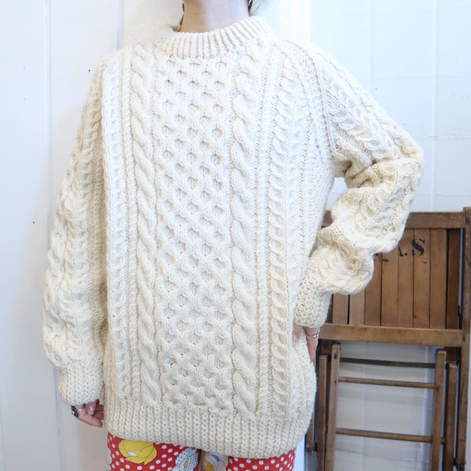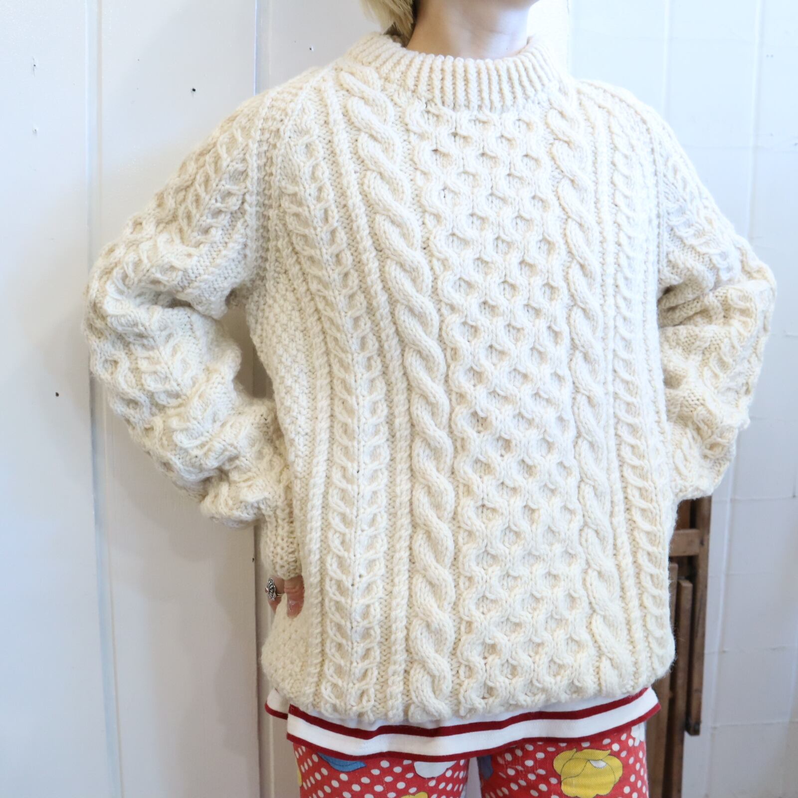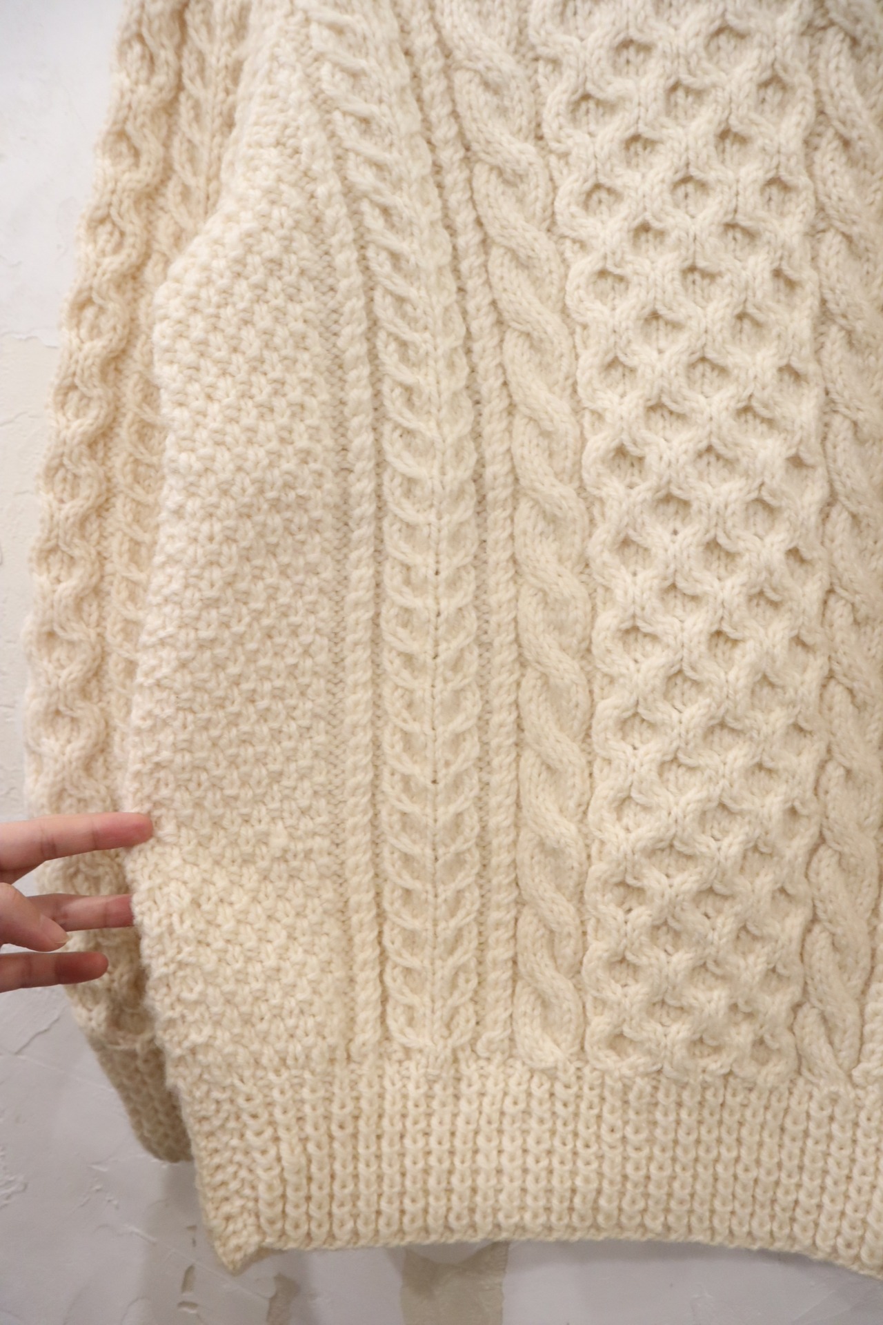 made in IRELAND offwhite fisherman knit pullover [l-4527]
