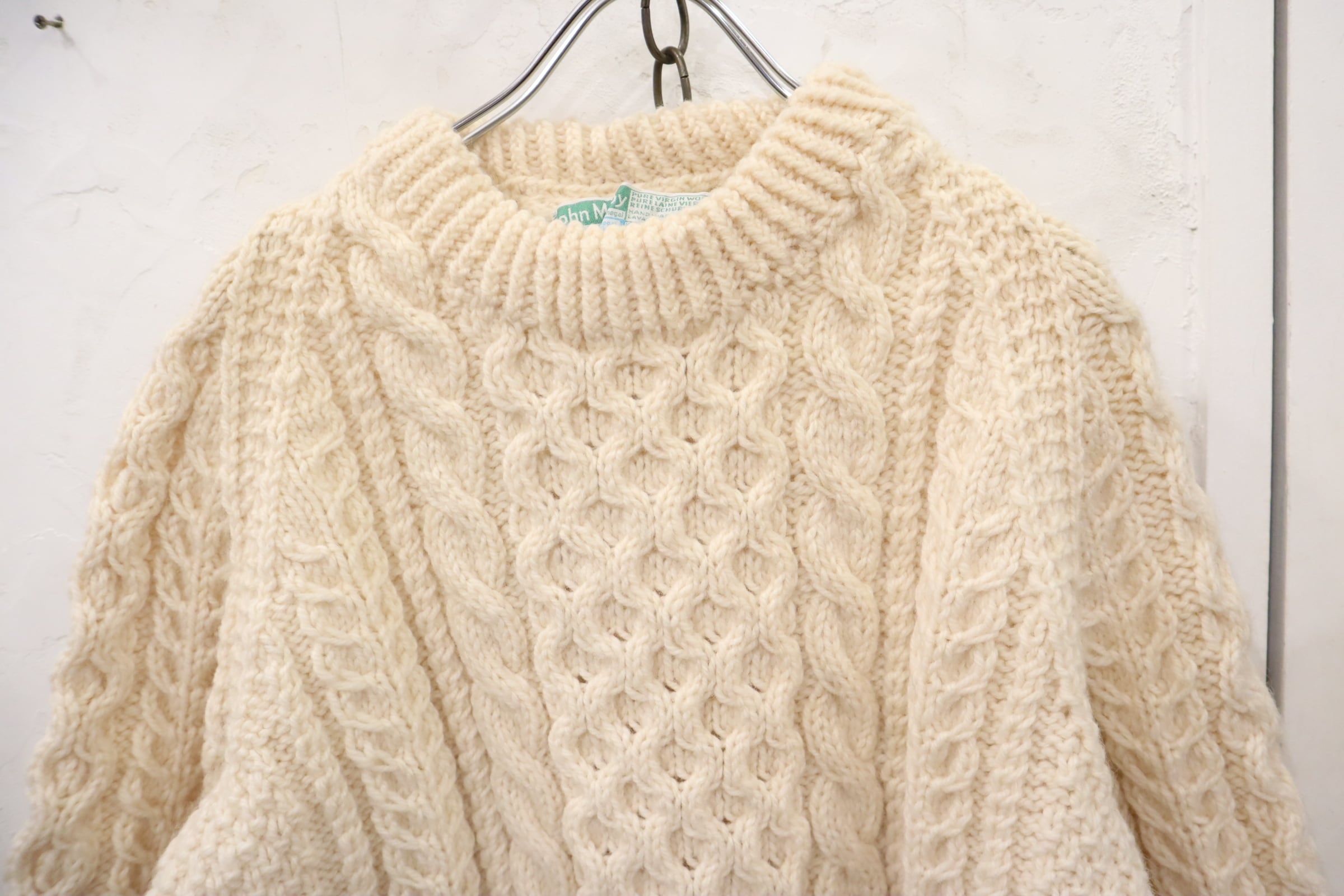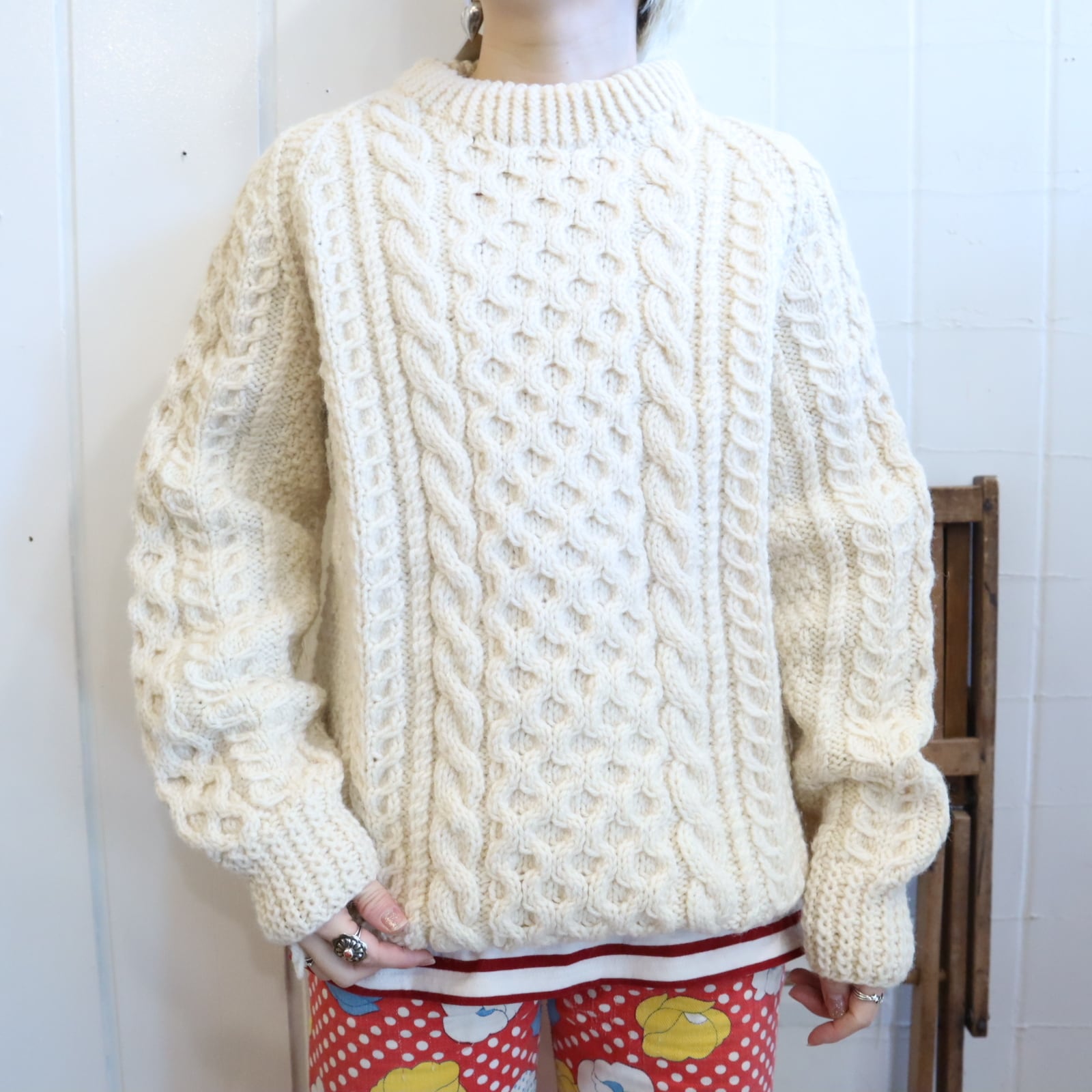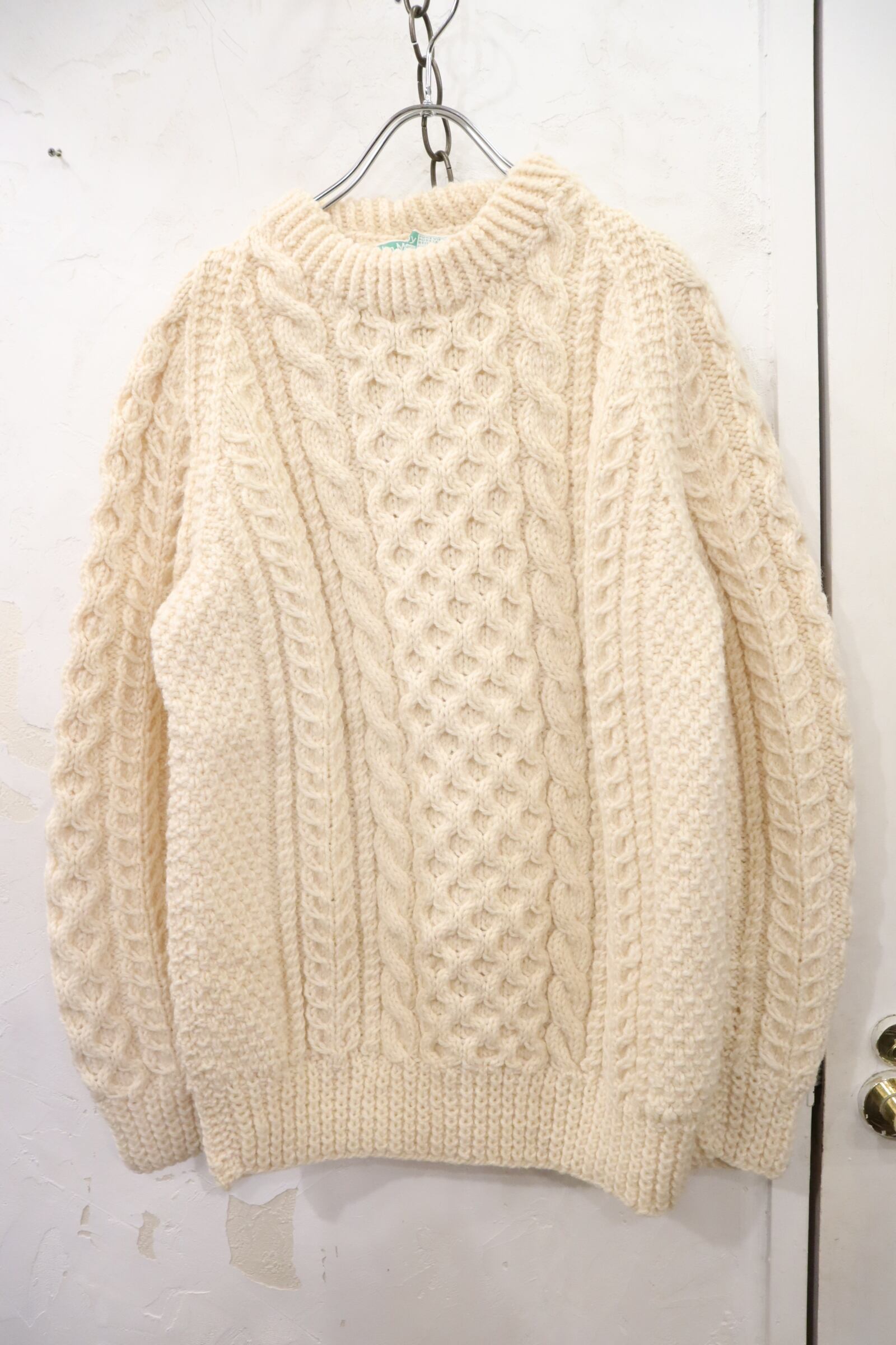 made in IRELAND offwhite fisherman knit pullover [l-4527]