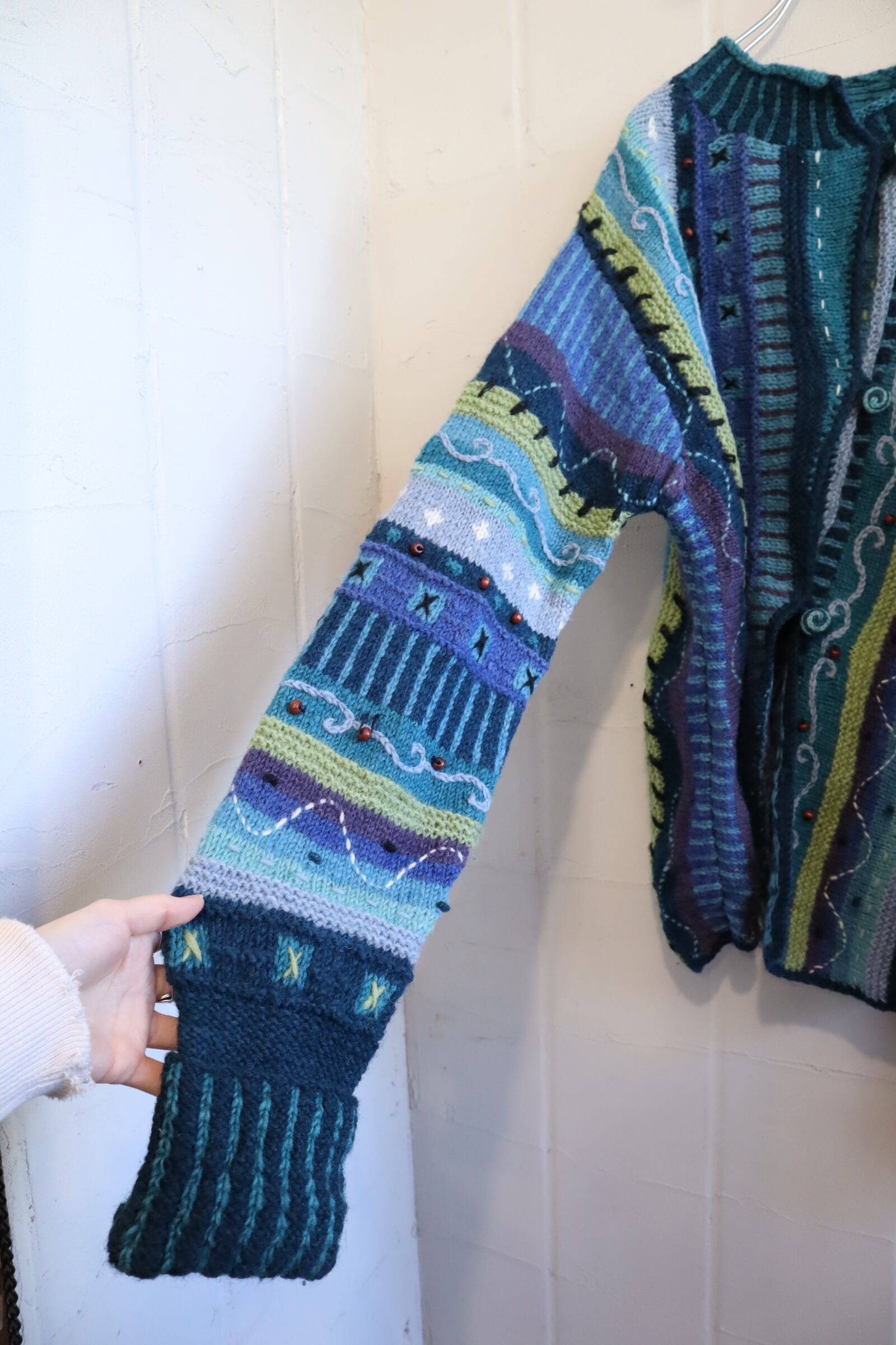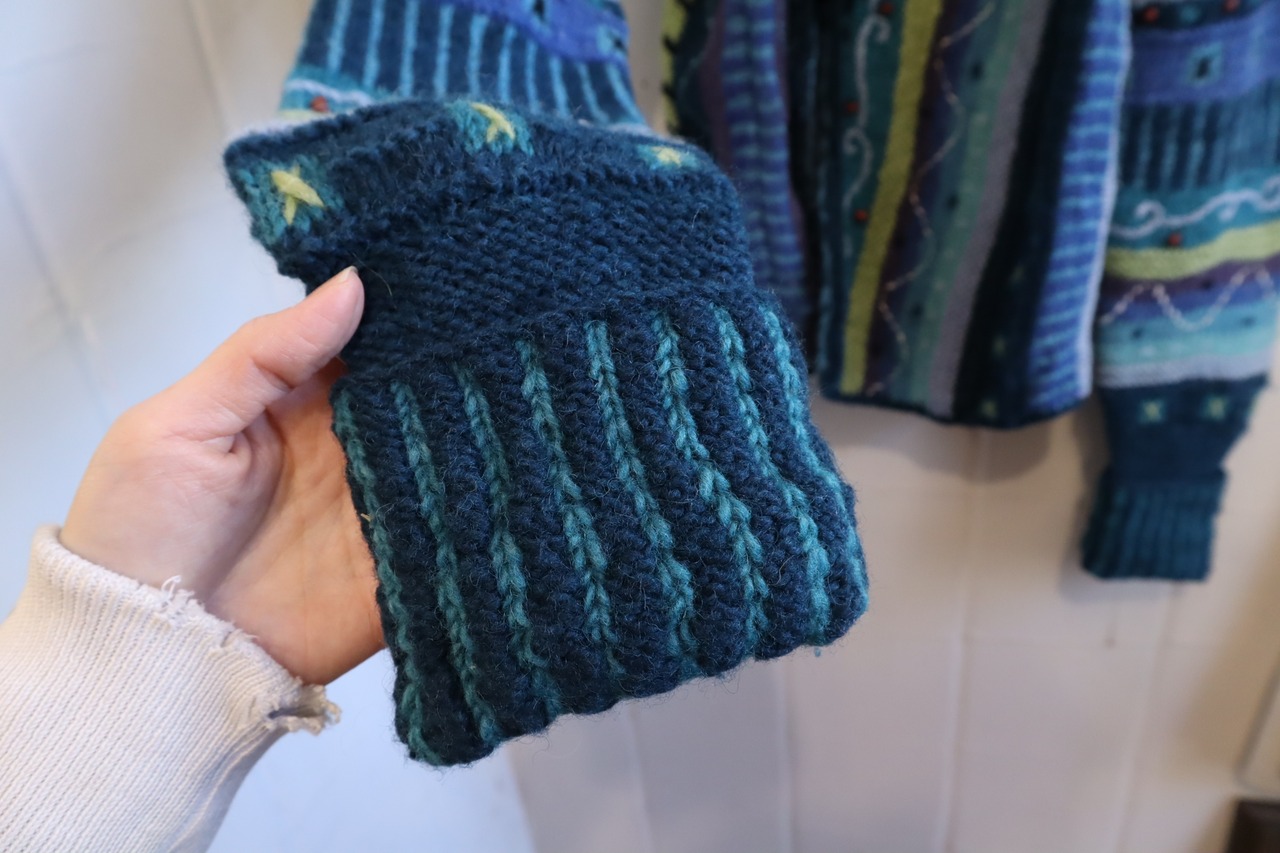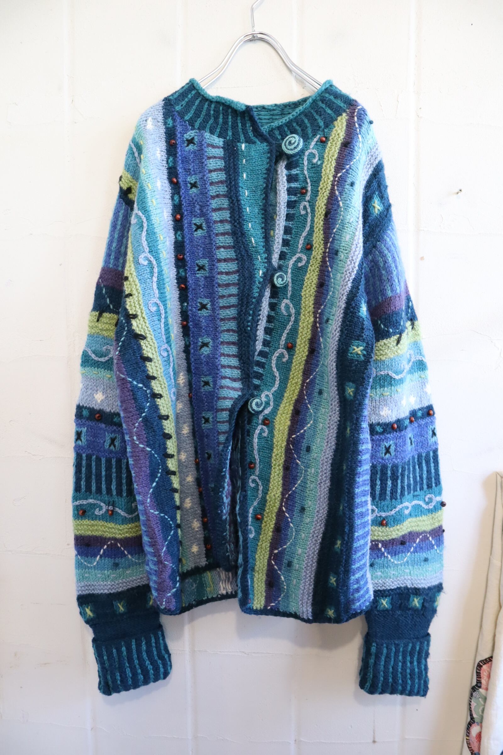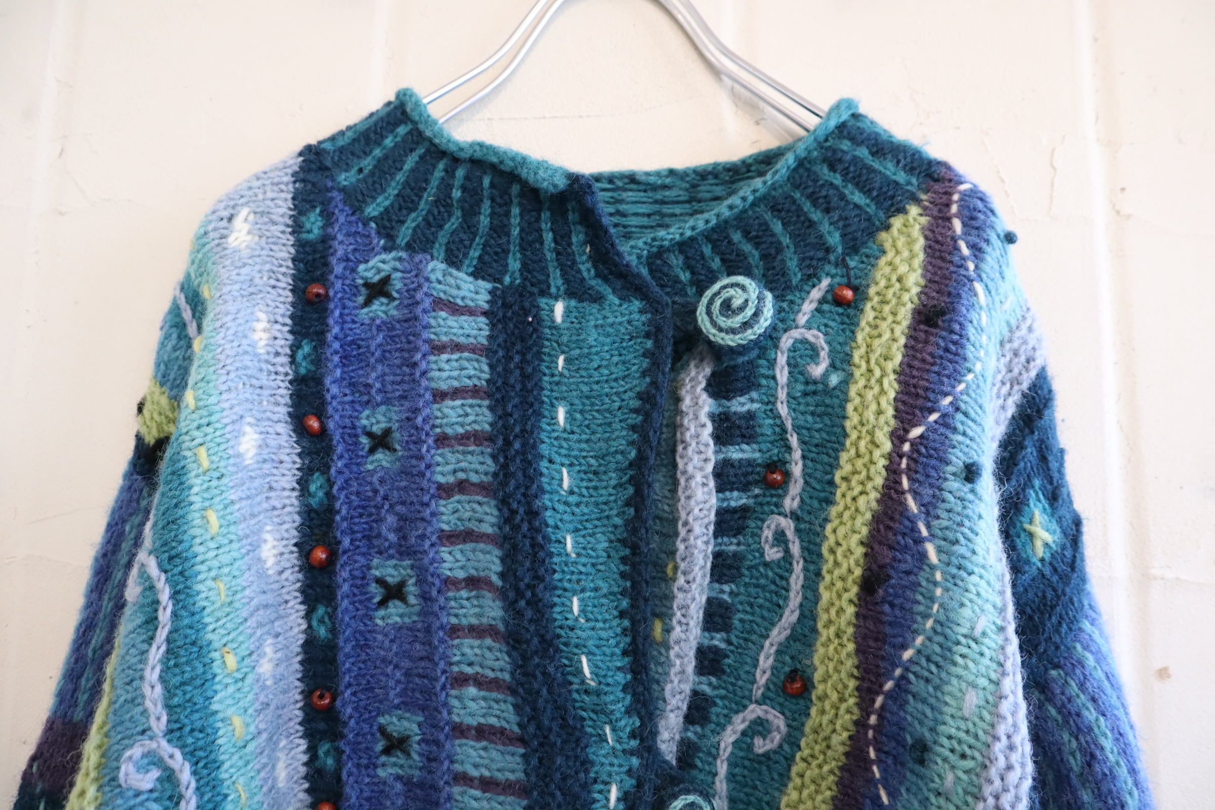 海のように見えるモチーフが可愛いネパール製のニットカーディガンです。