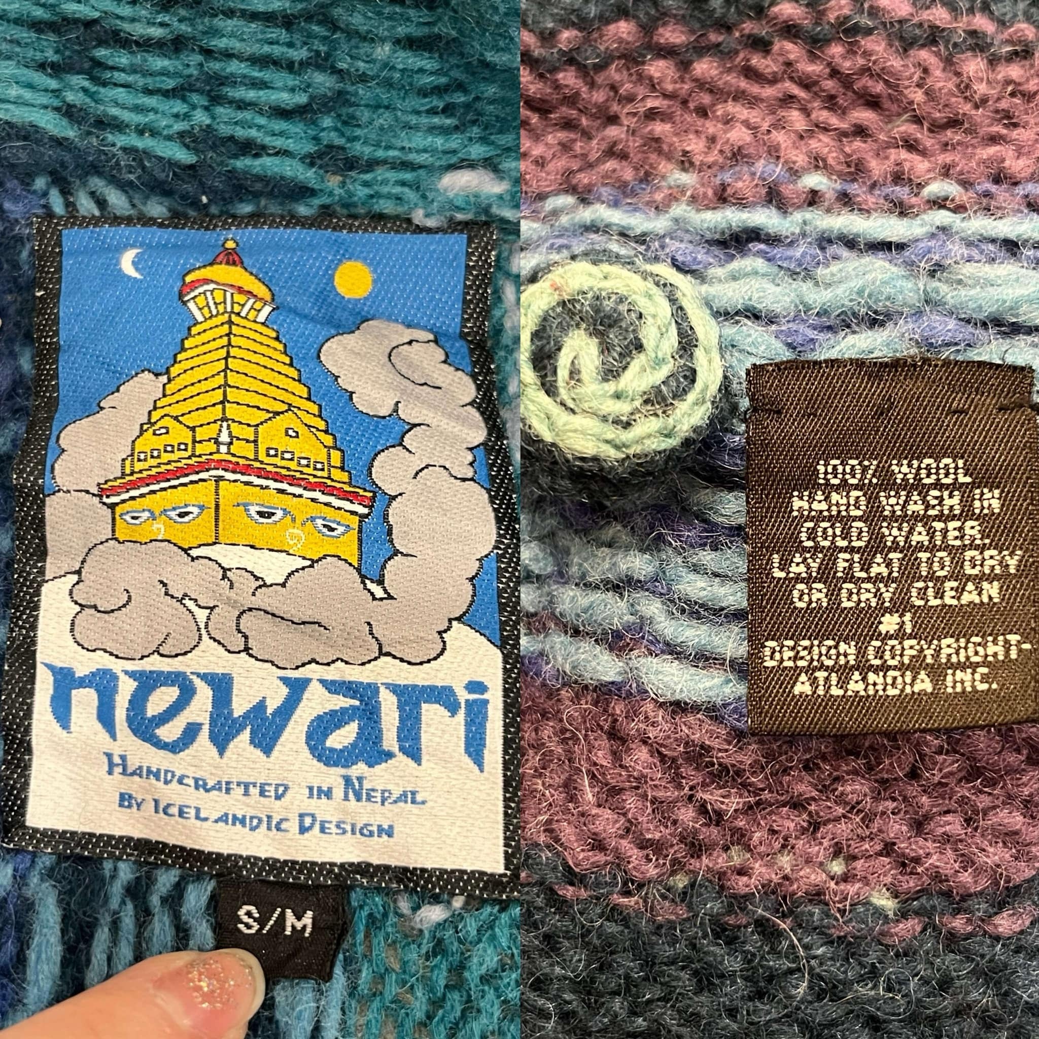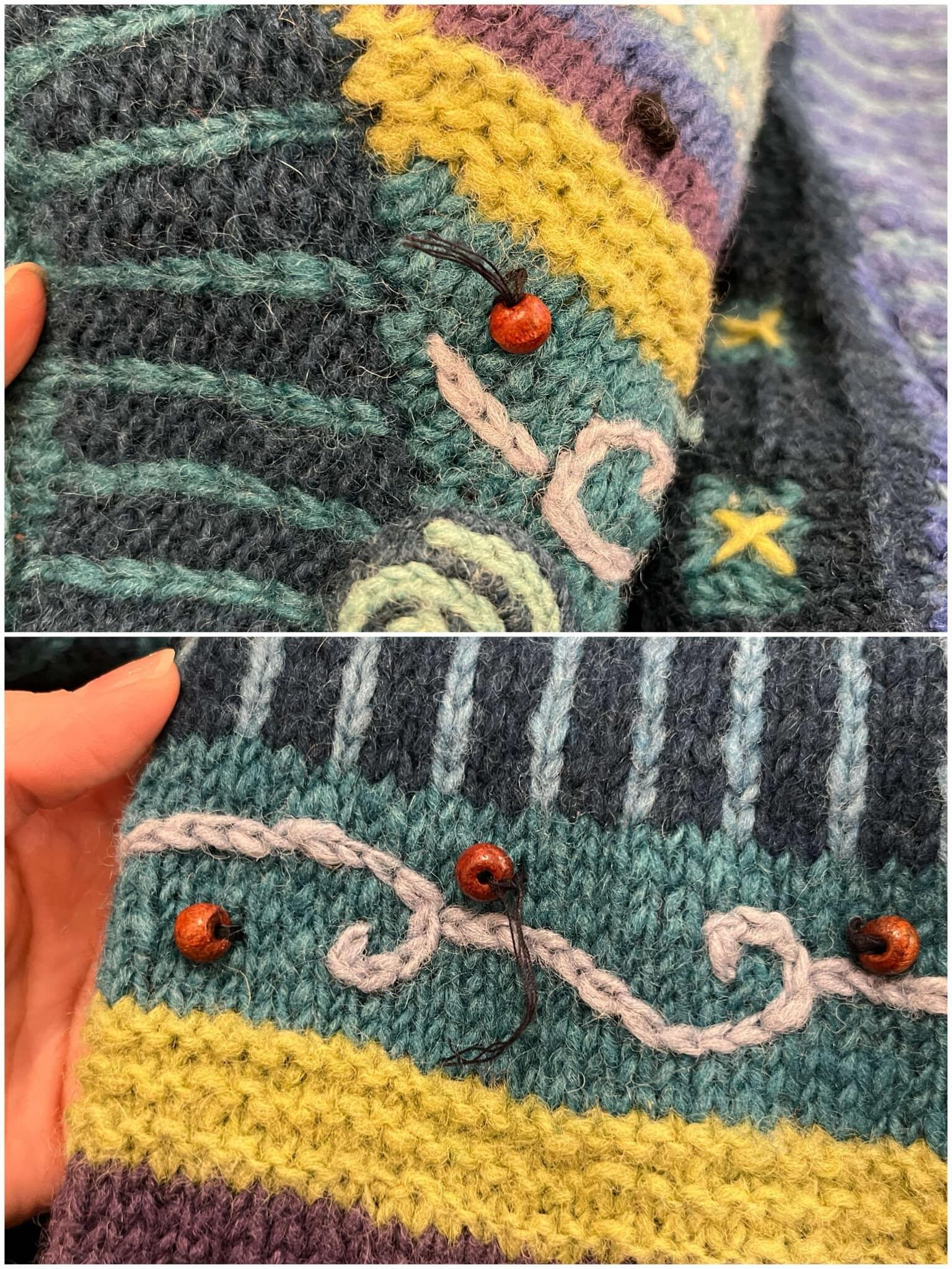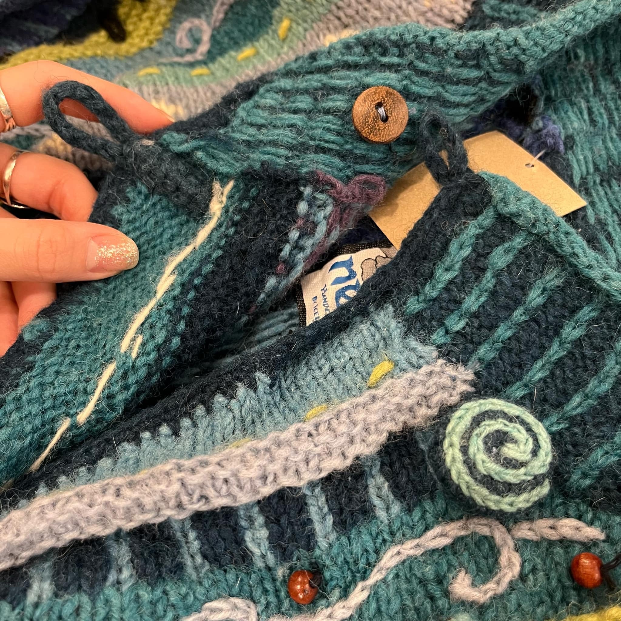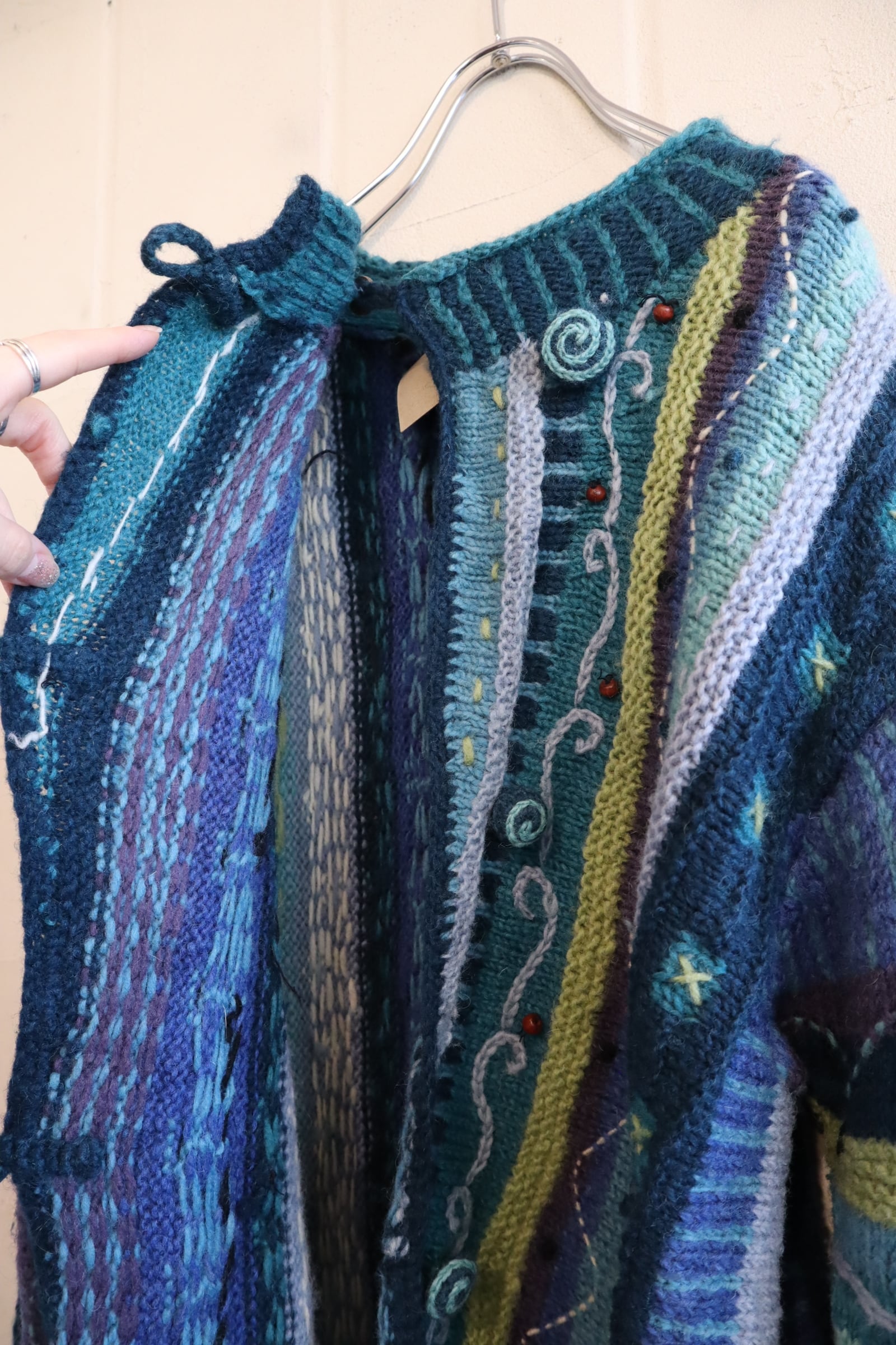 海のように見えるモチーフが可愛いネパール製のニットカーディガンです。