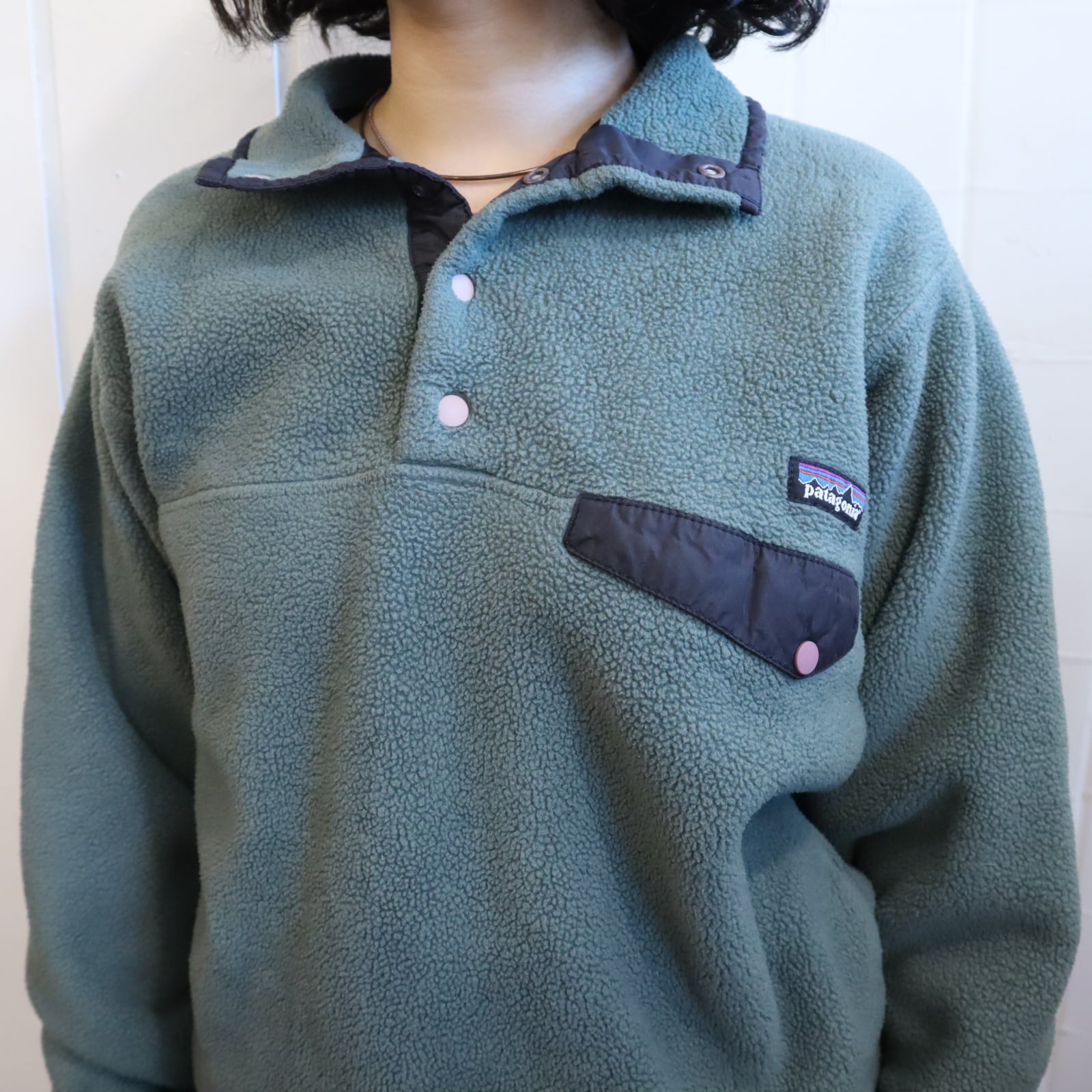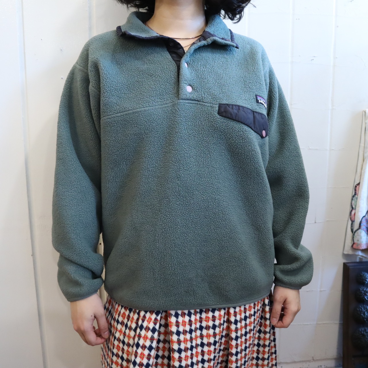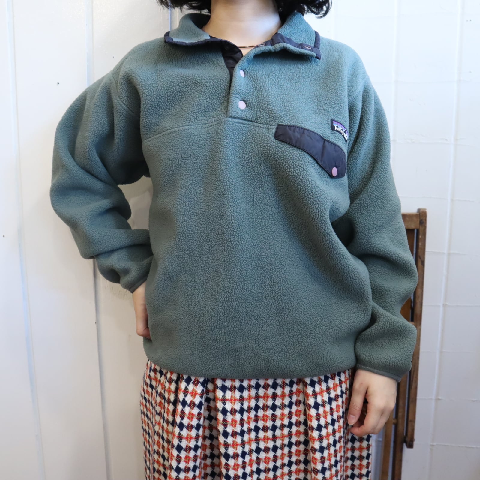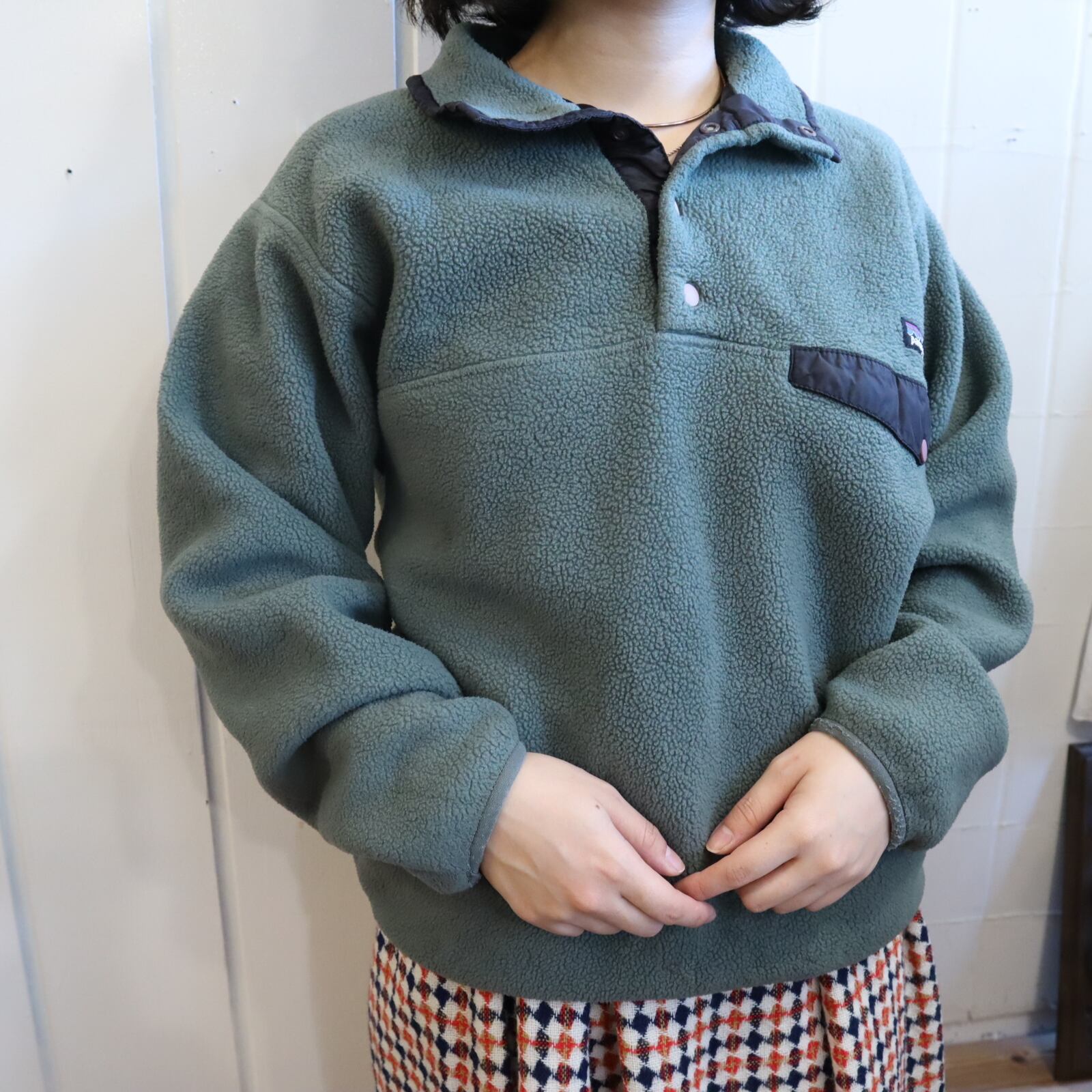 合わせやすい暗めなお色味のPatagoniaスナップTです。
