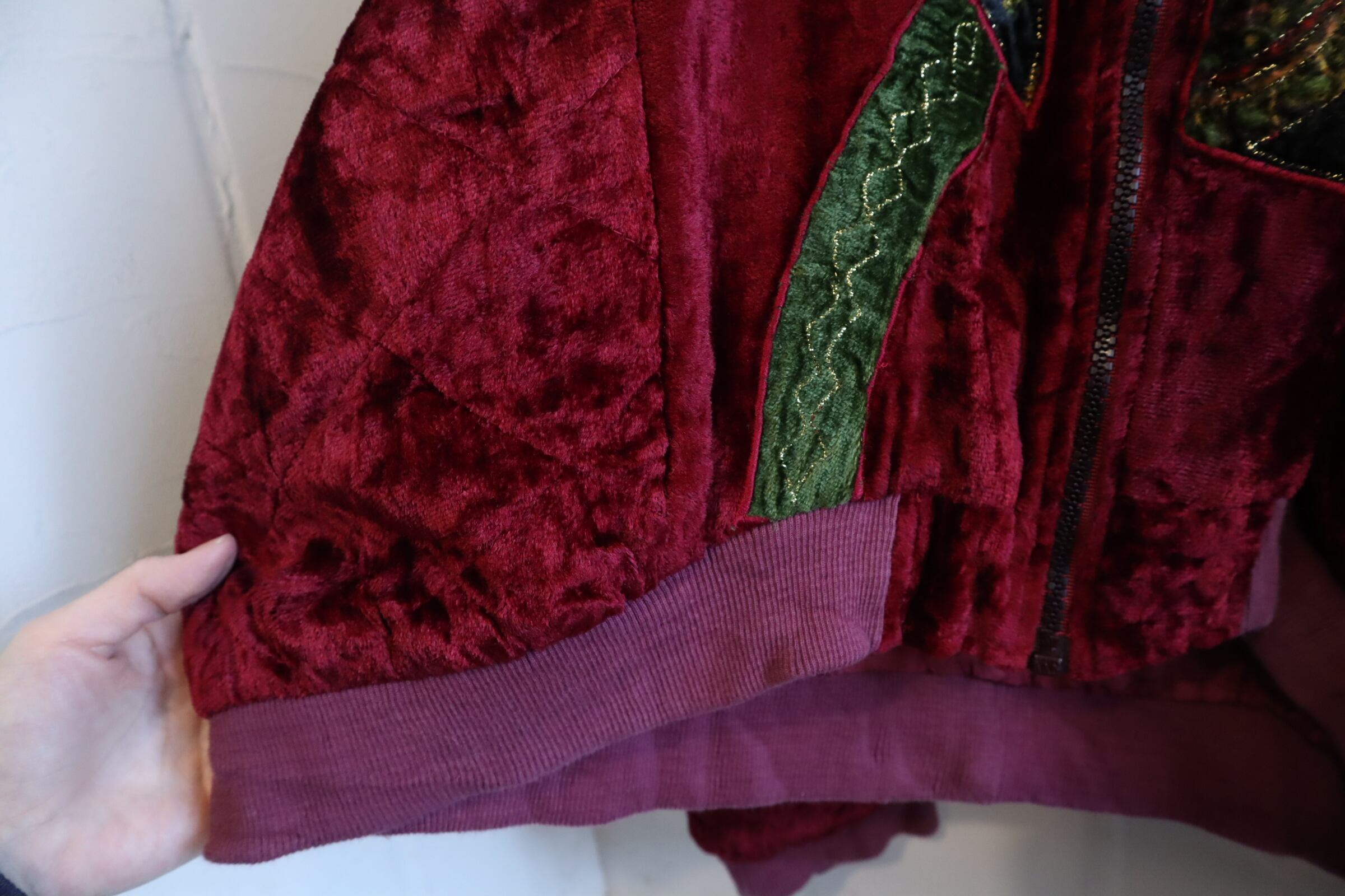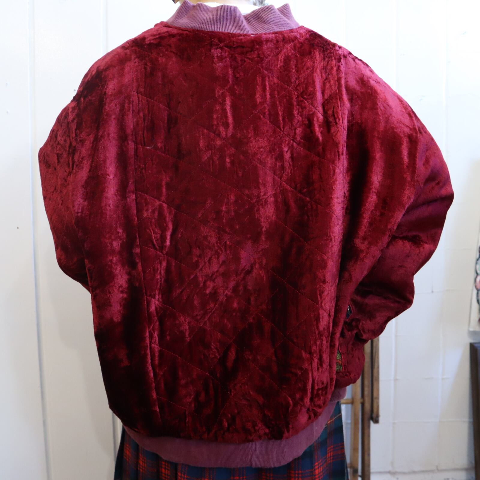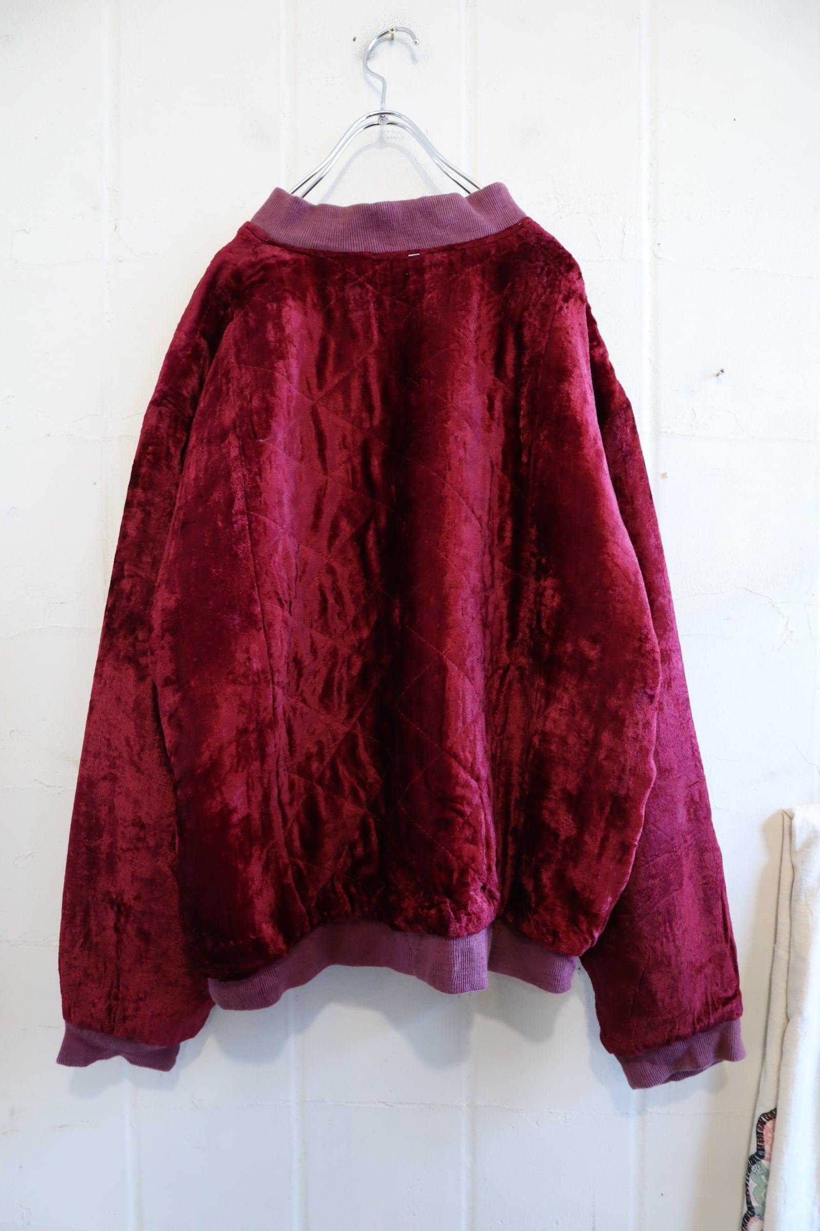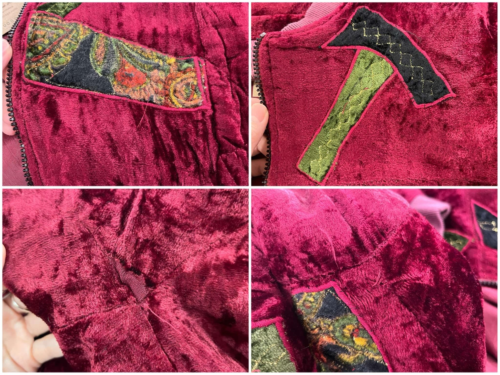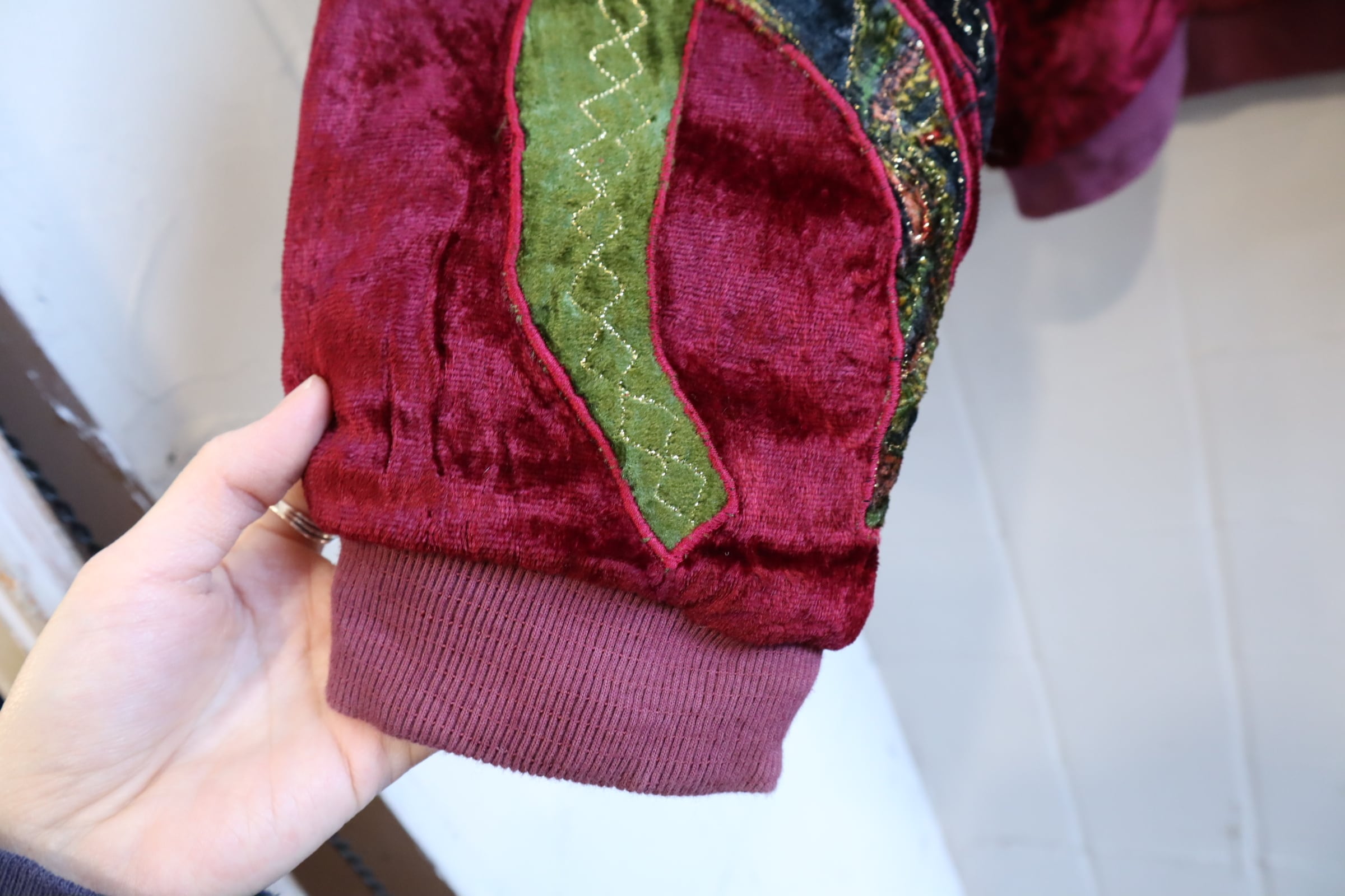 古着らしいパッチデザインが個性的で素敵な80sのベロアジャケット。
