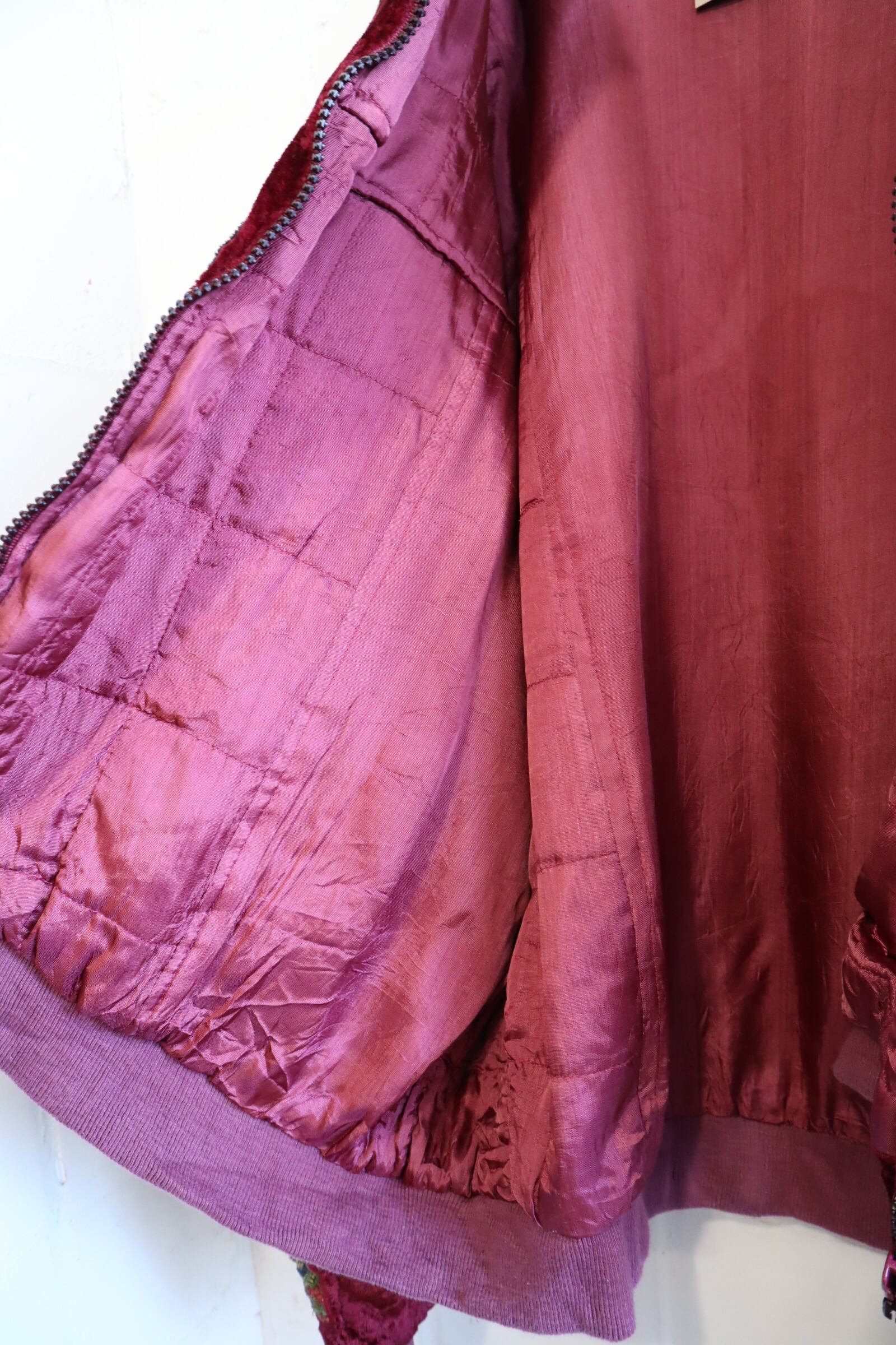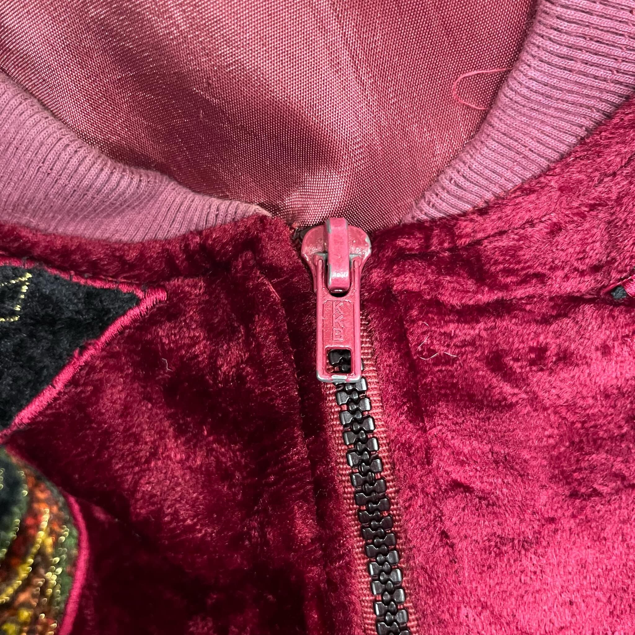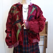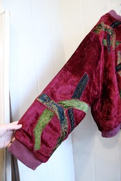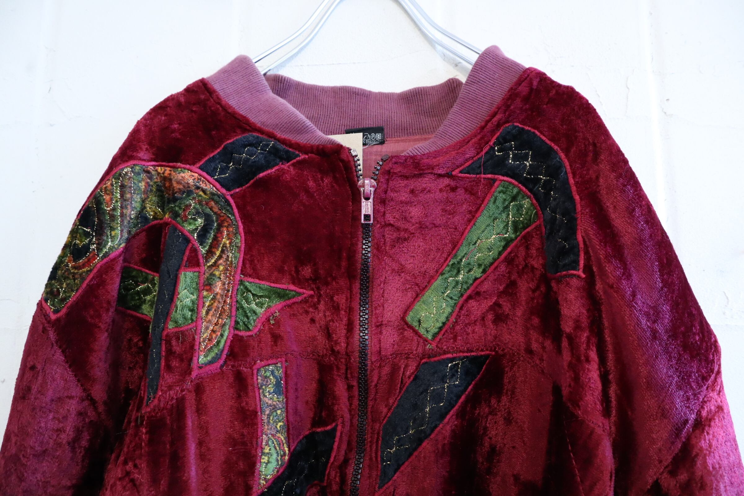 80s dullred×black velour patch design jacket [l-4537]
