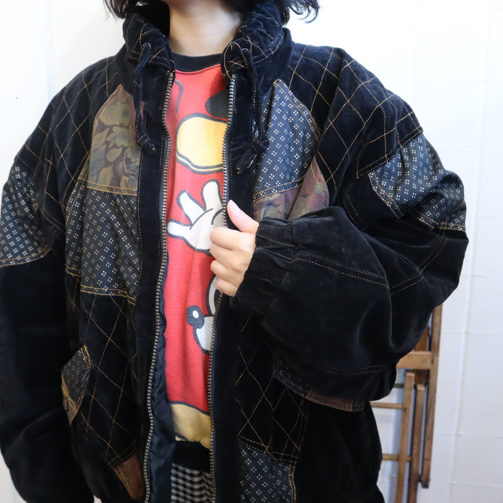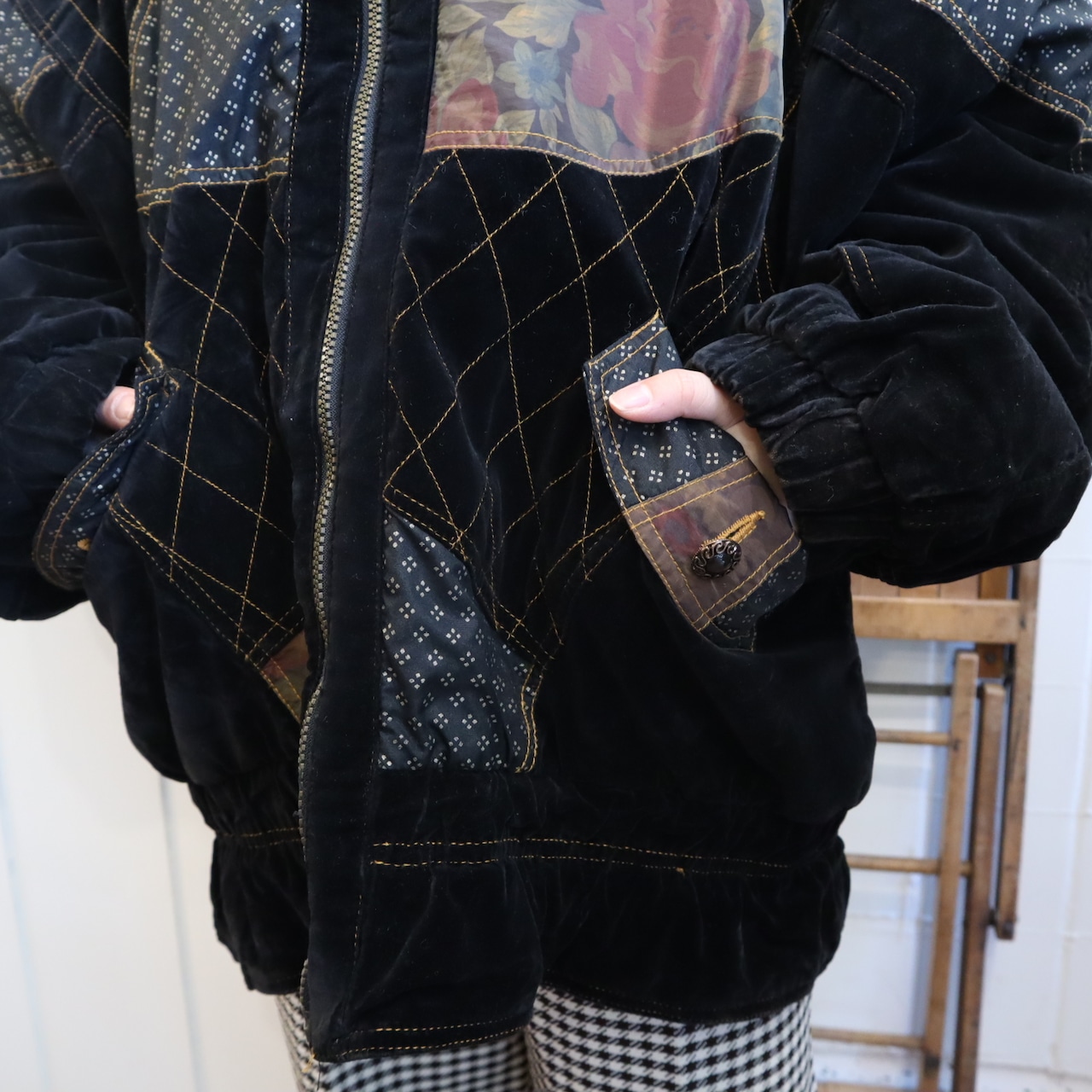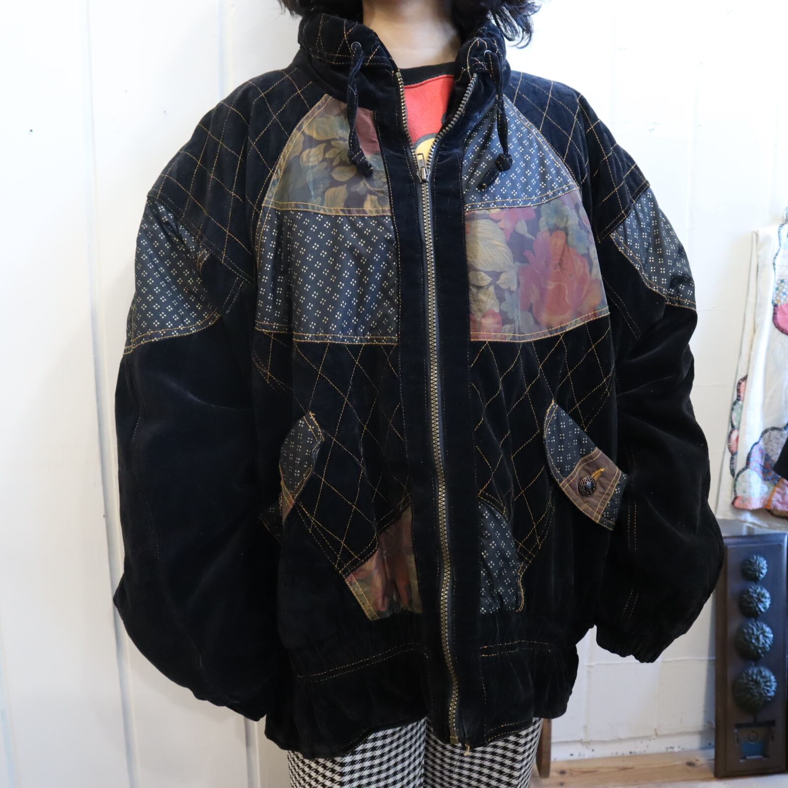 ステッチデザインや生地の切替が可愛い80sベロアジャケット♡