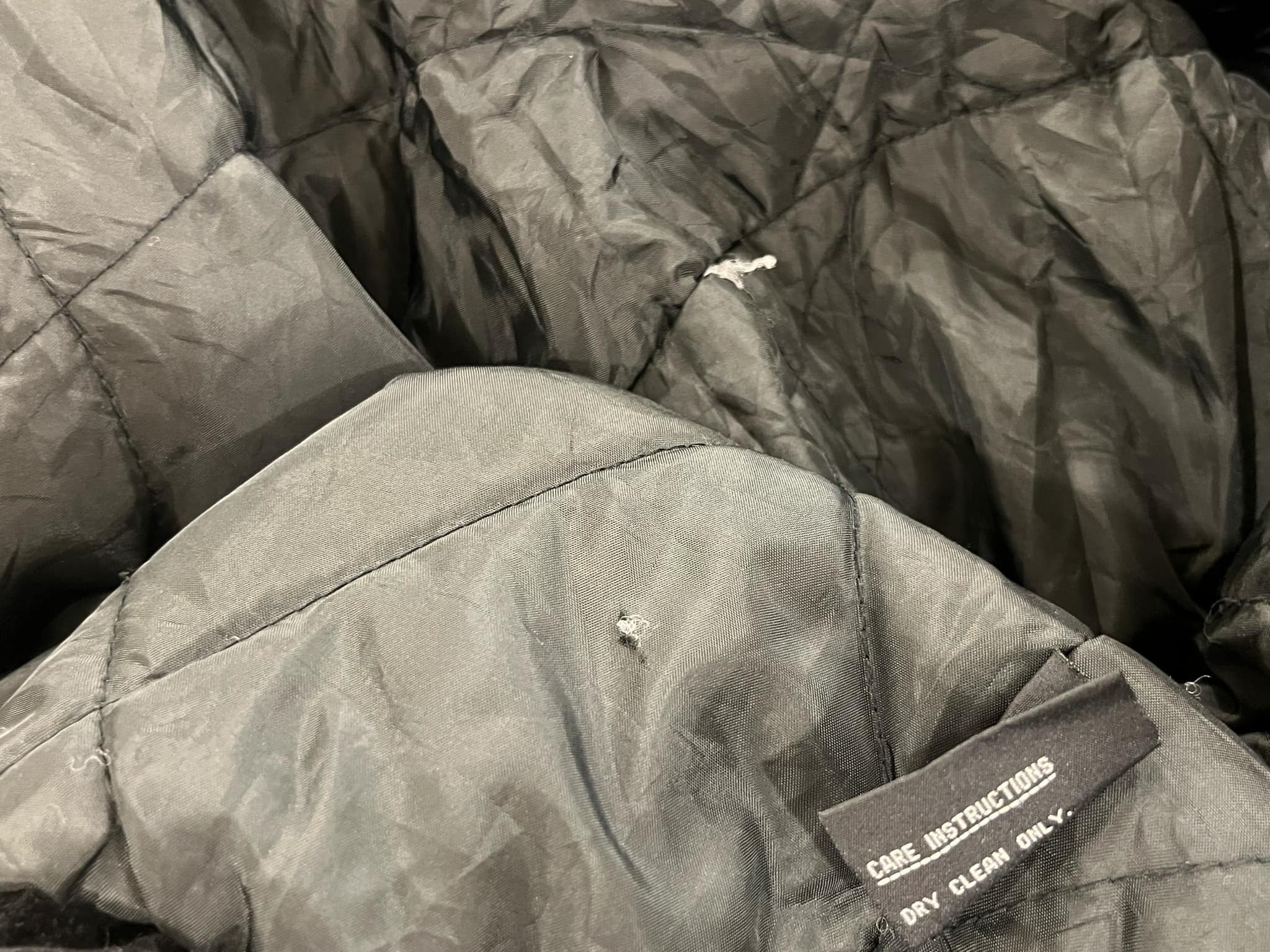 裏地にいくつか中綿の飛び出し、表地にいくつか糸の飛び出しがございますが、古着の味として着て頂けるかと思います。