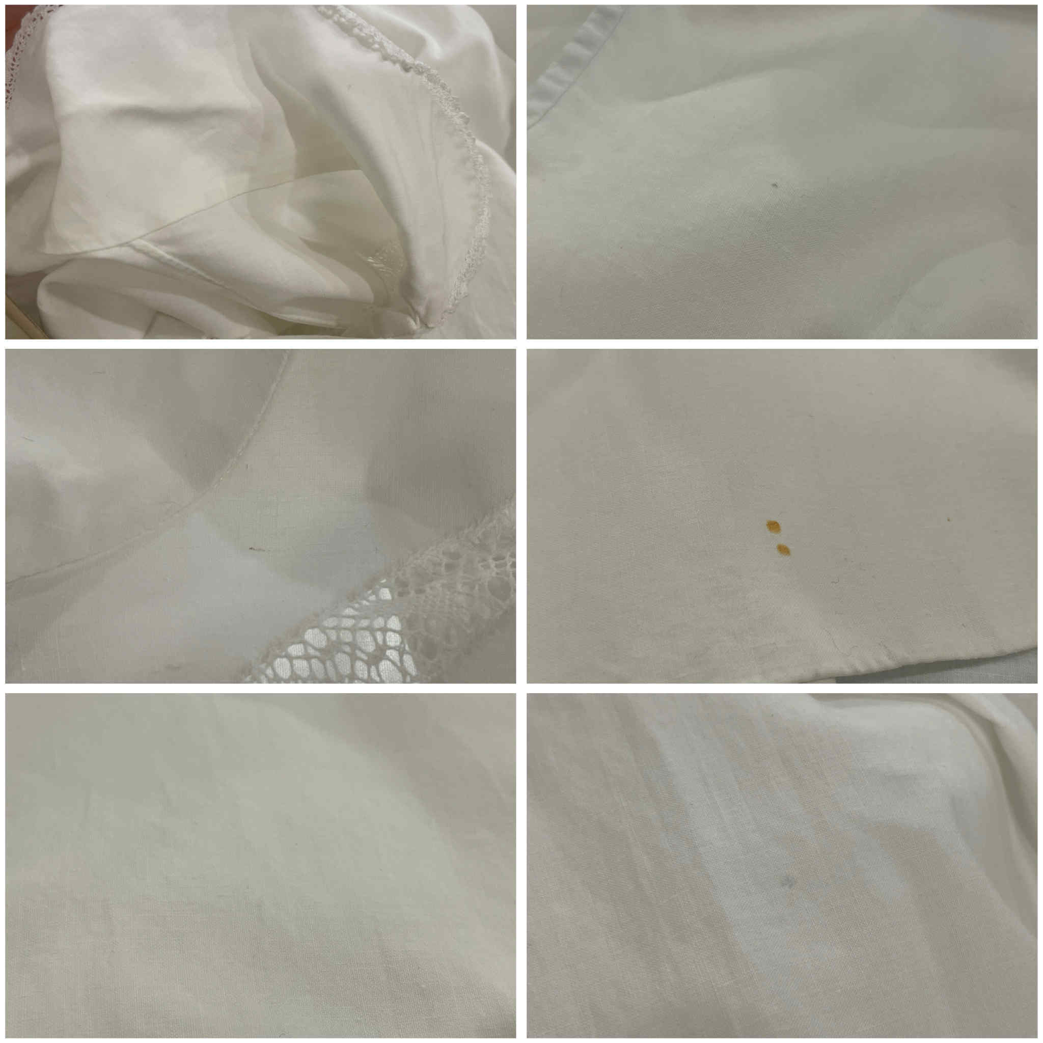襟内側に黄ばみ、ボディにいくつかシミ・汚れ・ツレ、一部小穴がございますが、古着の味として着て頂けるかと思います。
