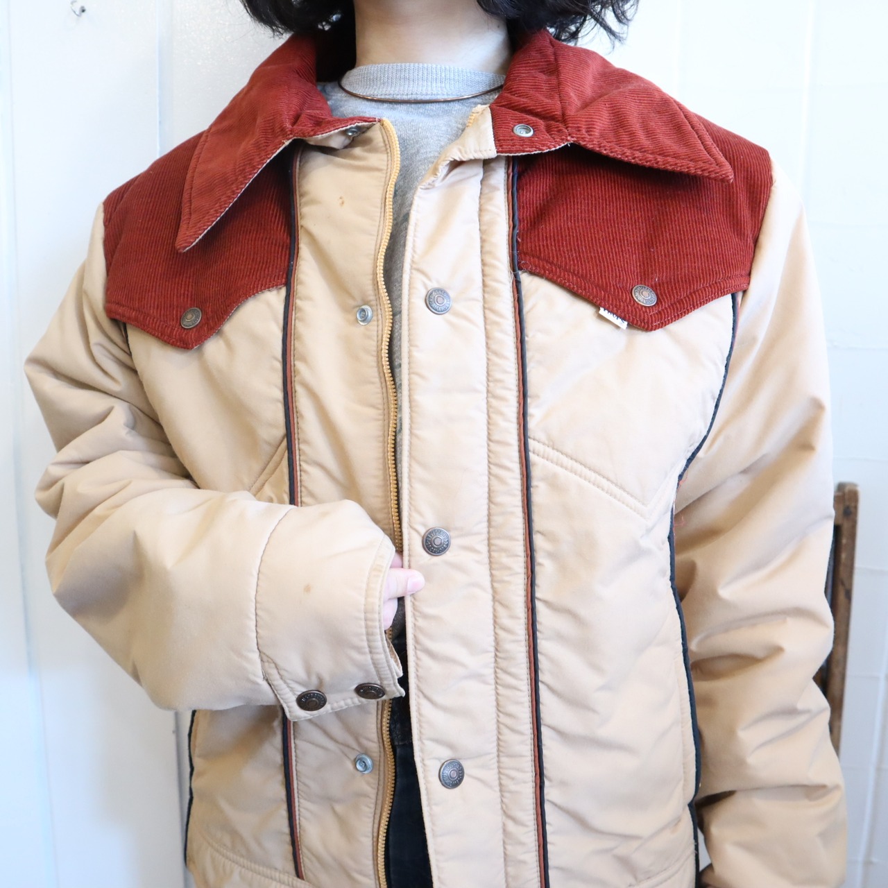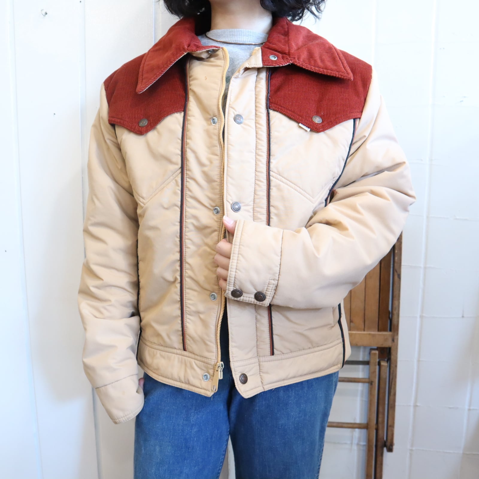 70s Levi's beige×bordeaux corduroy switching ski jacket [l-4547]