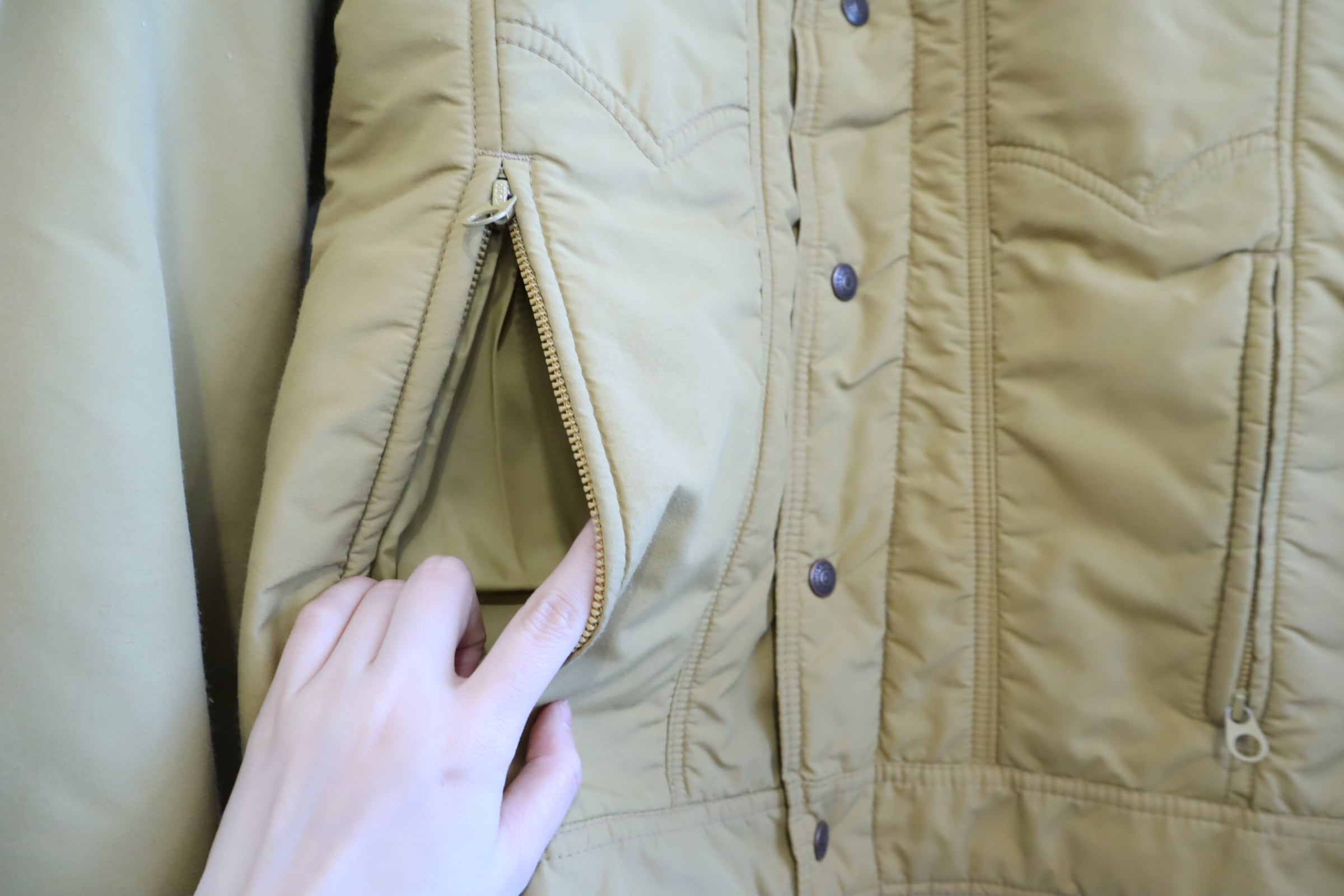渋めなマスタードカラーにデニム切替が素敵なスキージャケット。