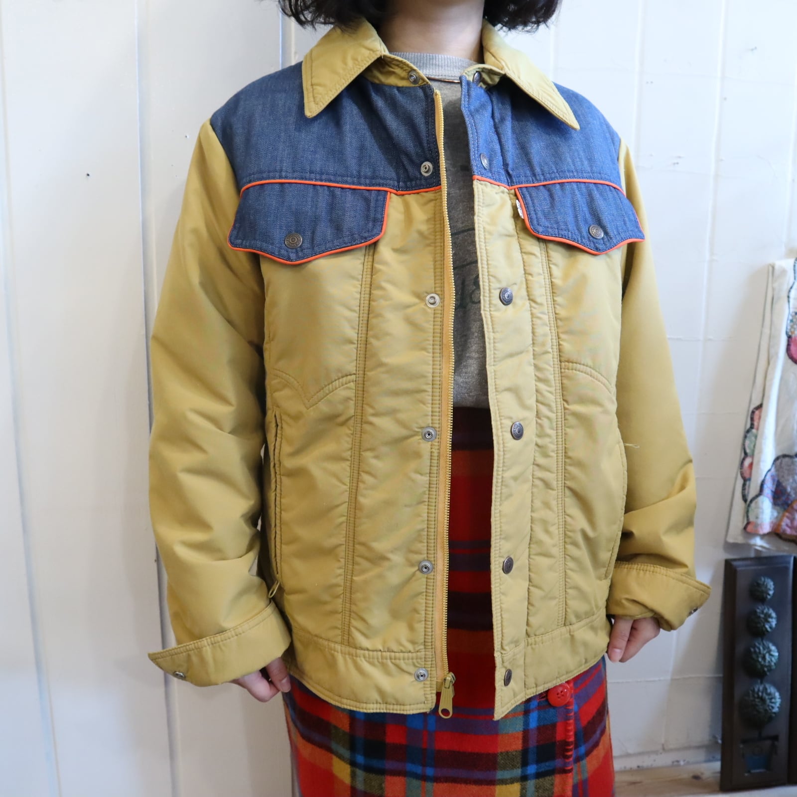 70s Levi's mustard×blue denim switching ski jacket [l-4548]