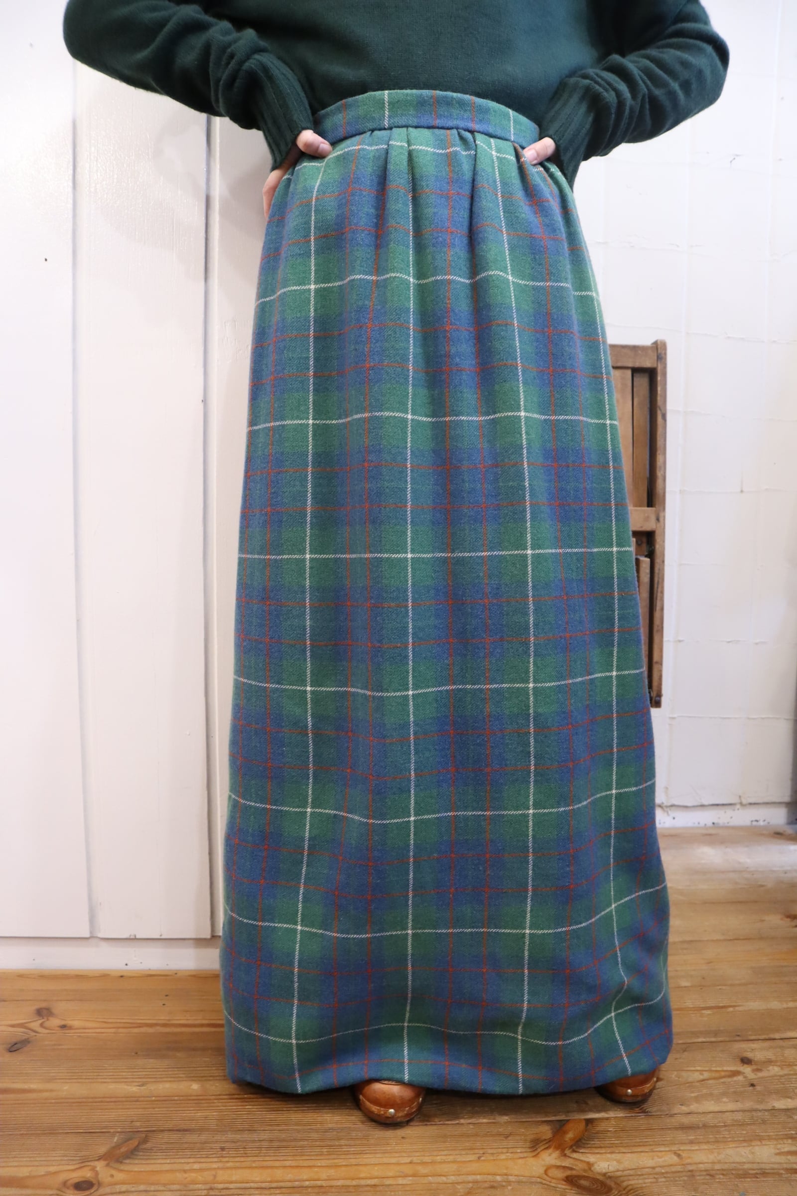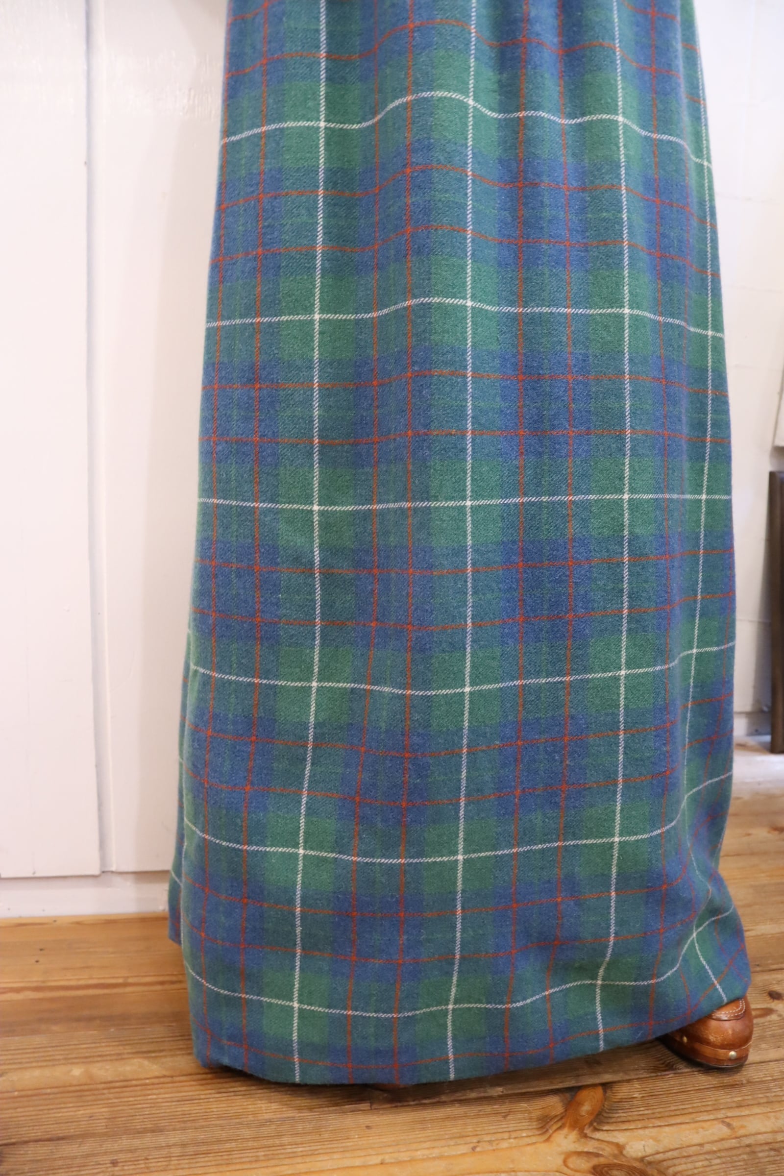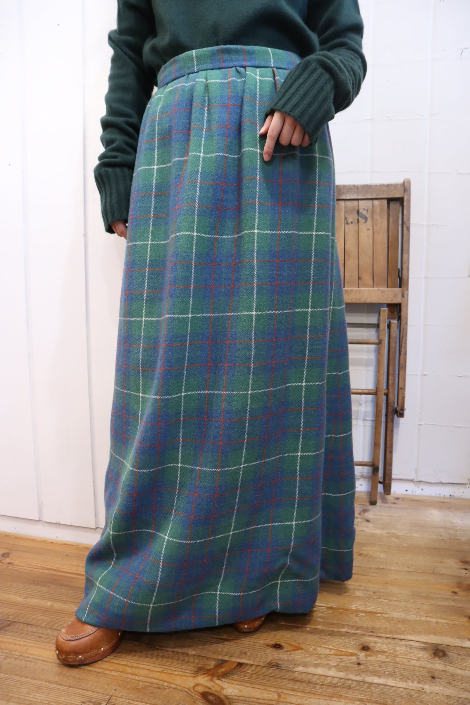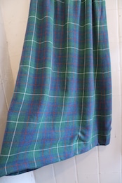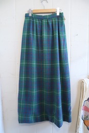 70s- green×blue×red plaid long skirt [l-4562]