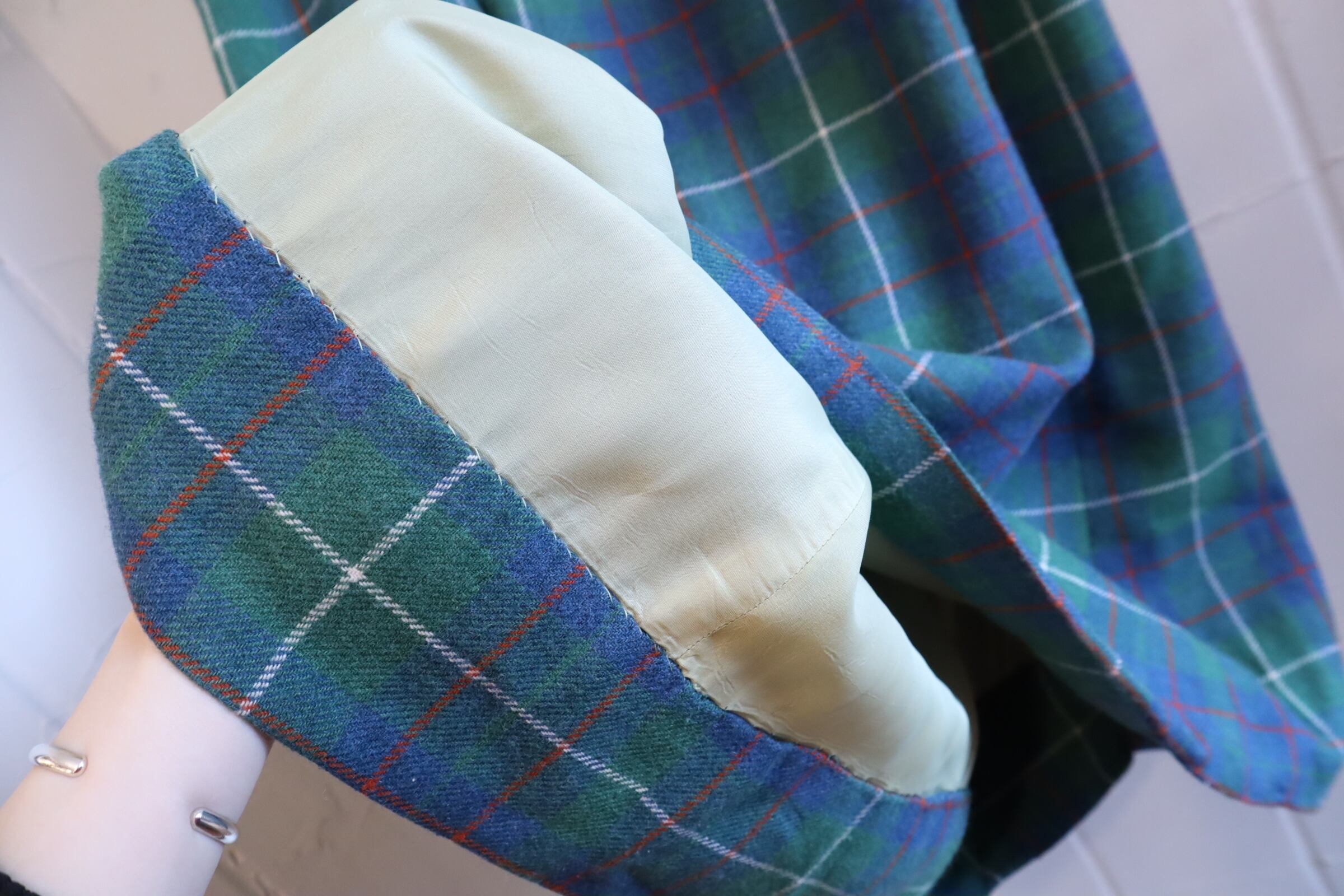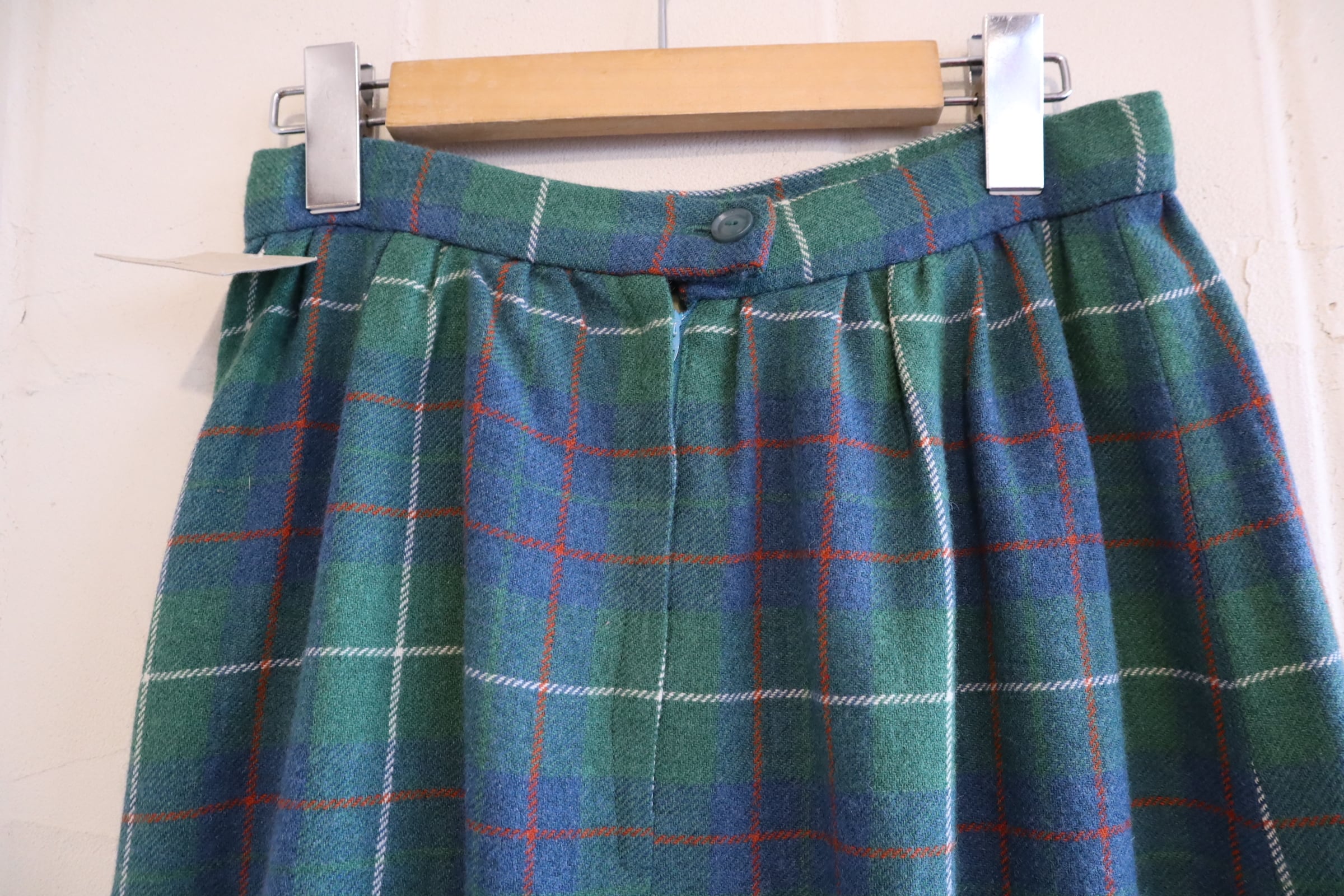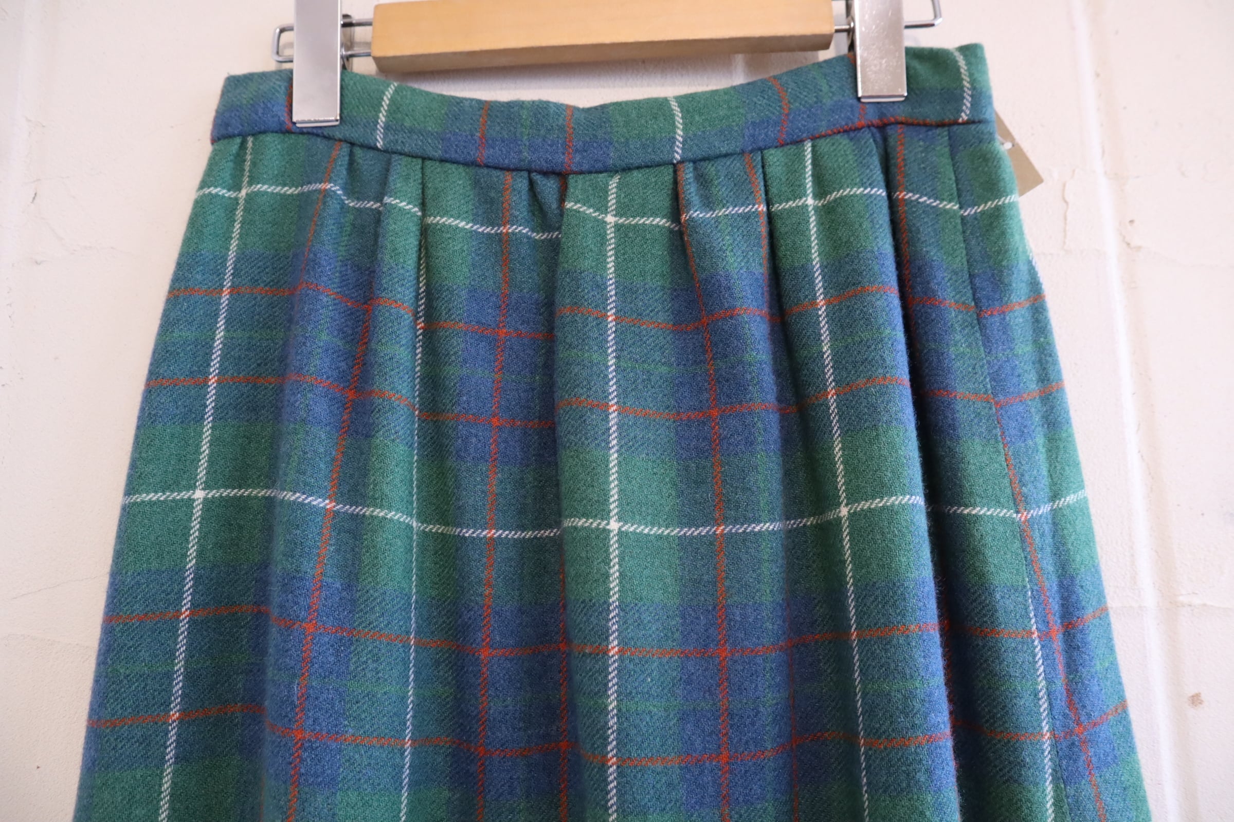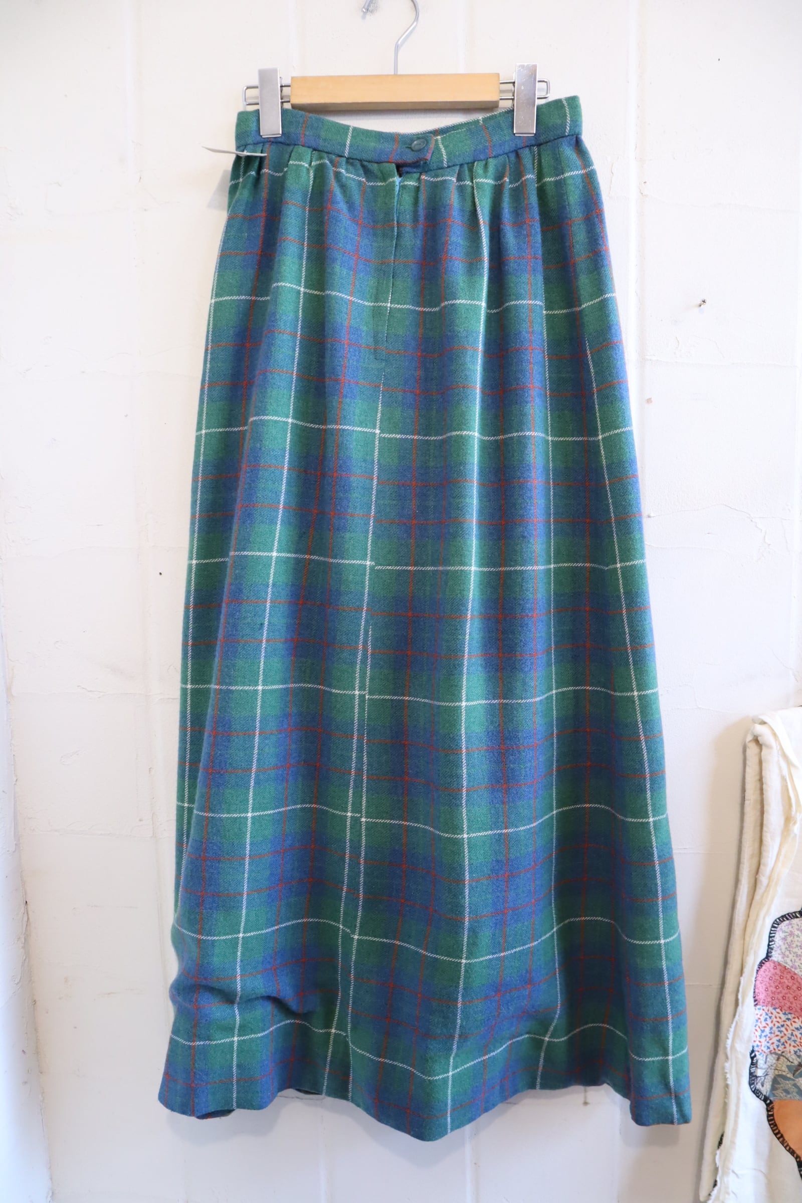 70s- green×blue×red plaid long skirt [l-4562]