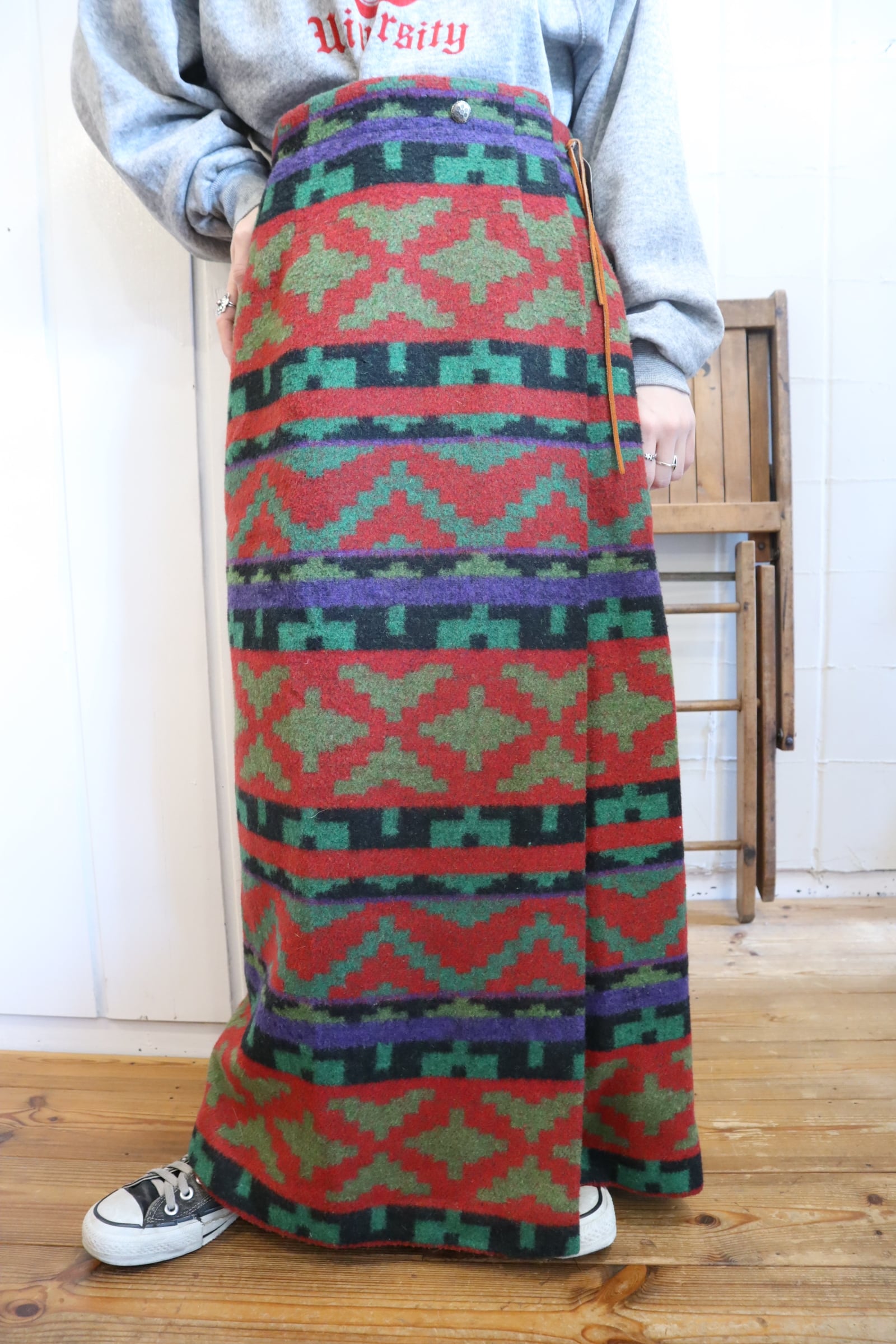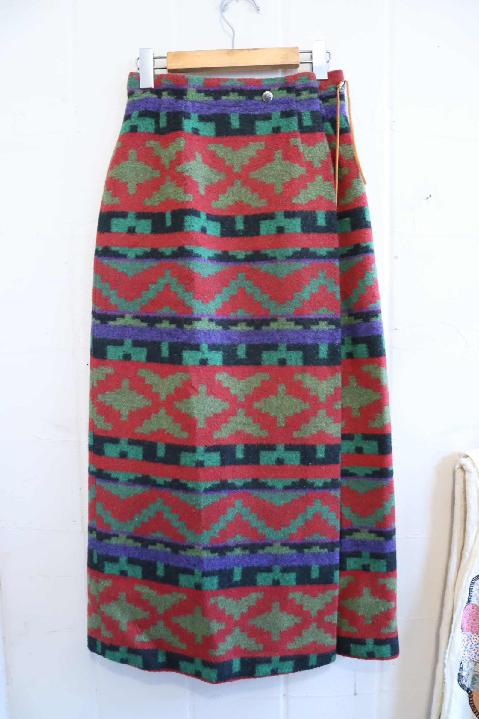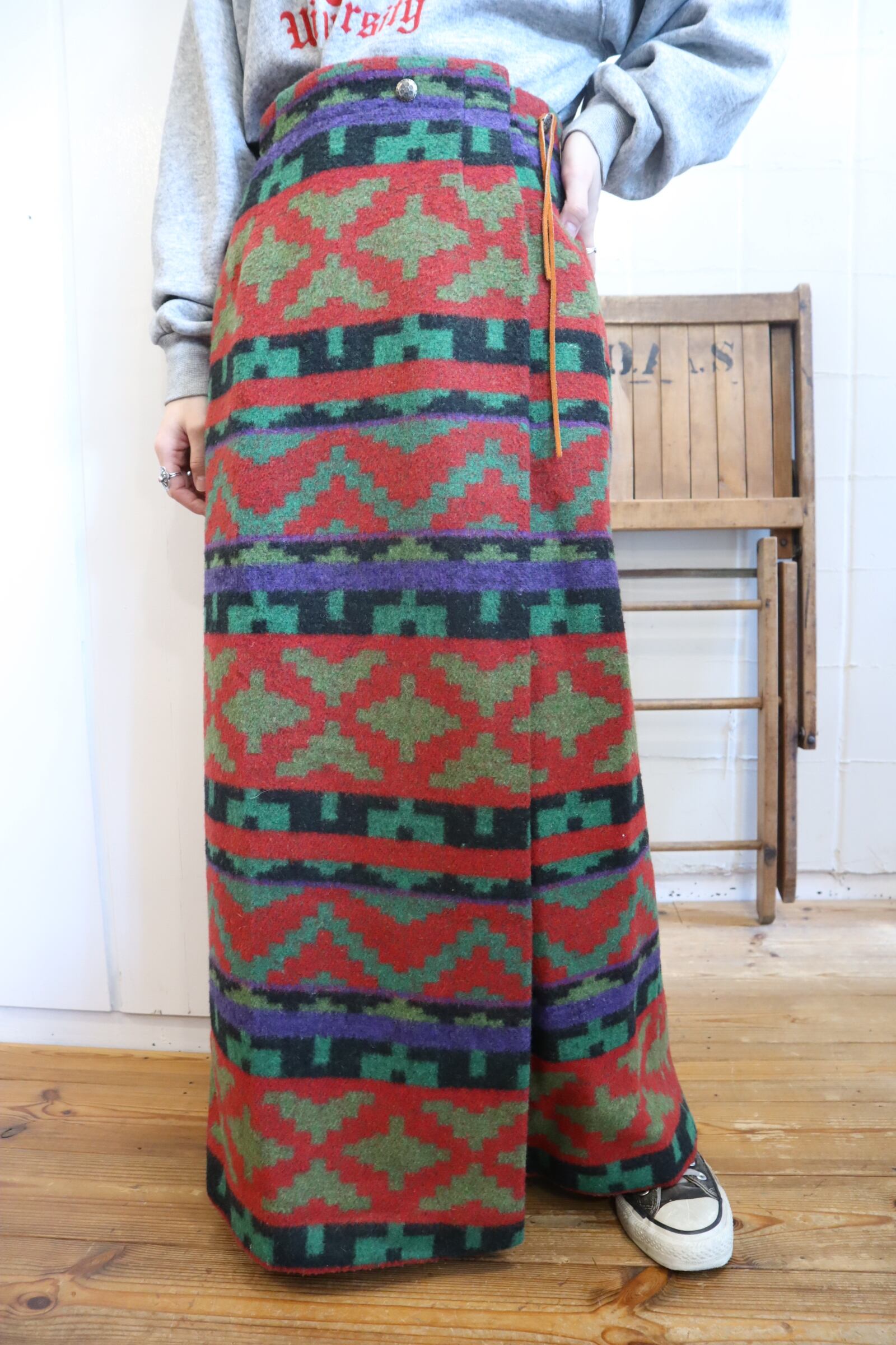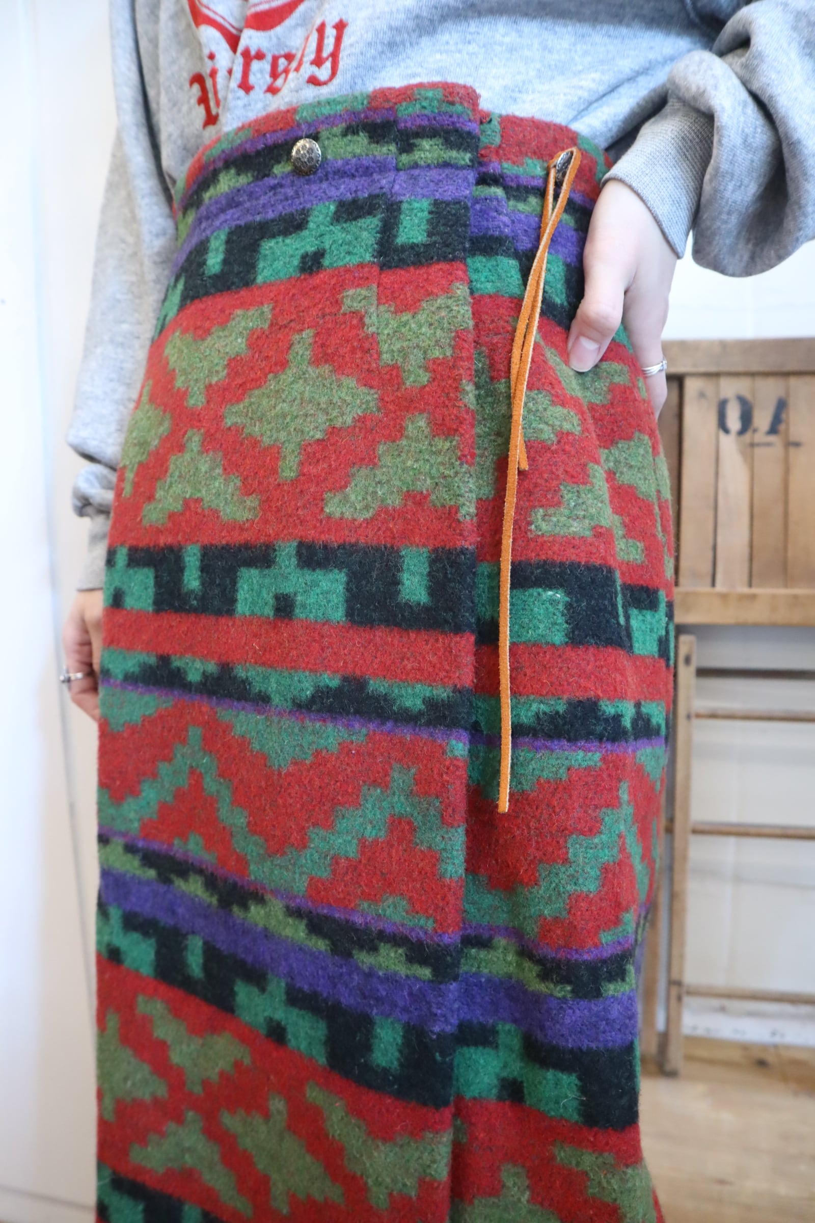 毛布をまとったような厚手の素材感が冬らしいラップスカート。