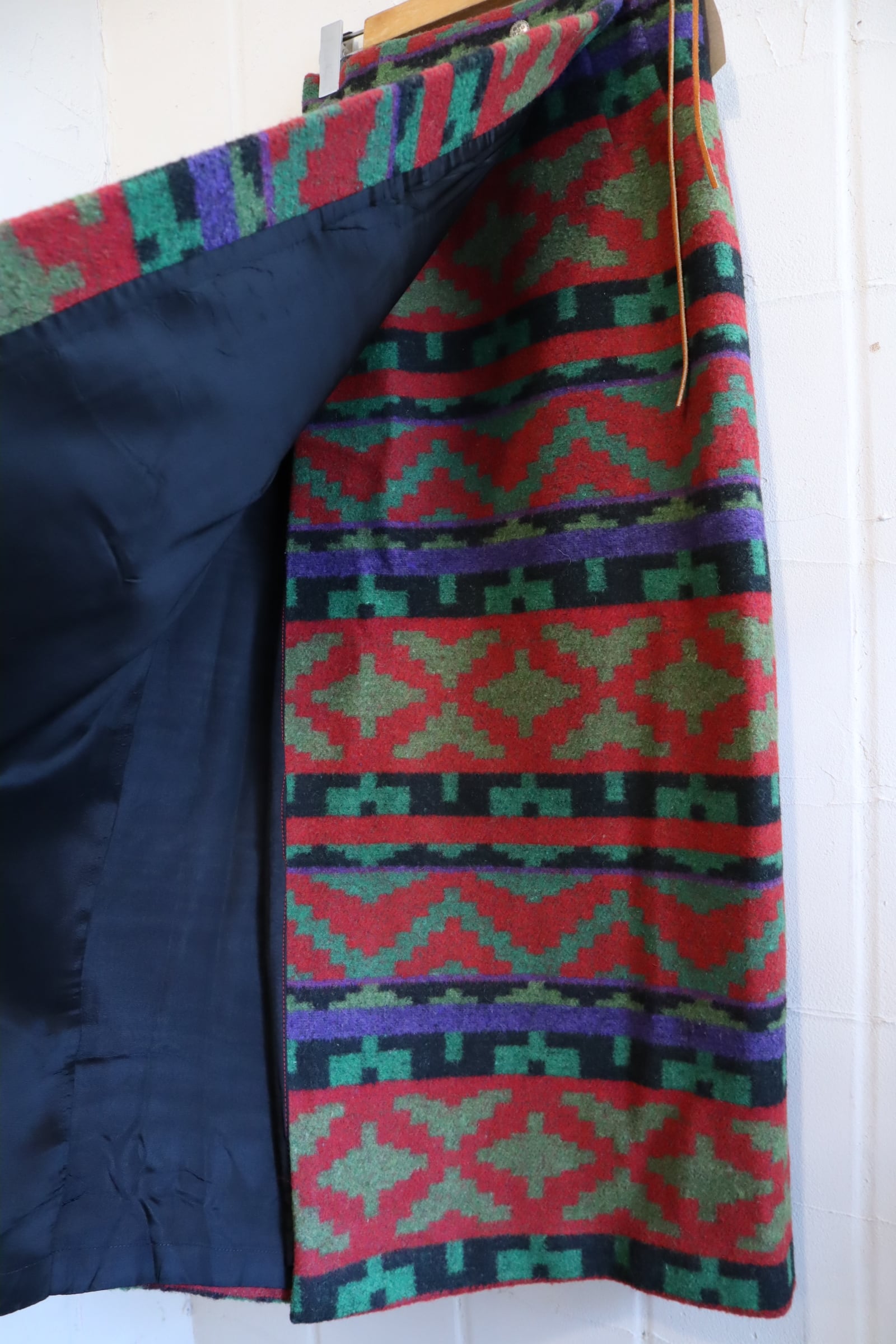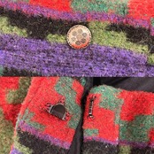 型押しされたシルバーのボタンやさりげなく付いたレザーの紐、飽きのこない大人なネイティブ柄など...可愛いポイントたくさんな一枚です。