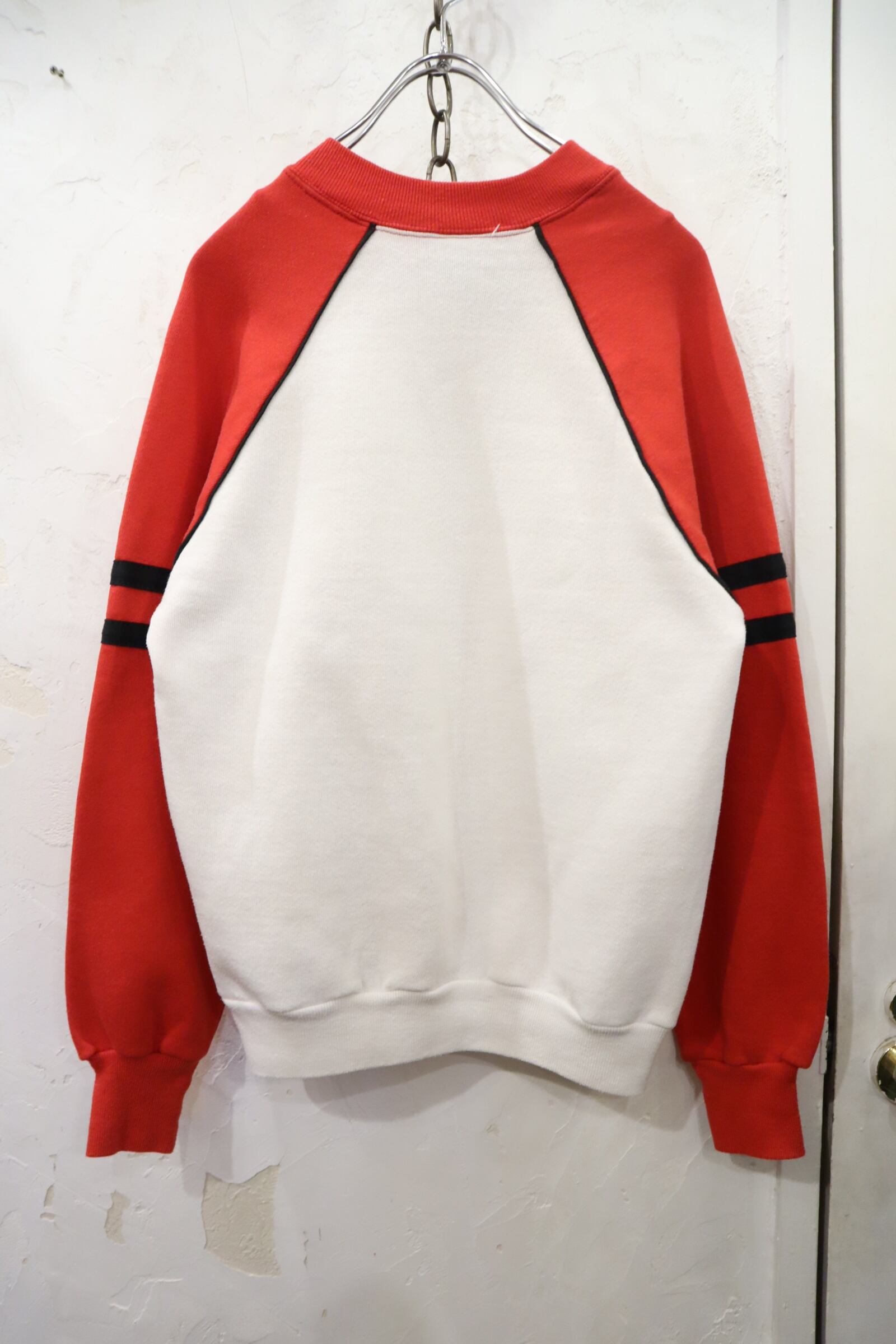 80s white×red×black character flocky print sweat [l-4565]