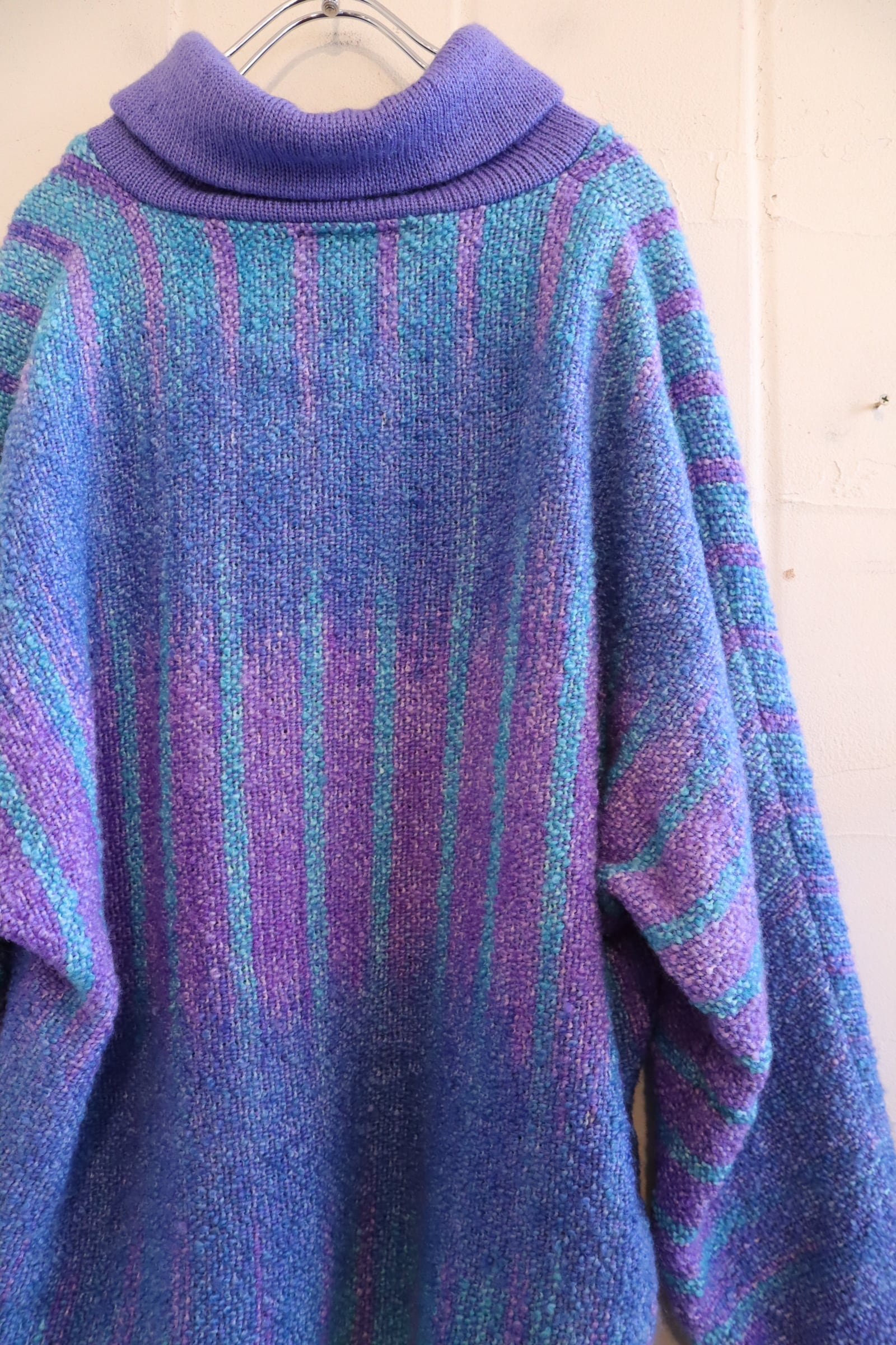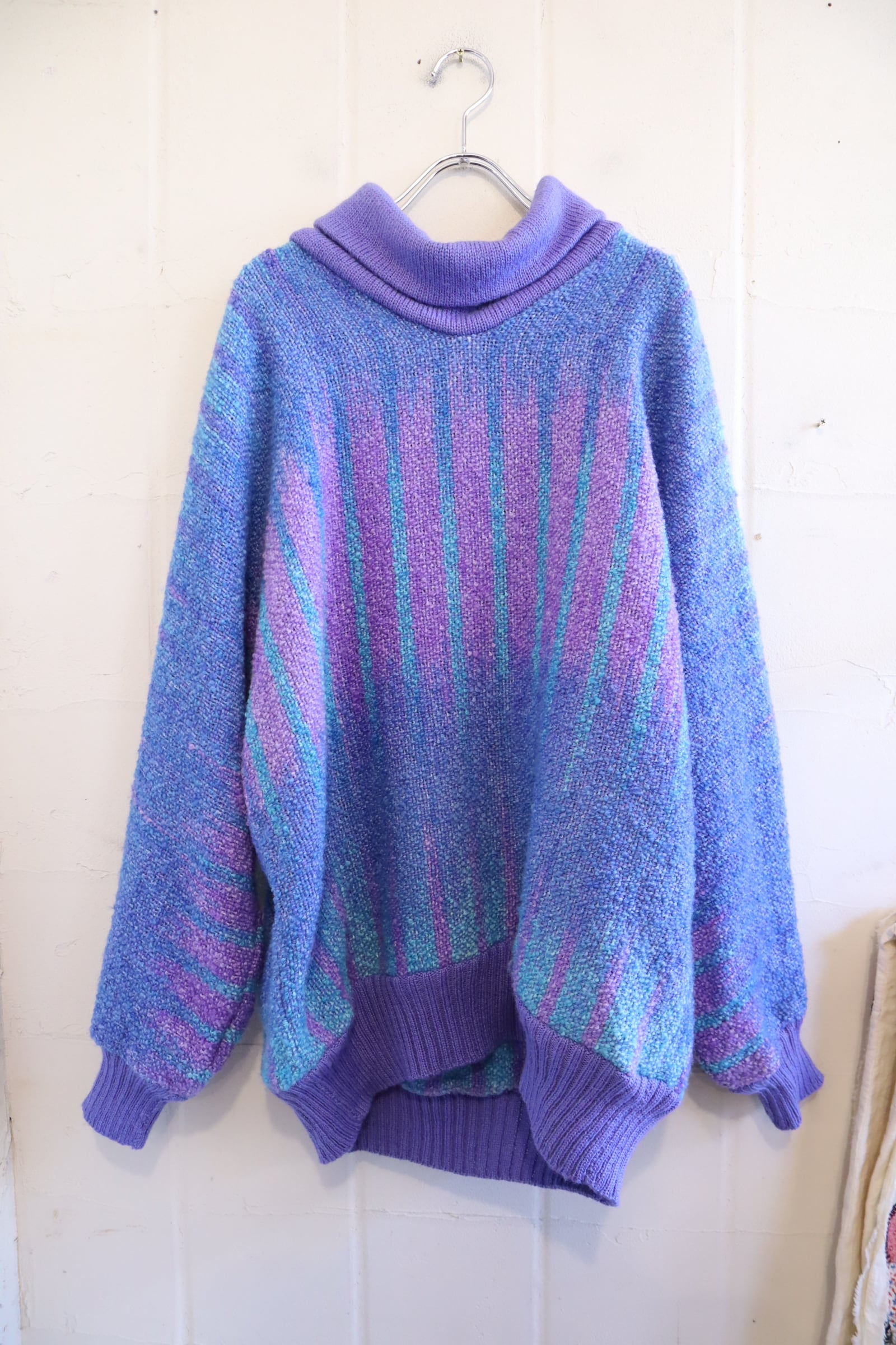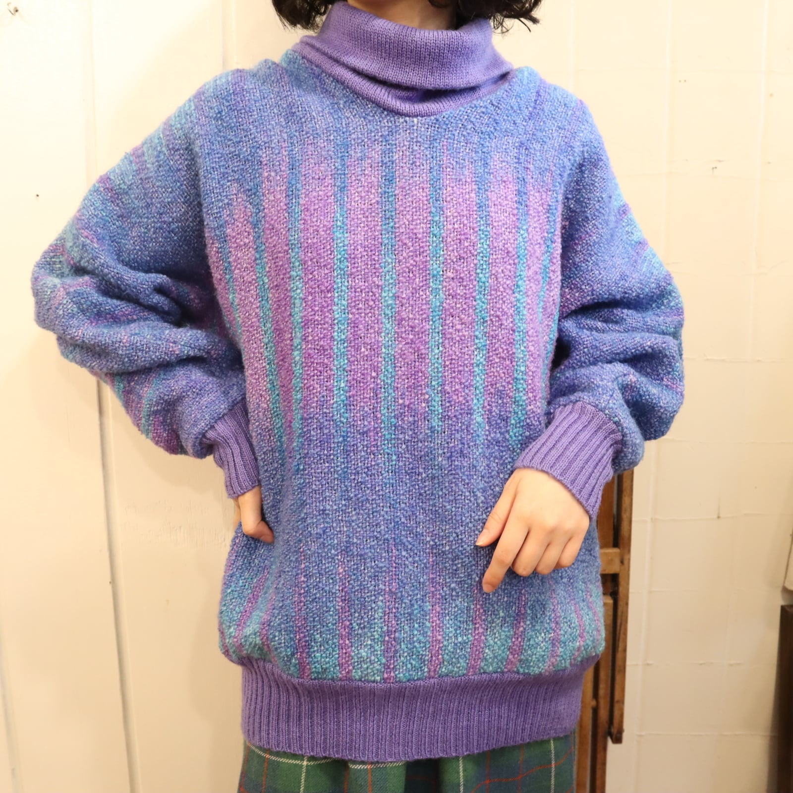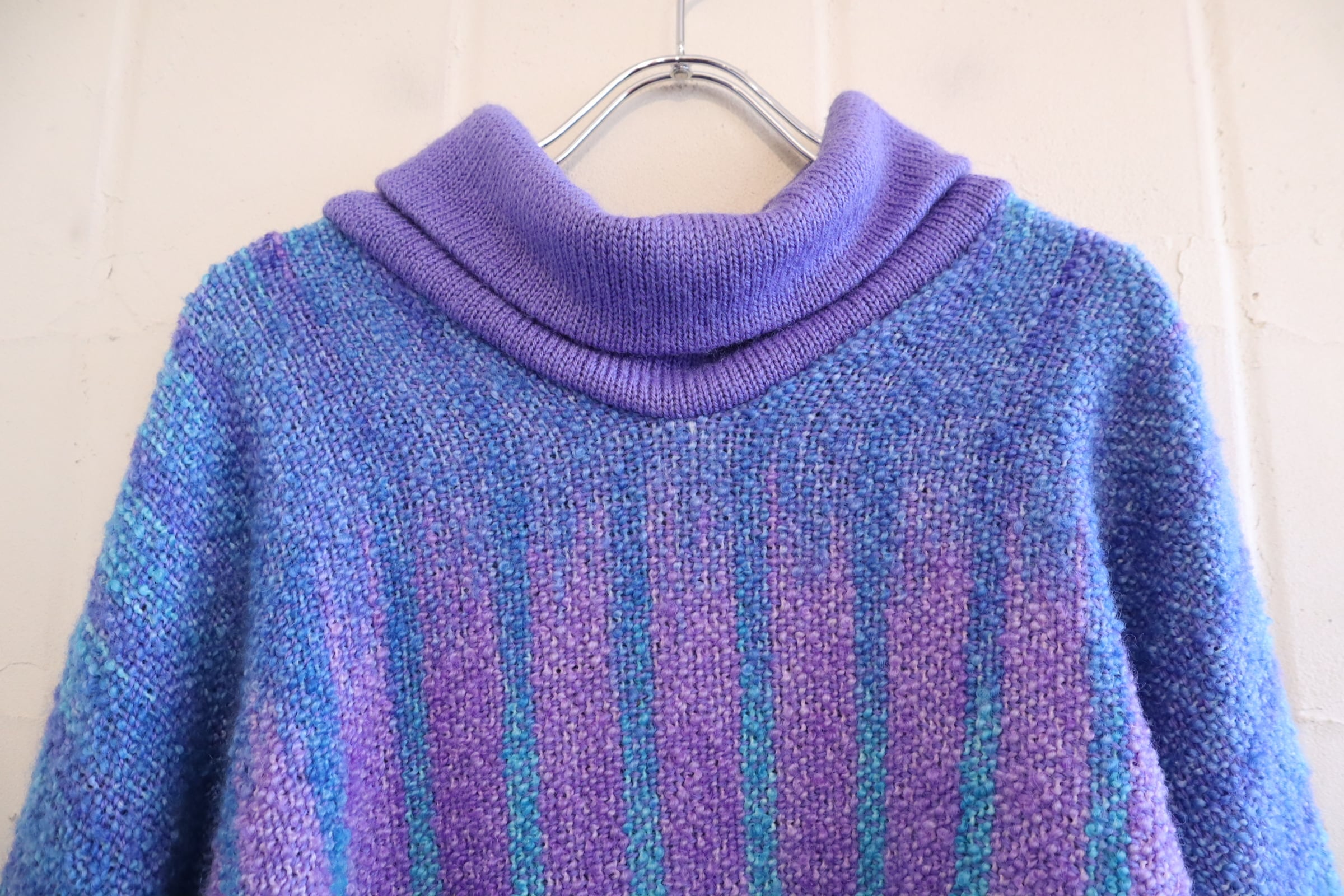 purple×blue off turtle neck wool knit pullover [l-4571]