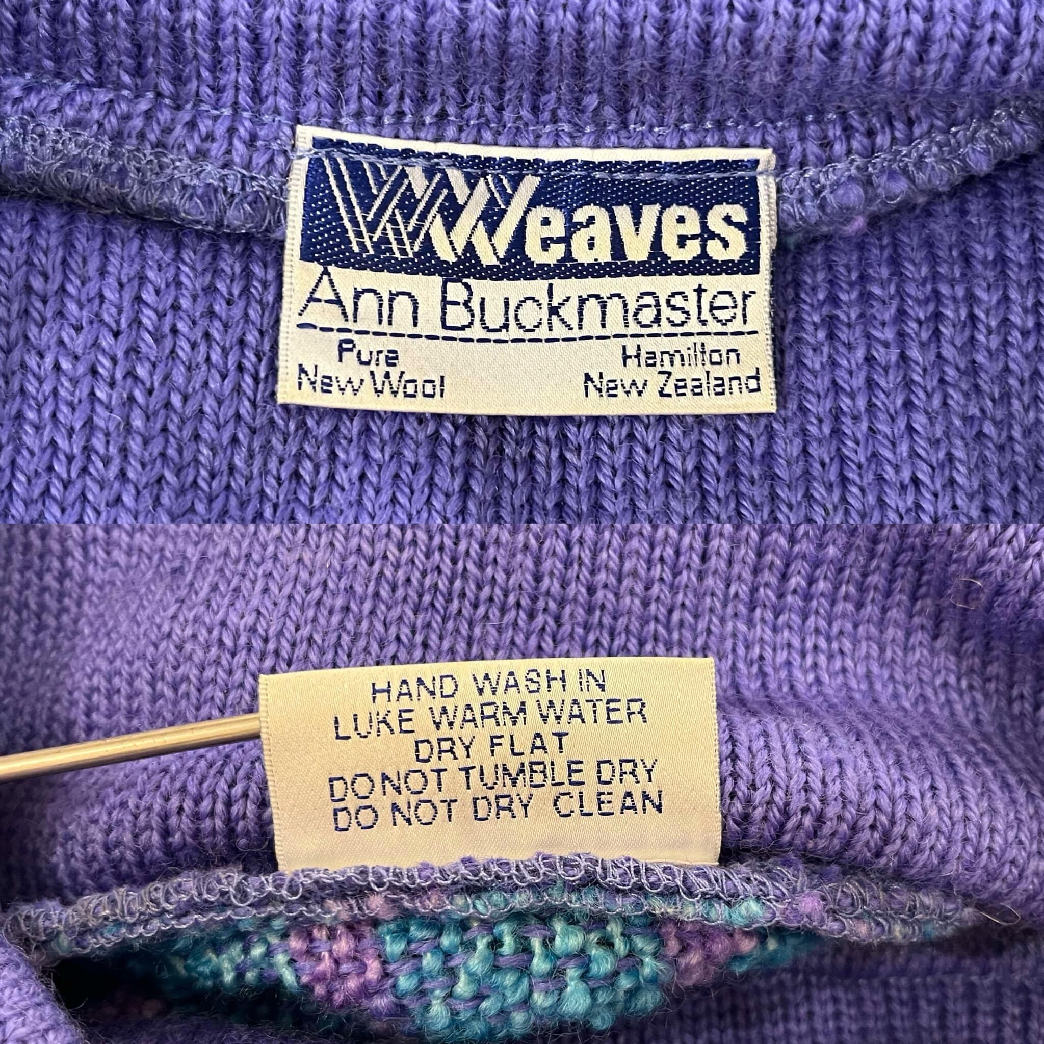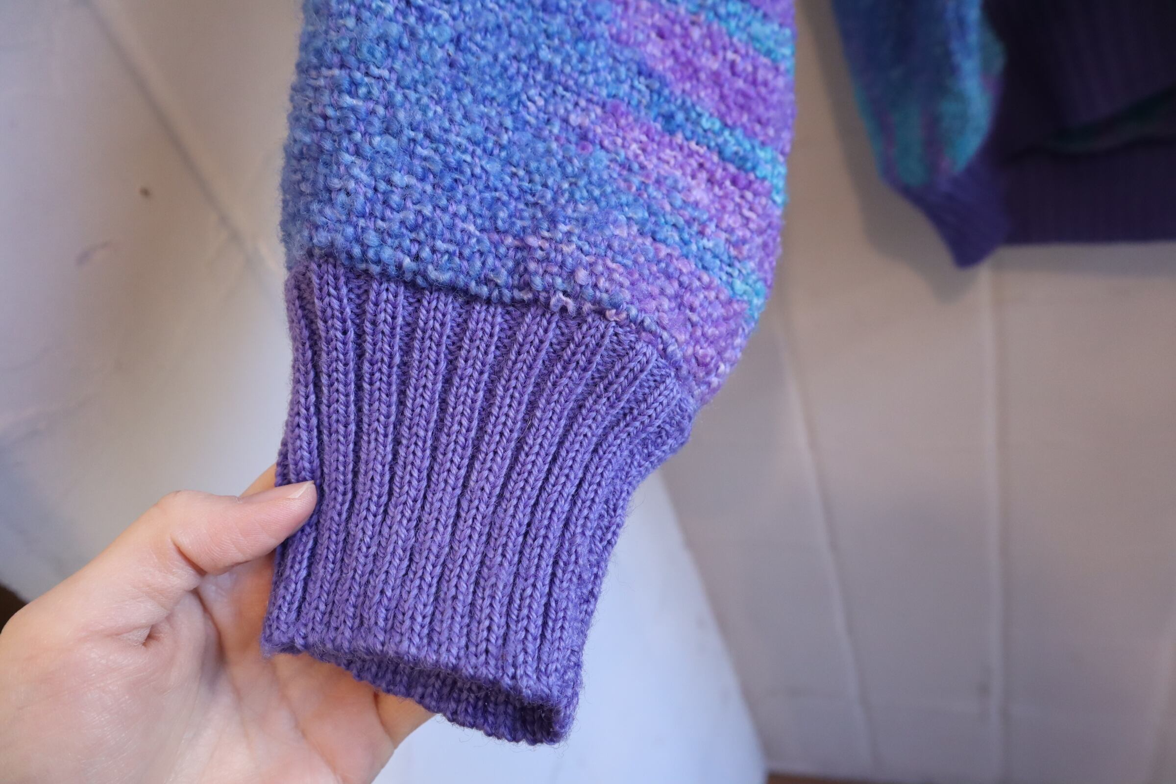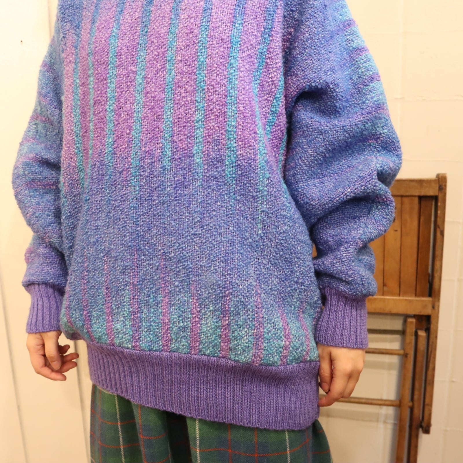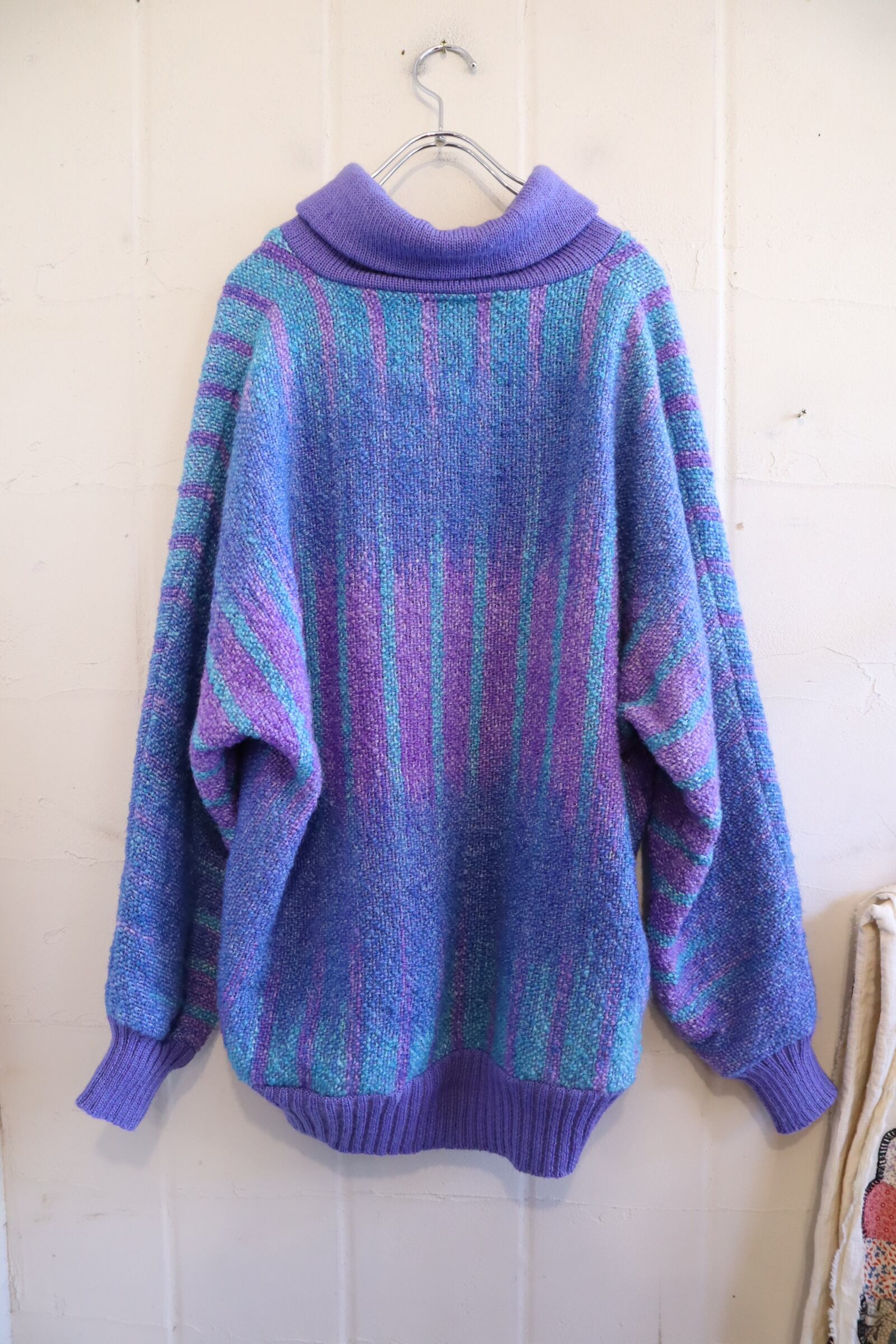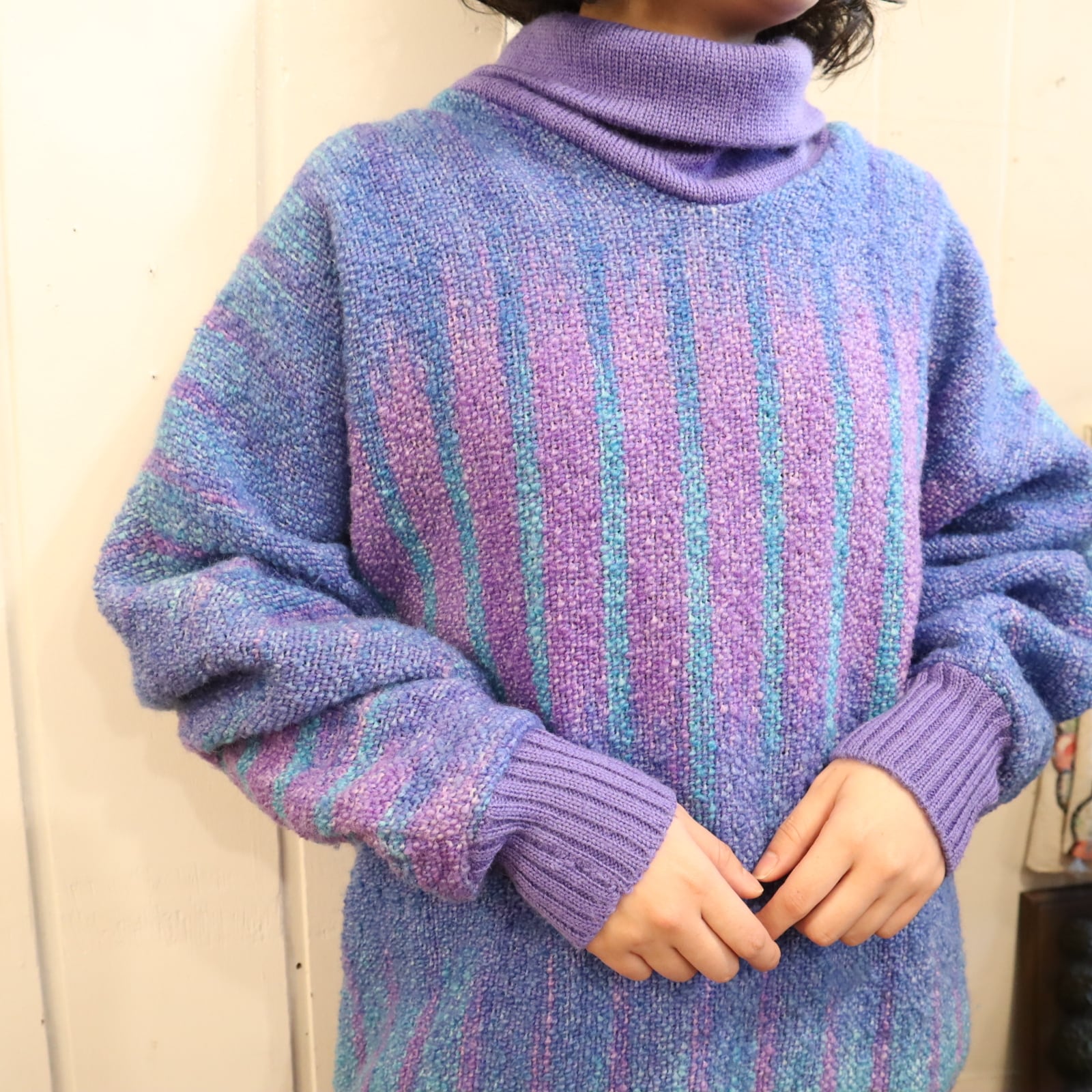 purple×blue off turtle neck wool knit pullover [l-4571]