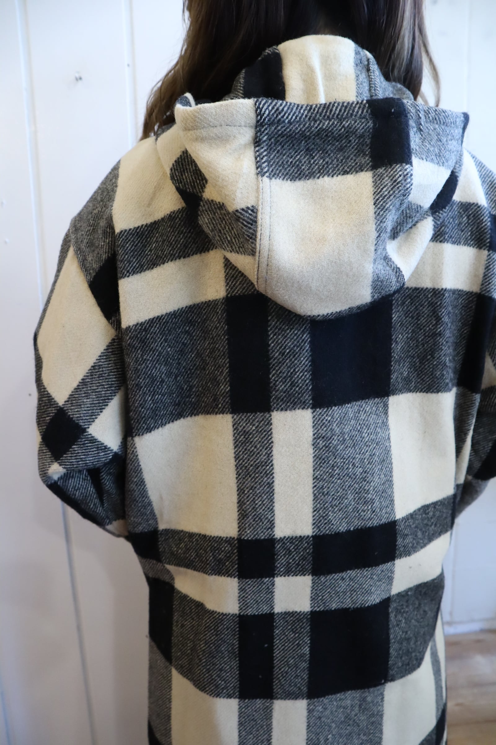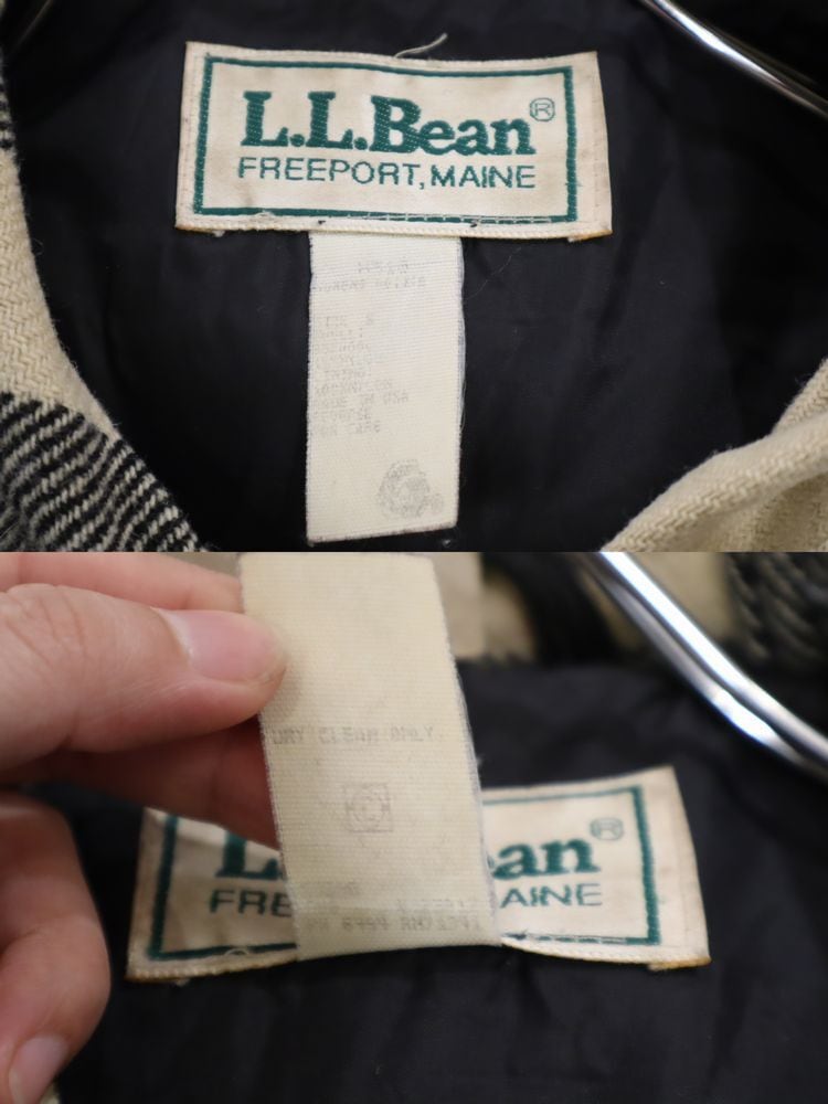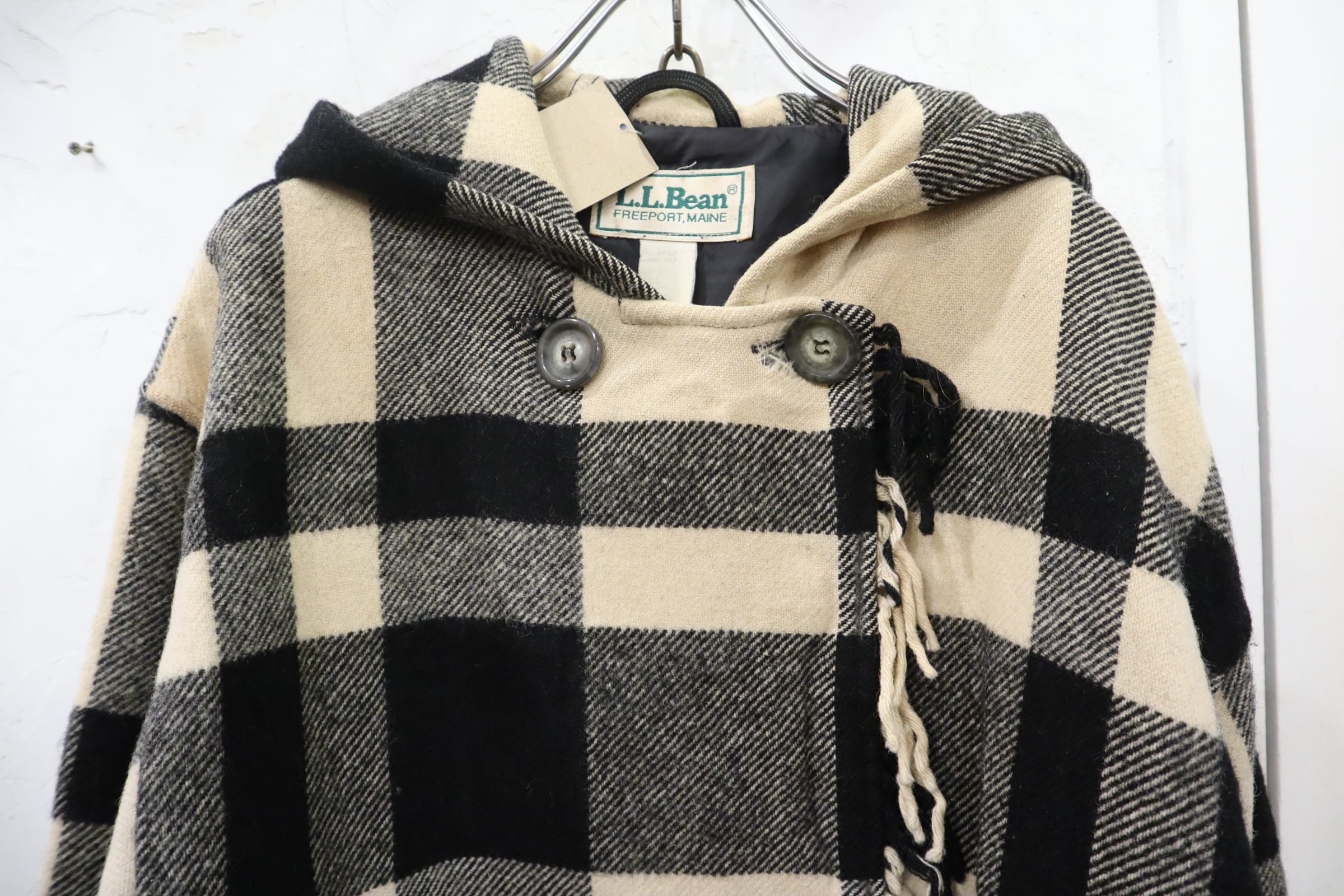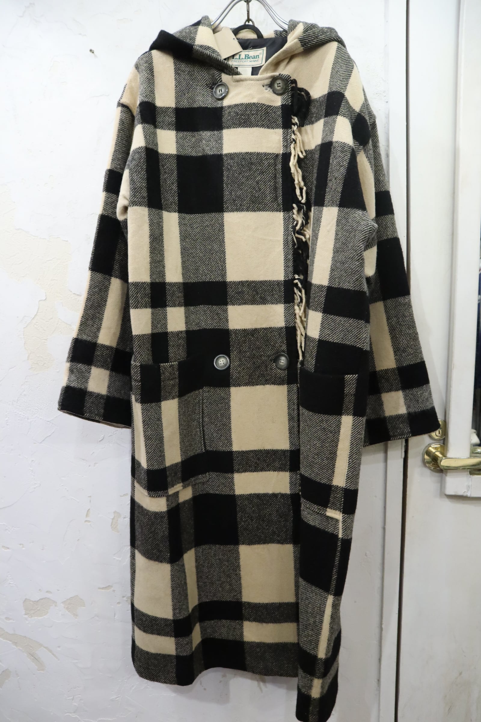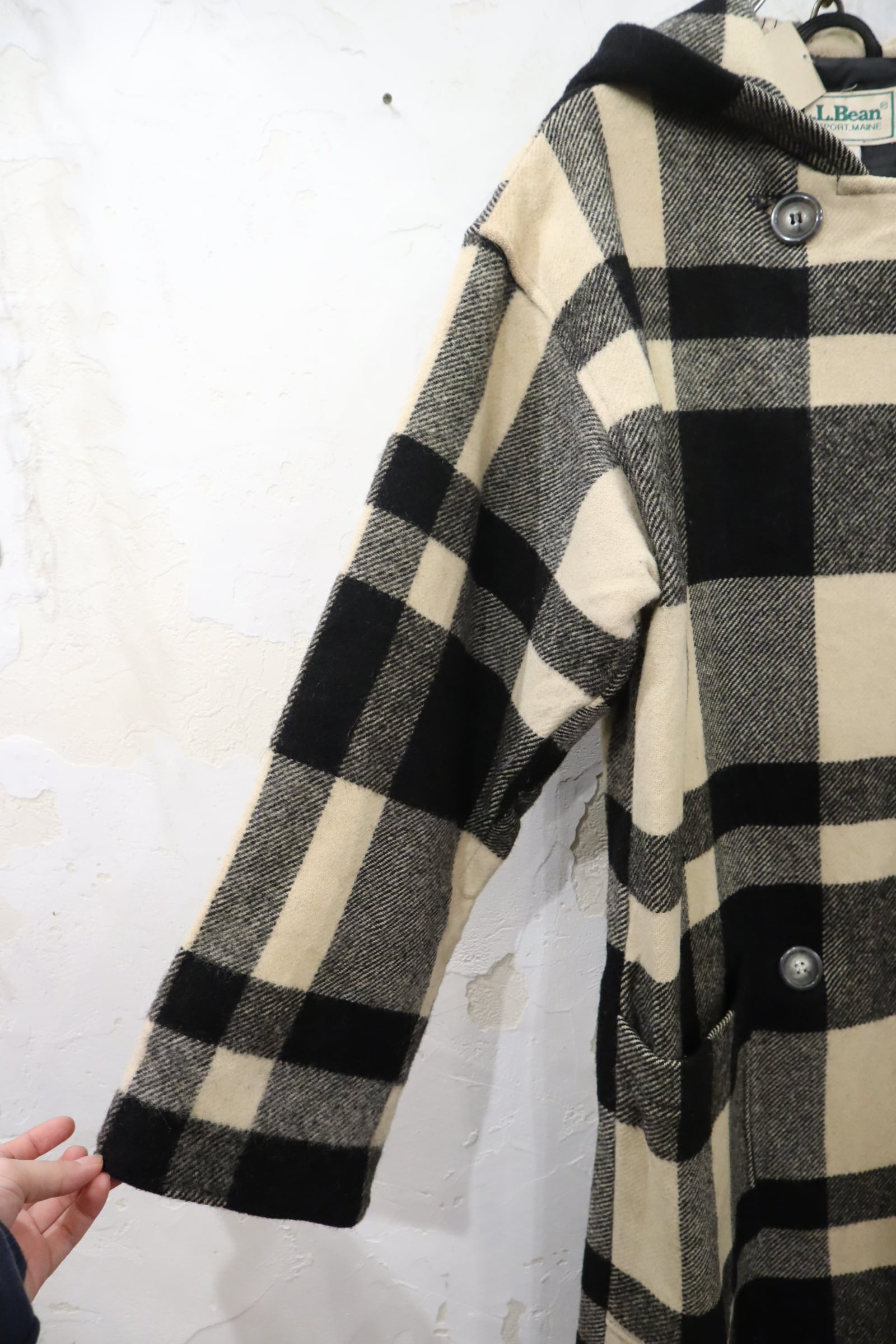 L.L.Bean offwhite×black plaid wool coat [k-4576]