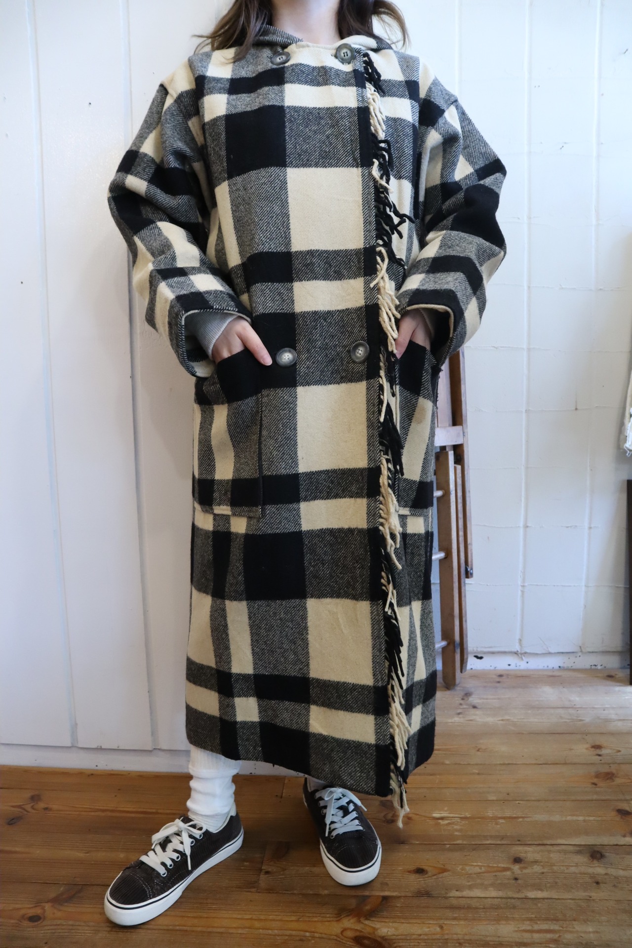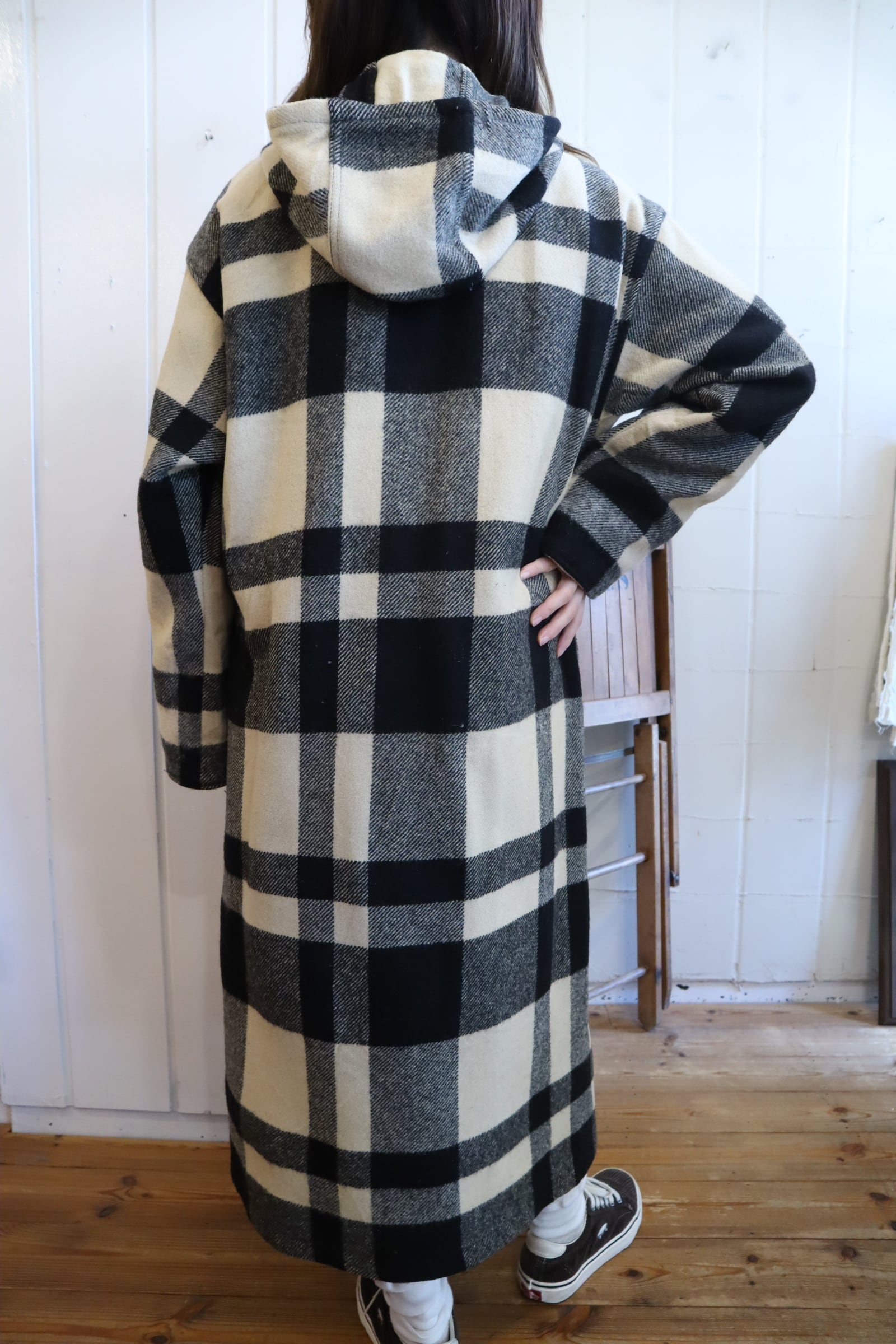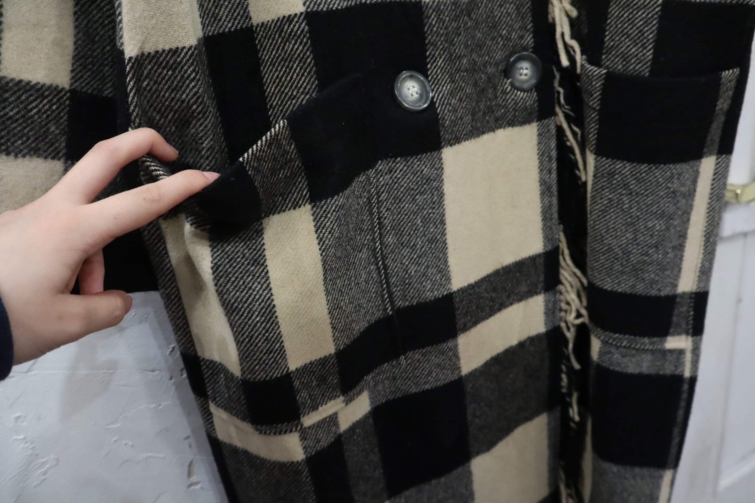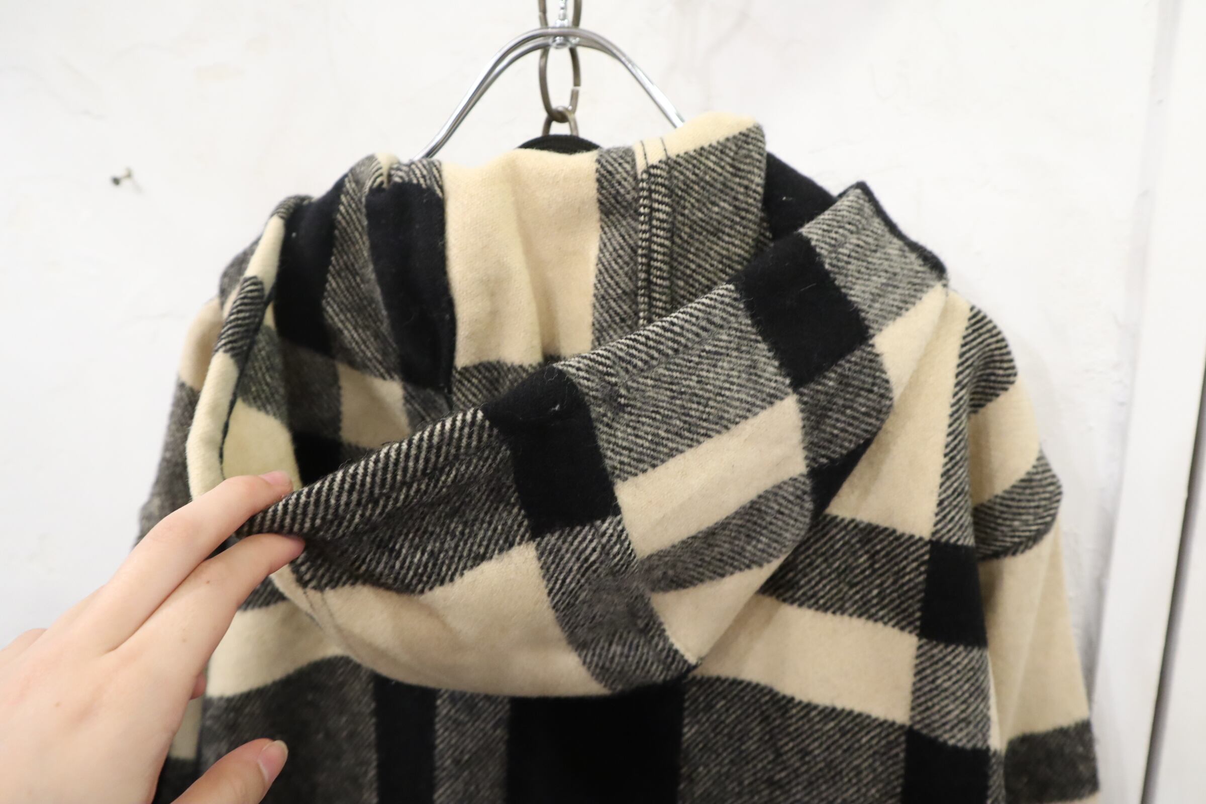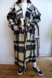 L.L.Bean offwhite×black plaid wool coat [k-4576]