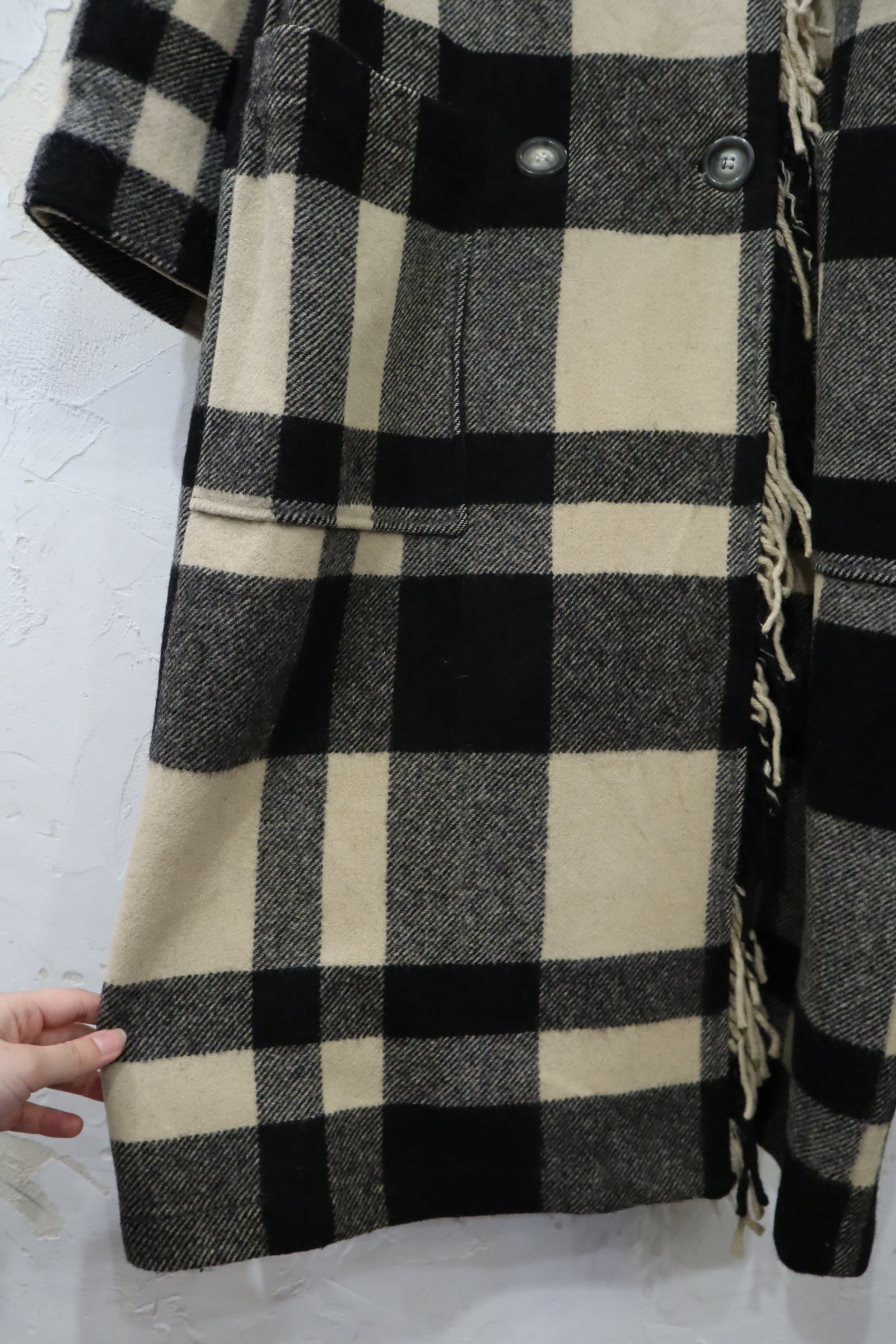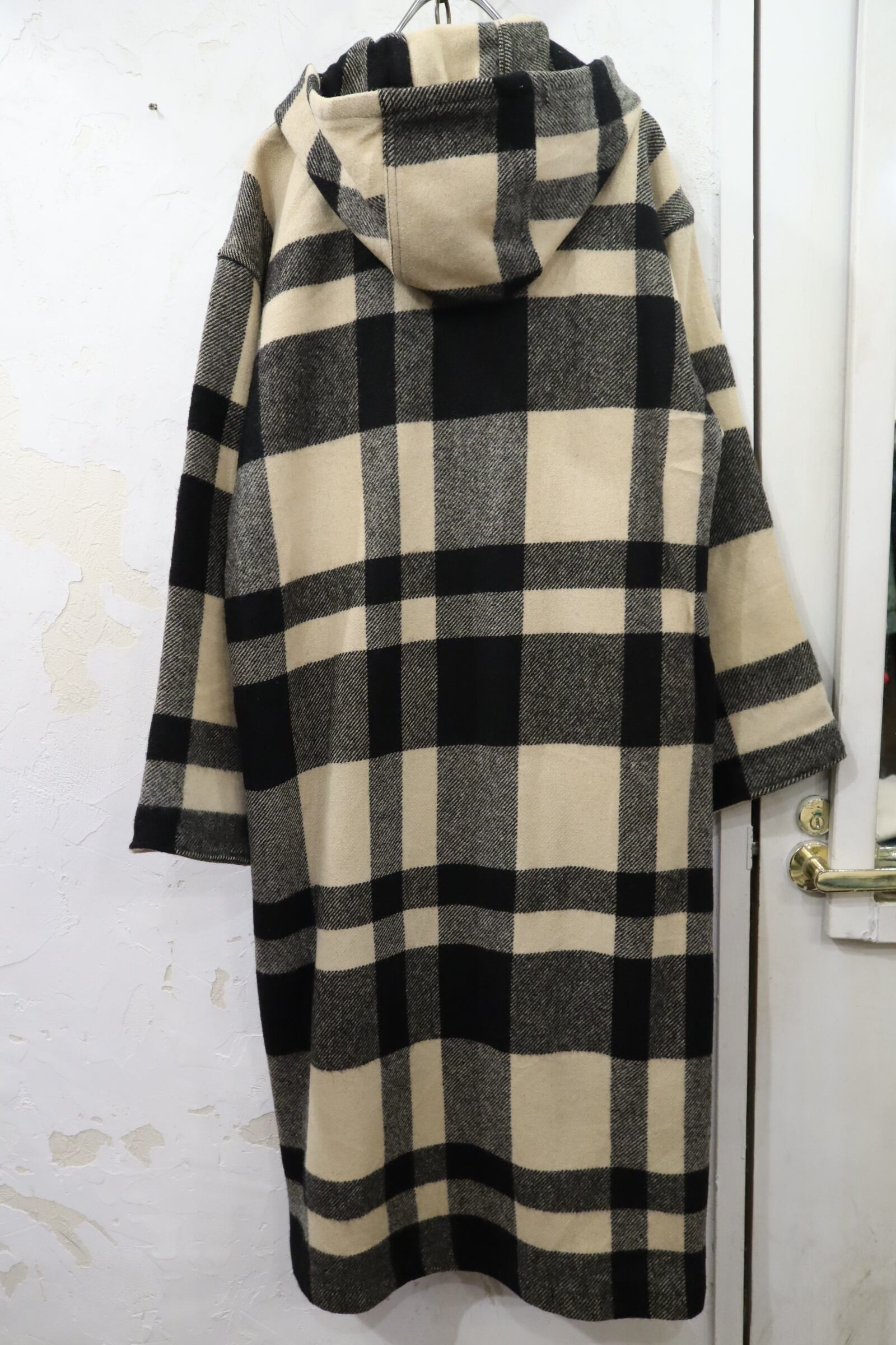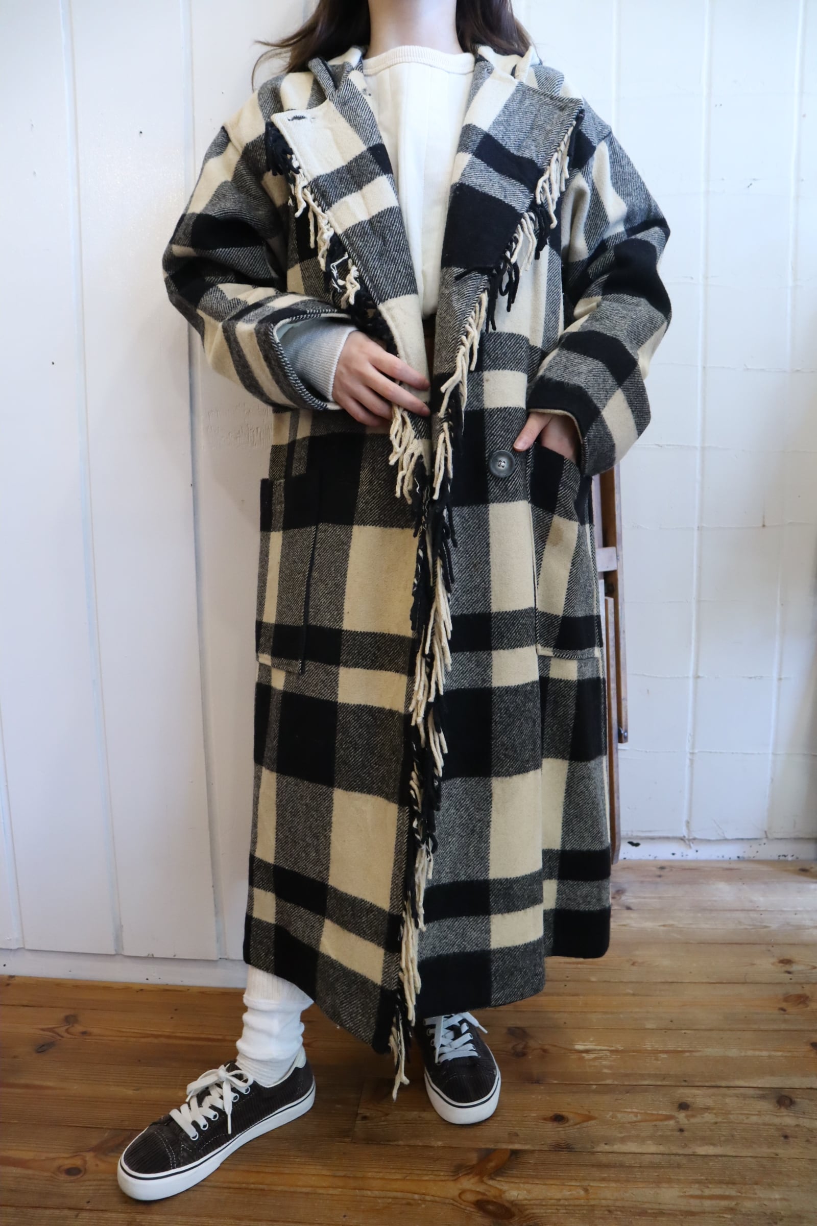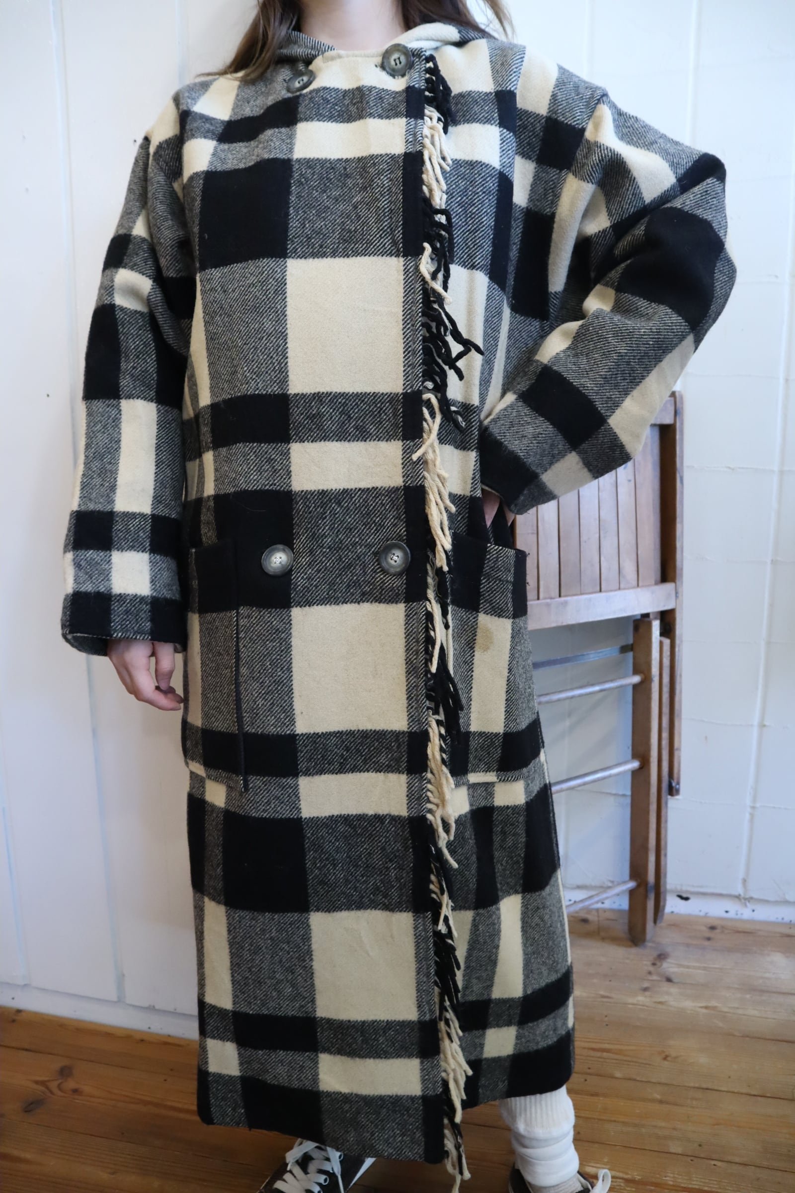 L.L.Bean offwhite×black plaid wool coat [k-4576]