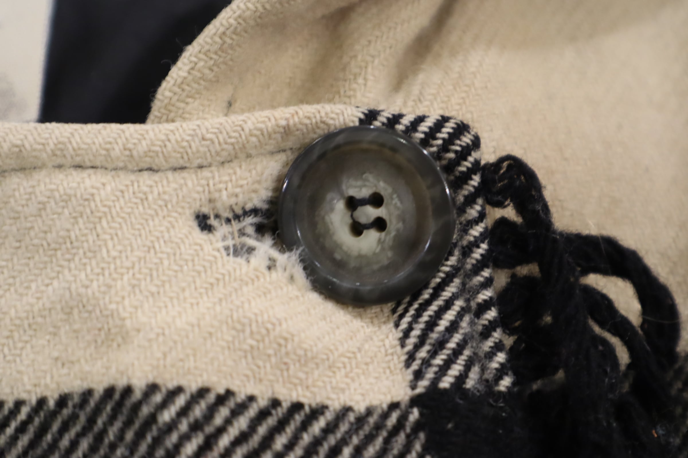 いくつかシミ、ボタンホールにややホツレがございますが、古着の味として着て頂けるかと思います。