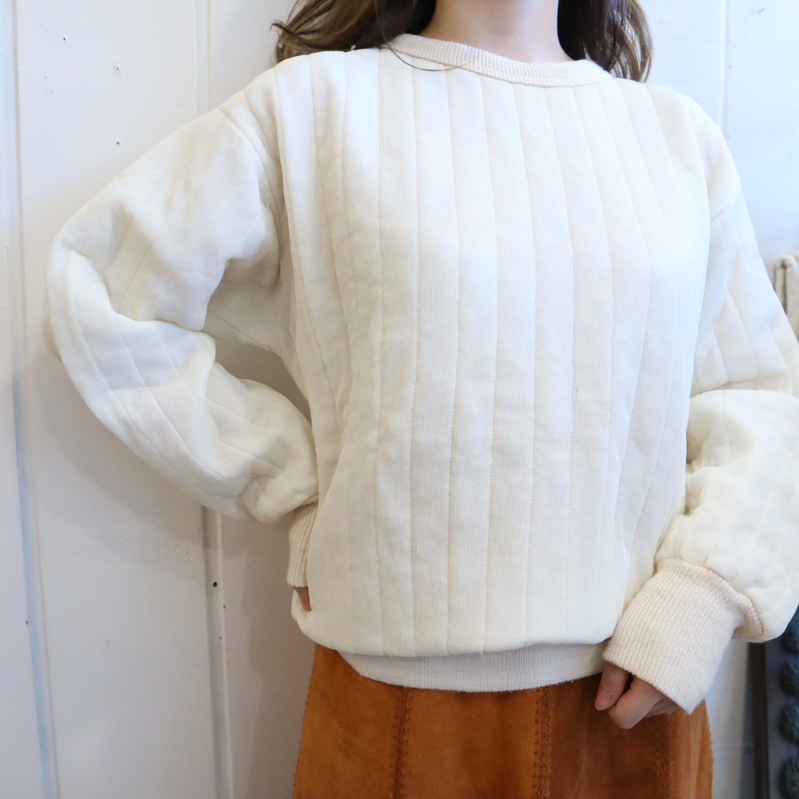 長めのリブが可愛いキルティングサーマルトップス。
