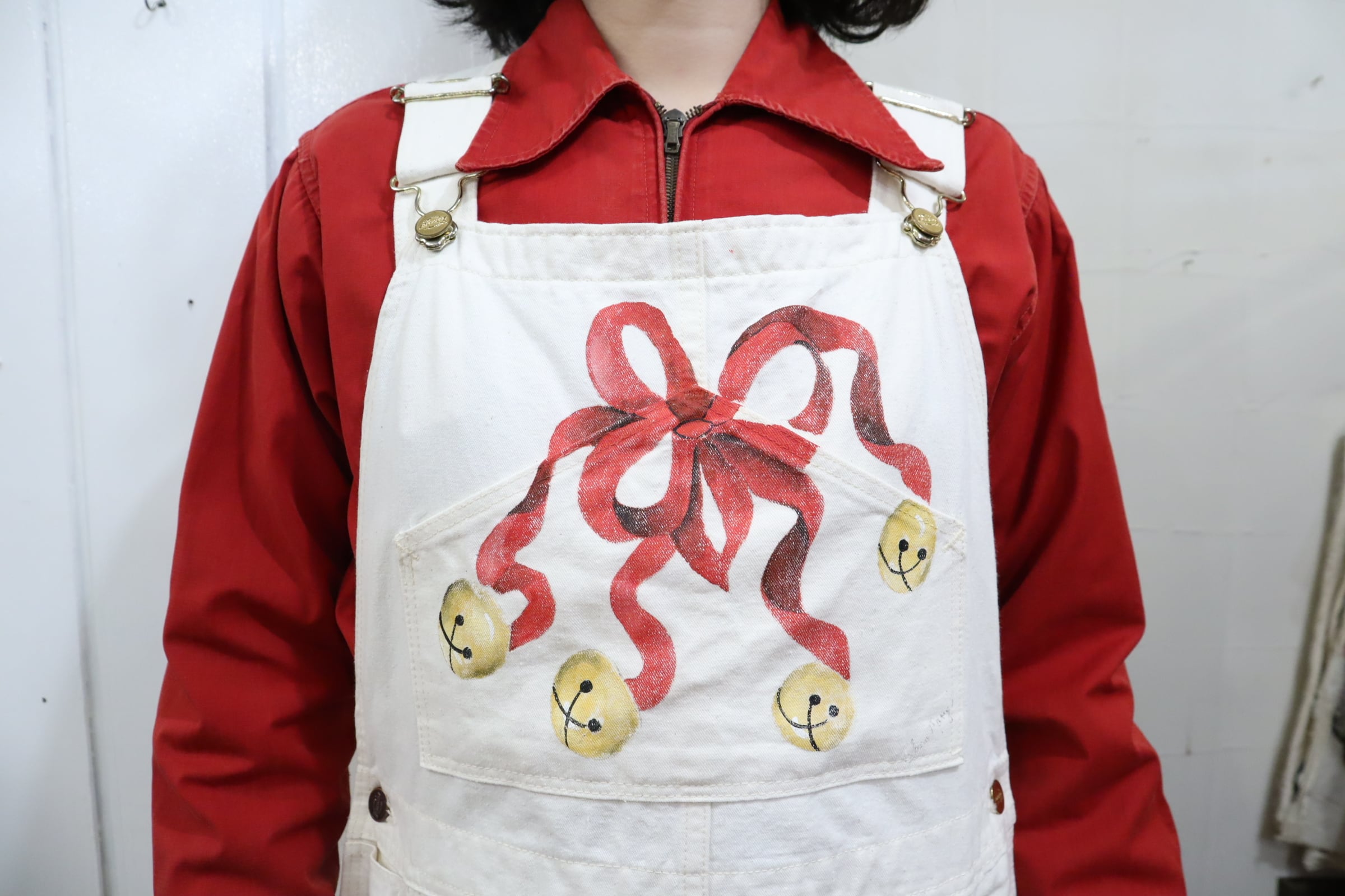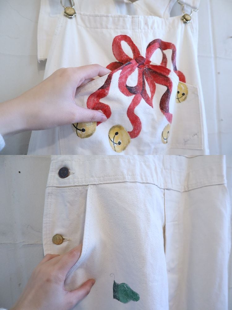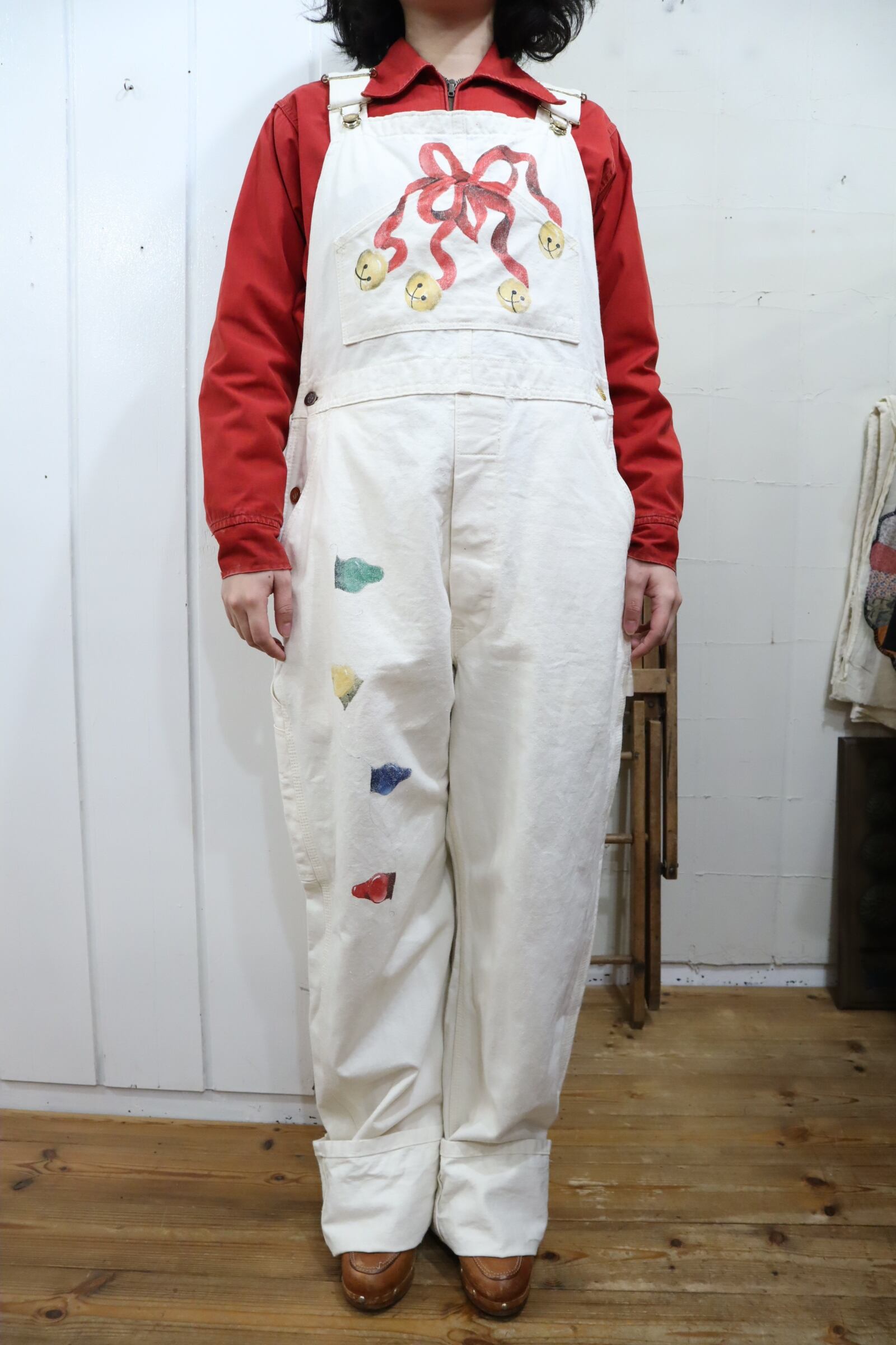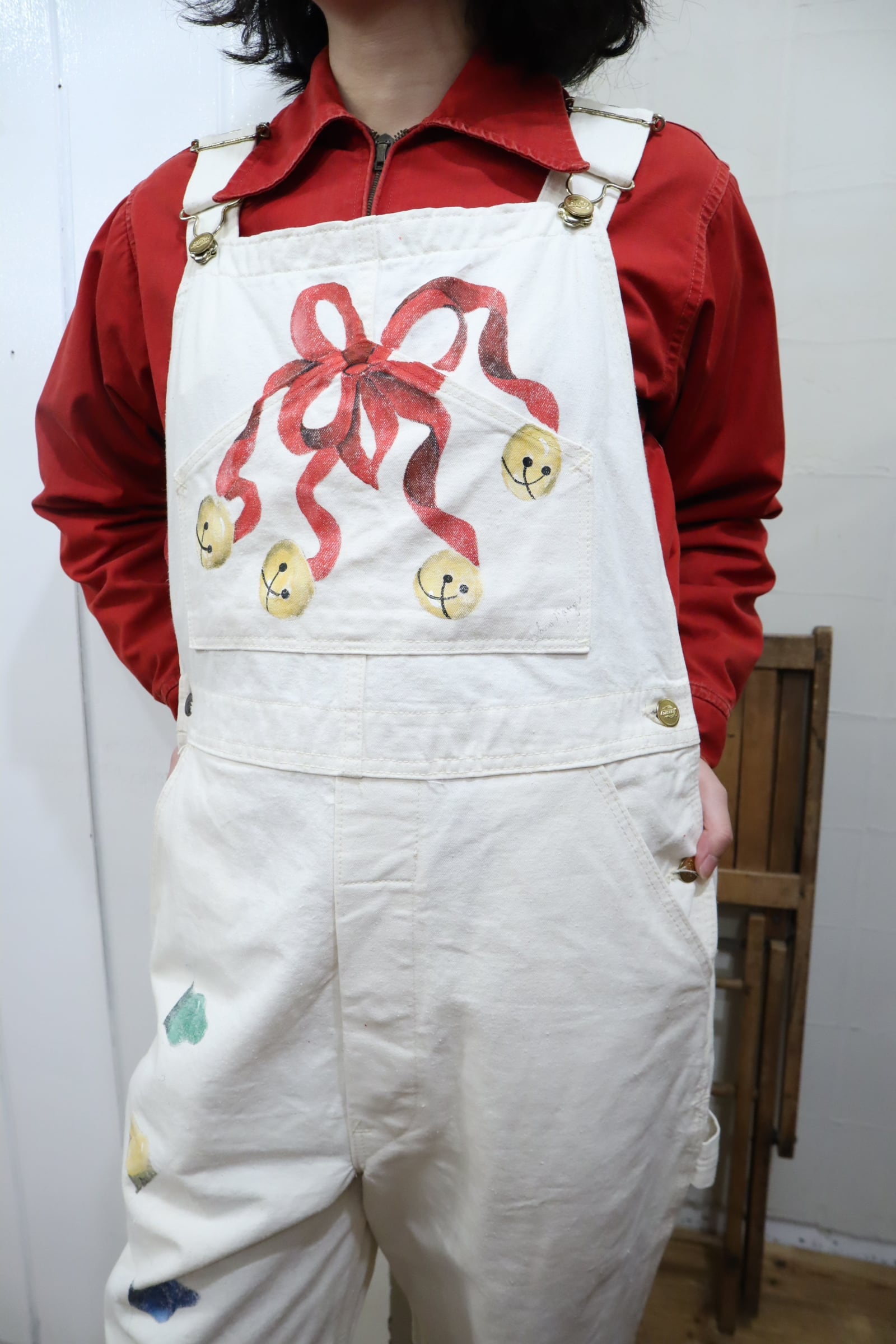 ワークウェアにクリスマスペイントと、ちぐはぐ感が可愛いオーバーオール。