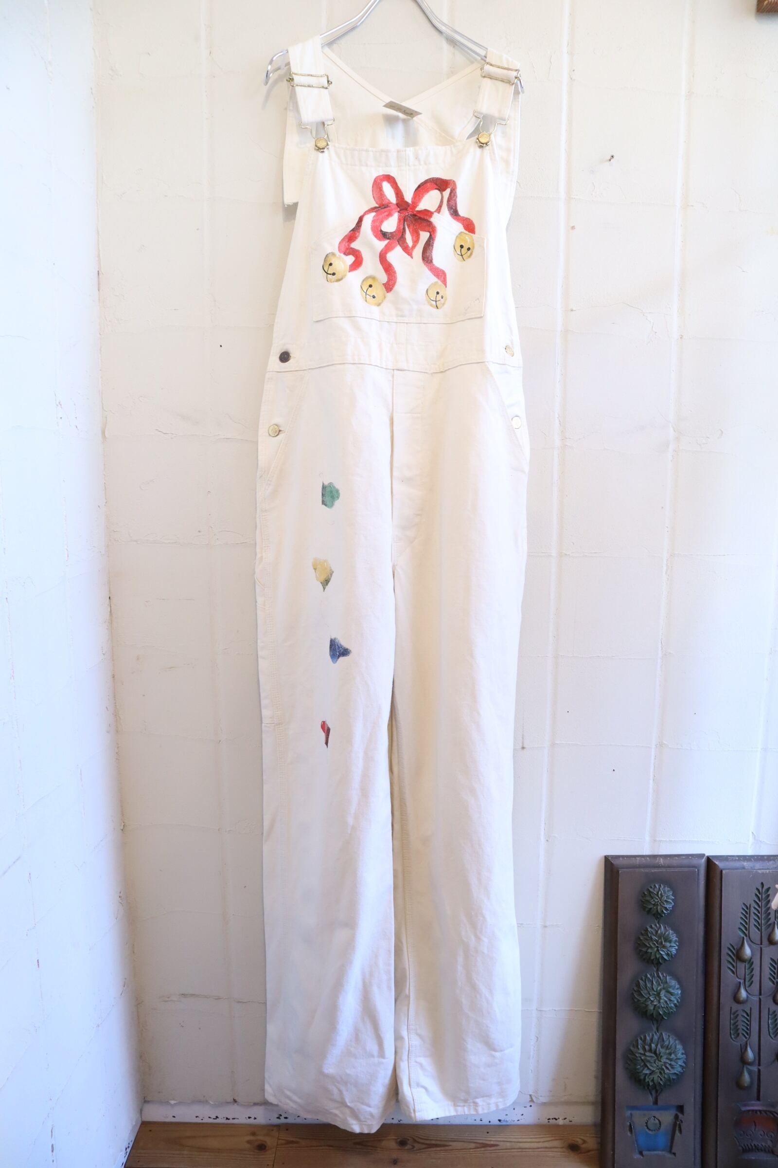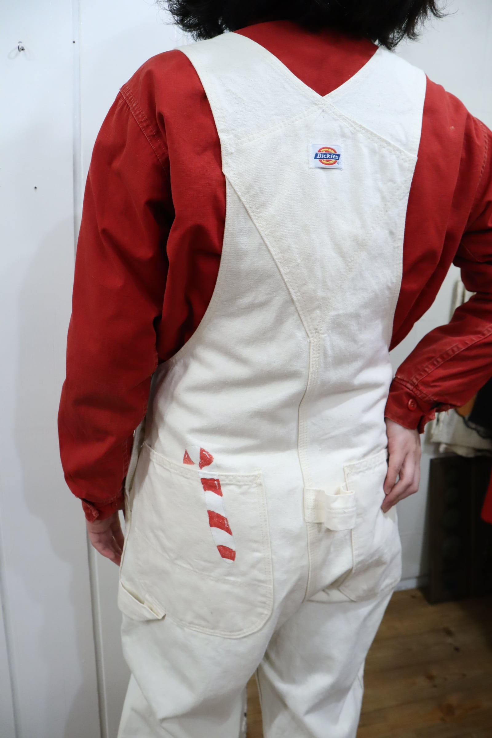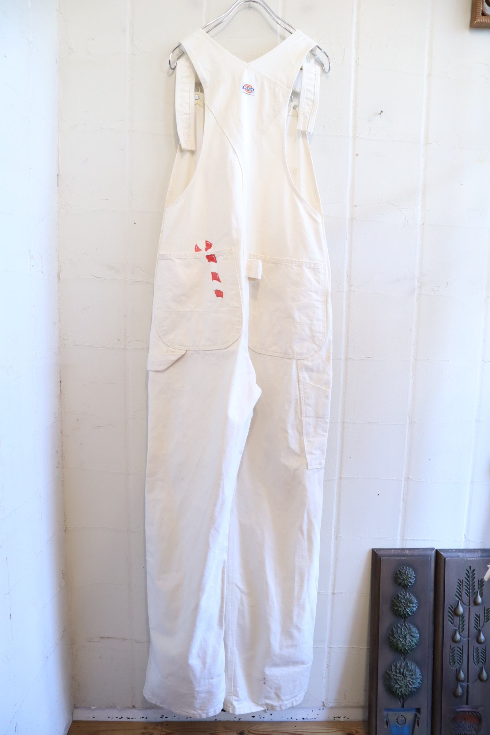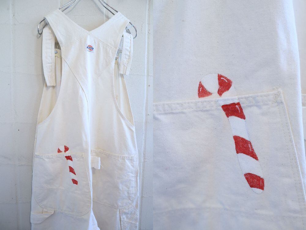 90s-00s Dickies offwhite×red Christmas paint overall [l-4580]