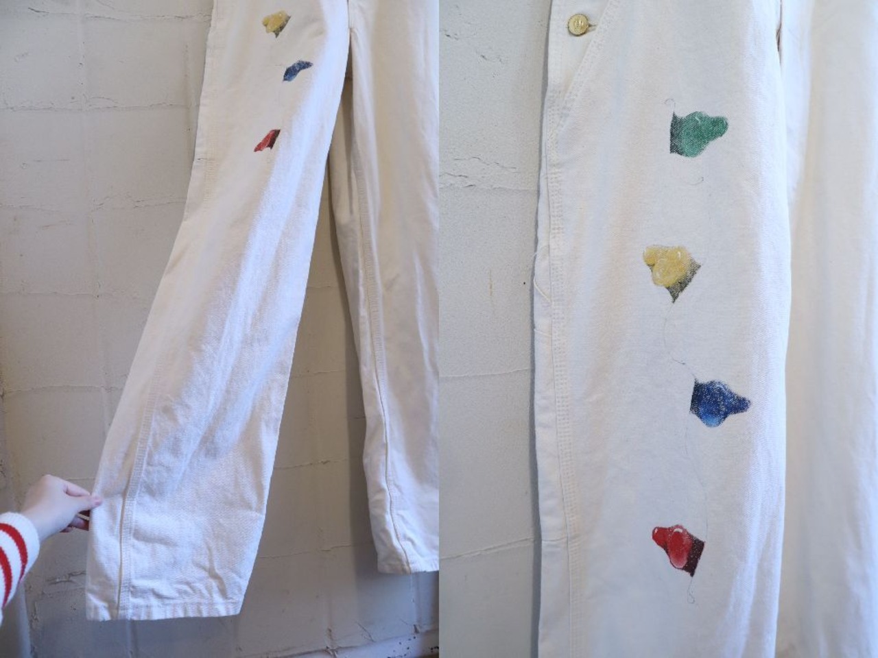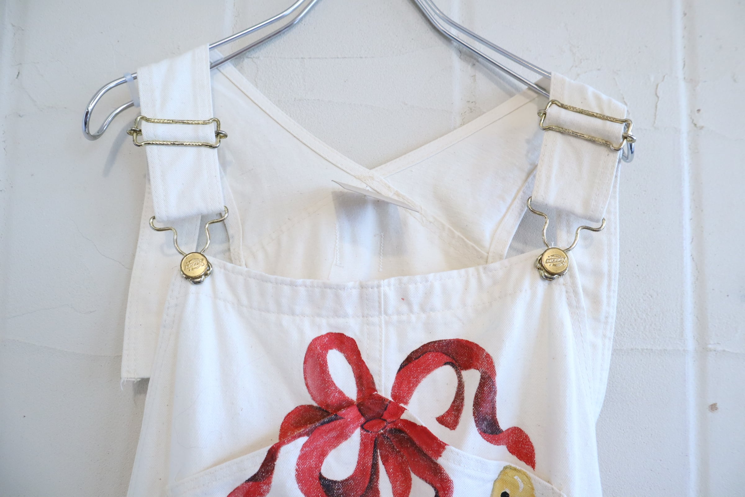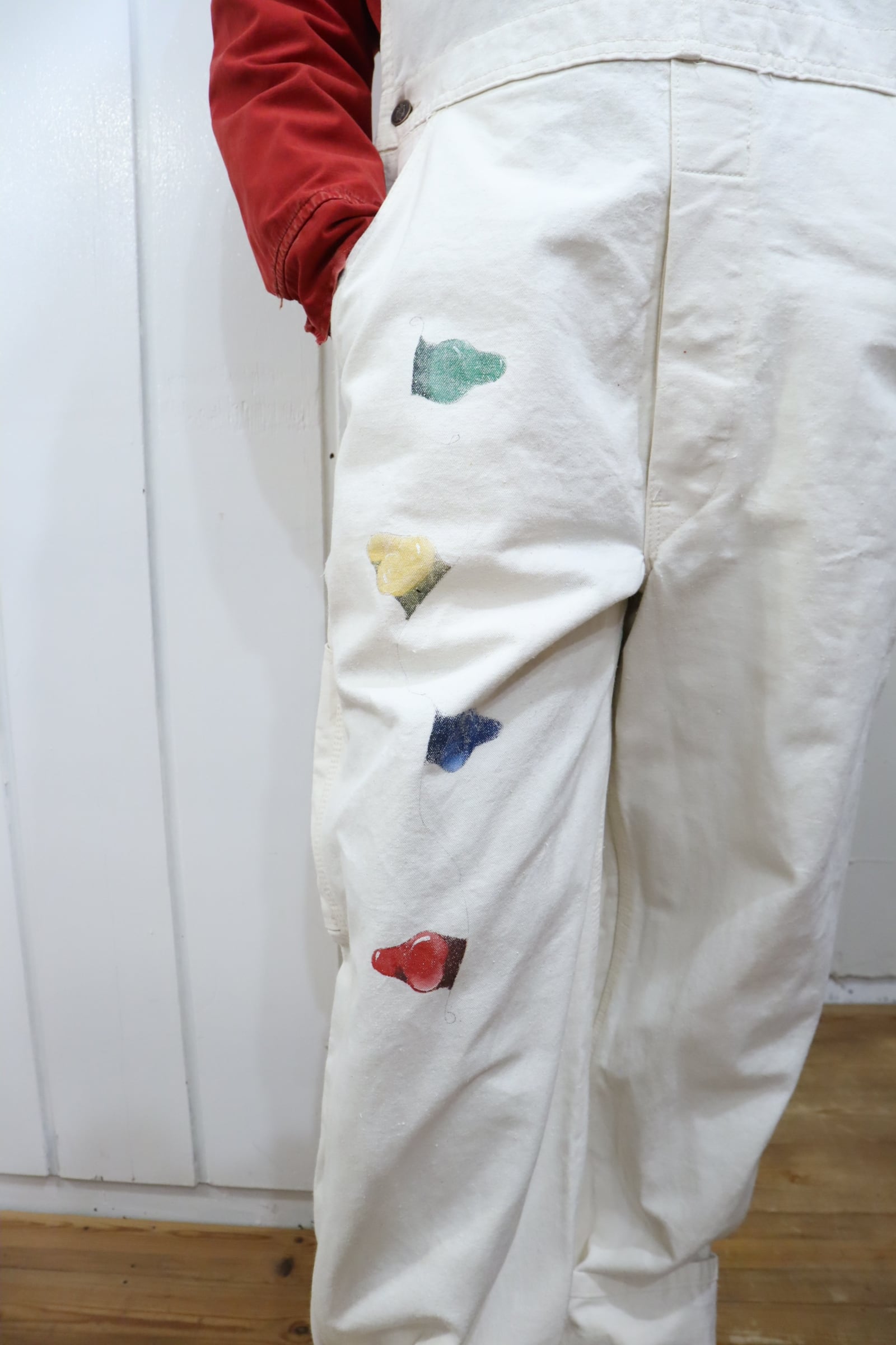 90s-00s Dickies offwhite×red Christmas paint overall [l-4580]