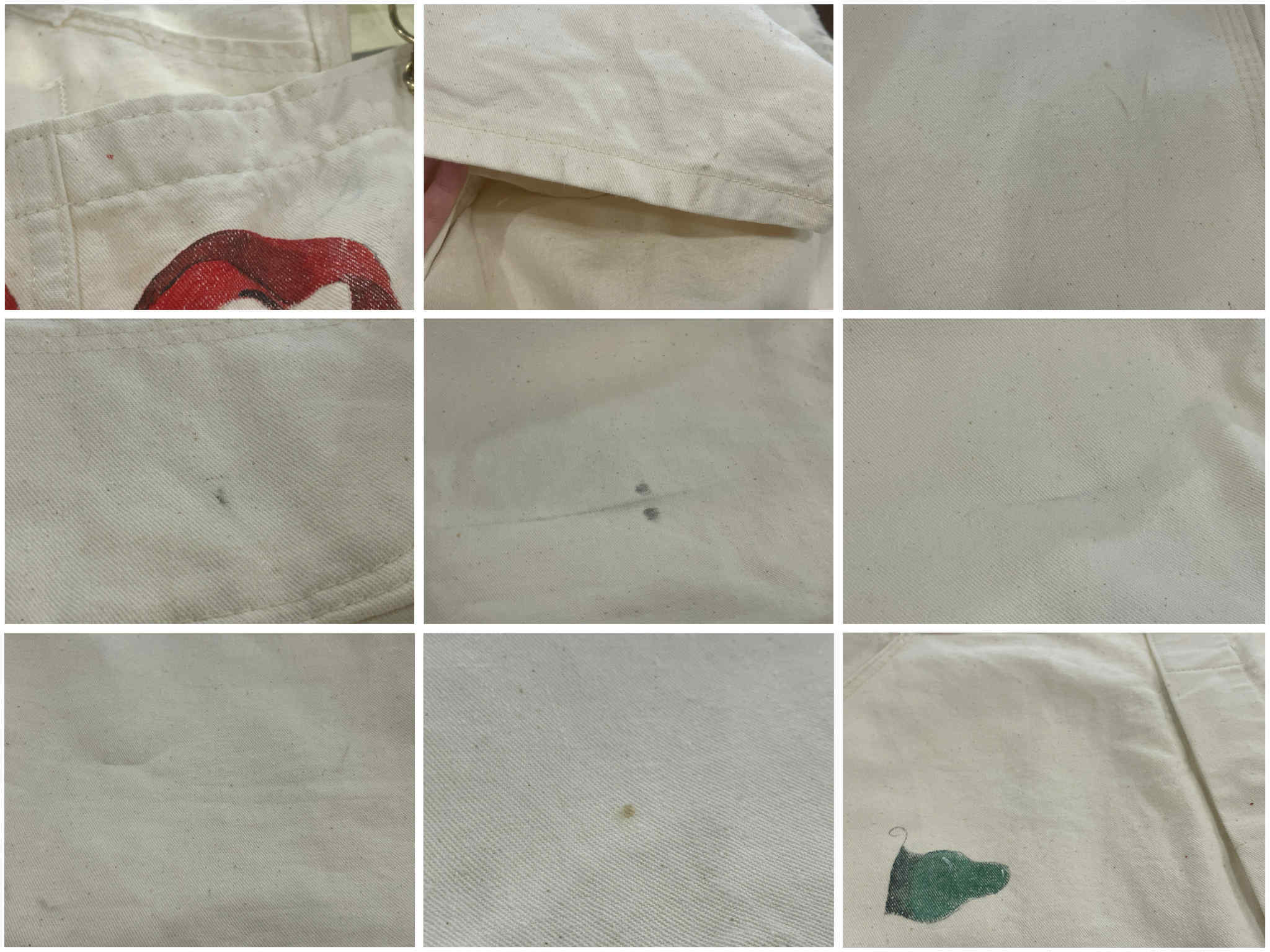 またいくつかシミや汚れ、一部ペイント途中のようなインク汚れが見受けられますが、あまり気にならない程度かと思います。