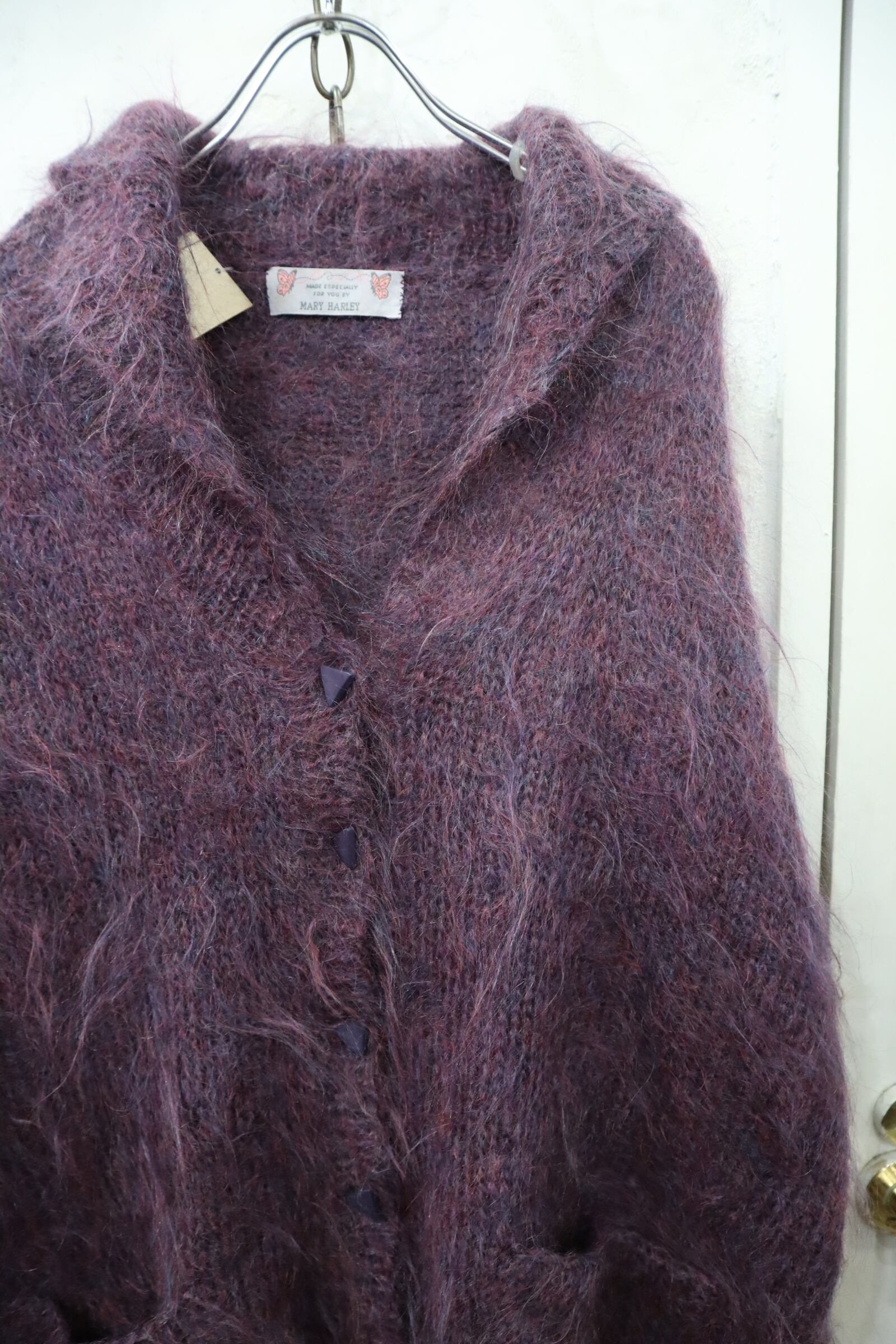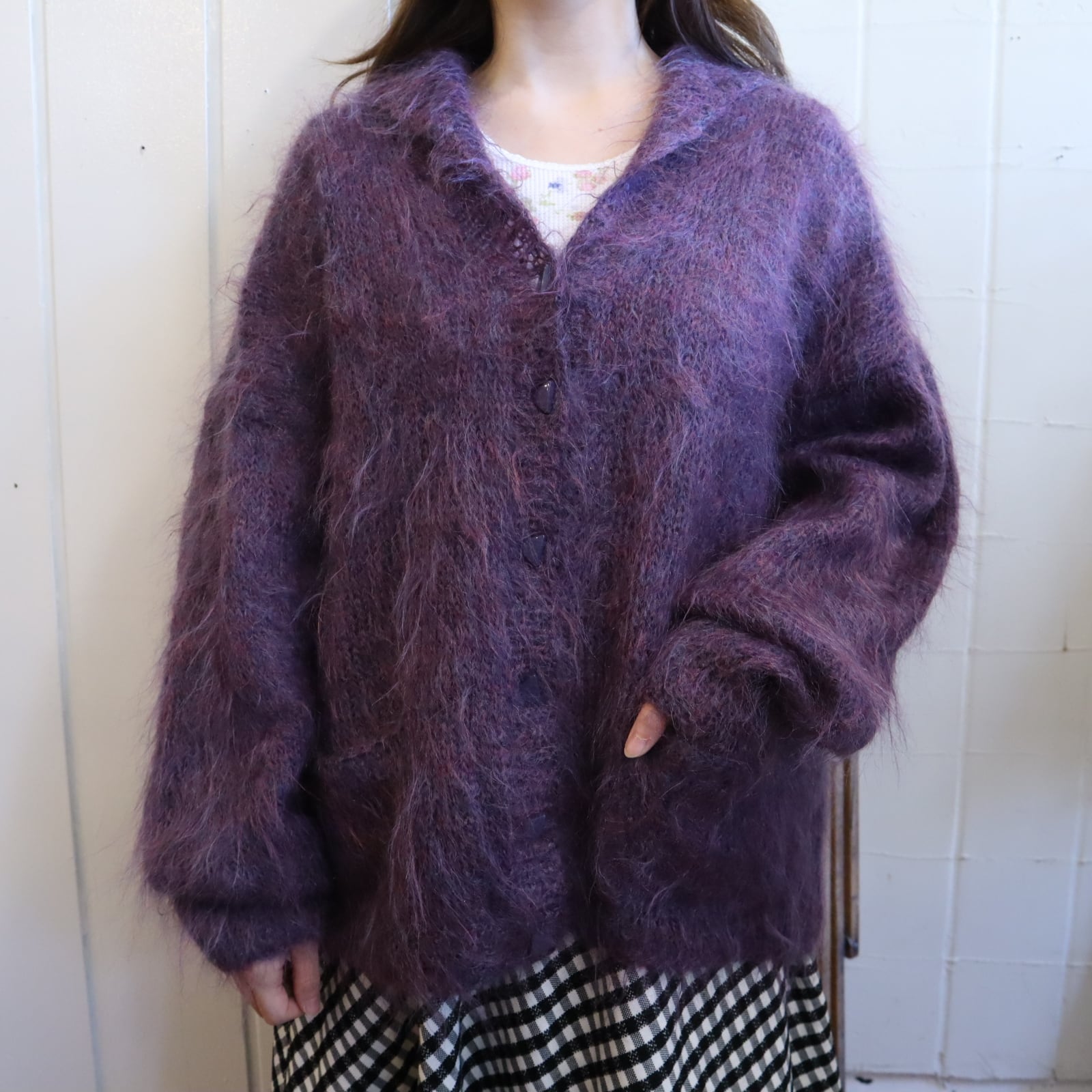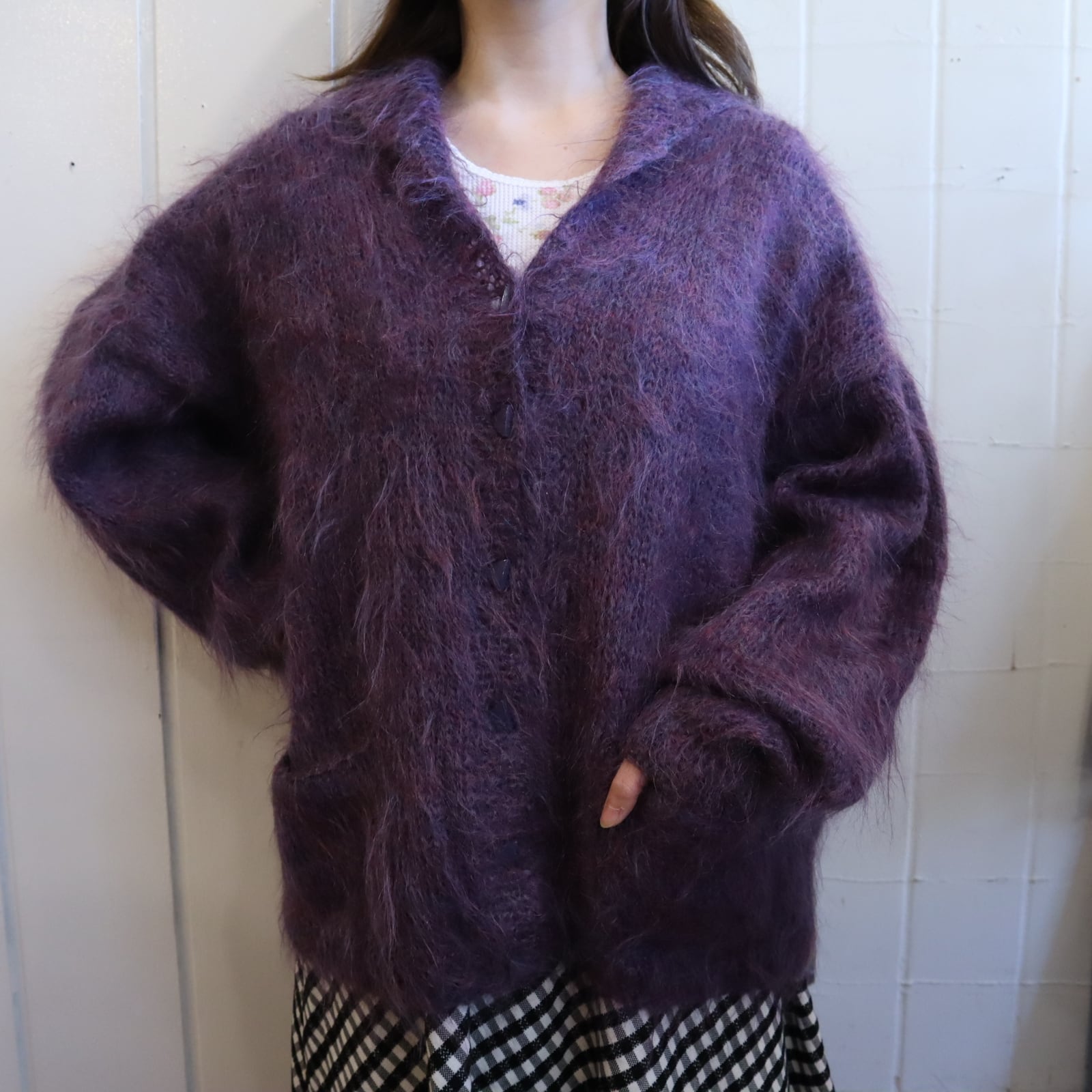 パープル×ブルーのミックスカラーデザインが可愛いショールカラーカーディガンです。