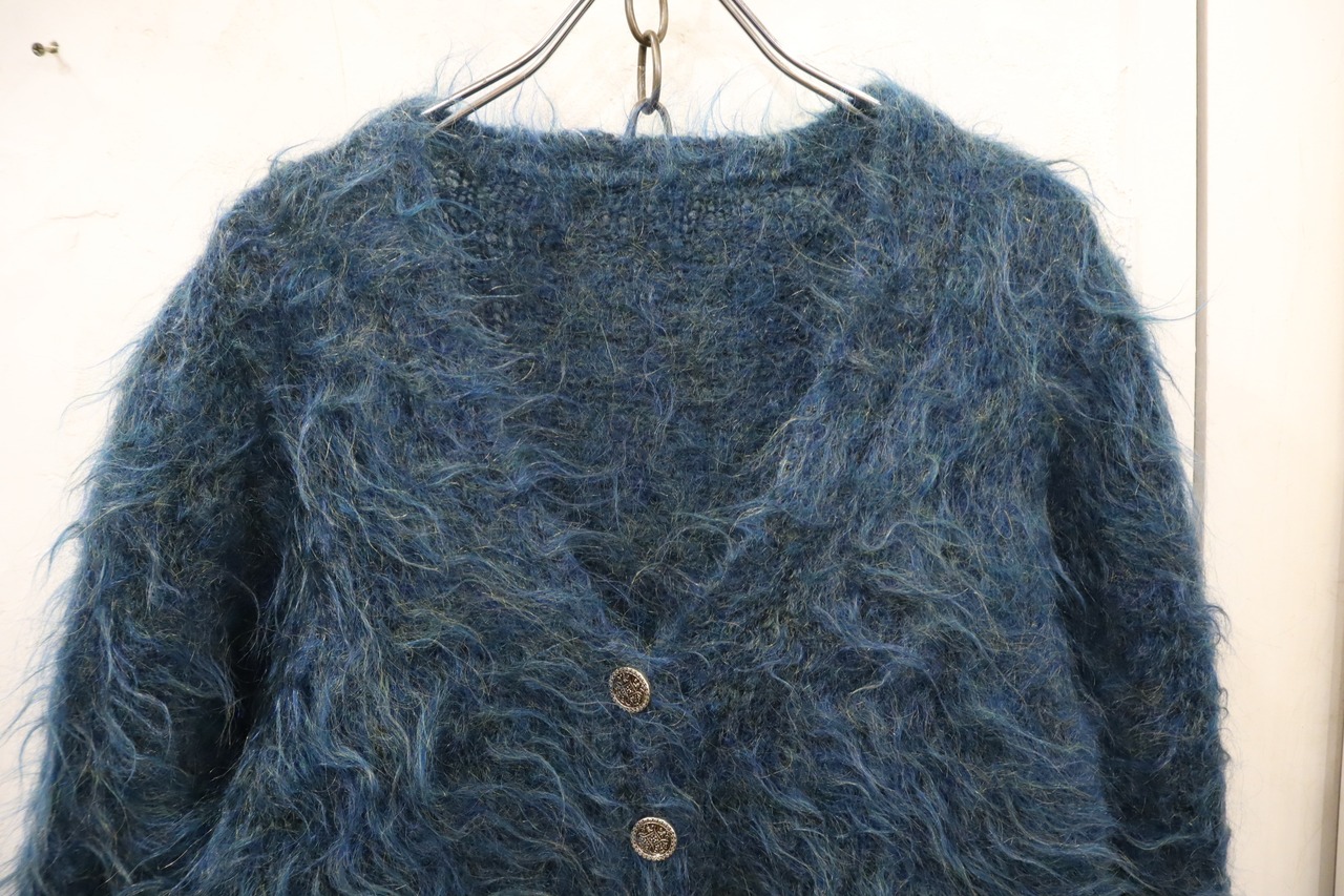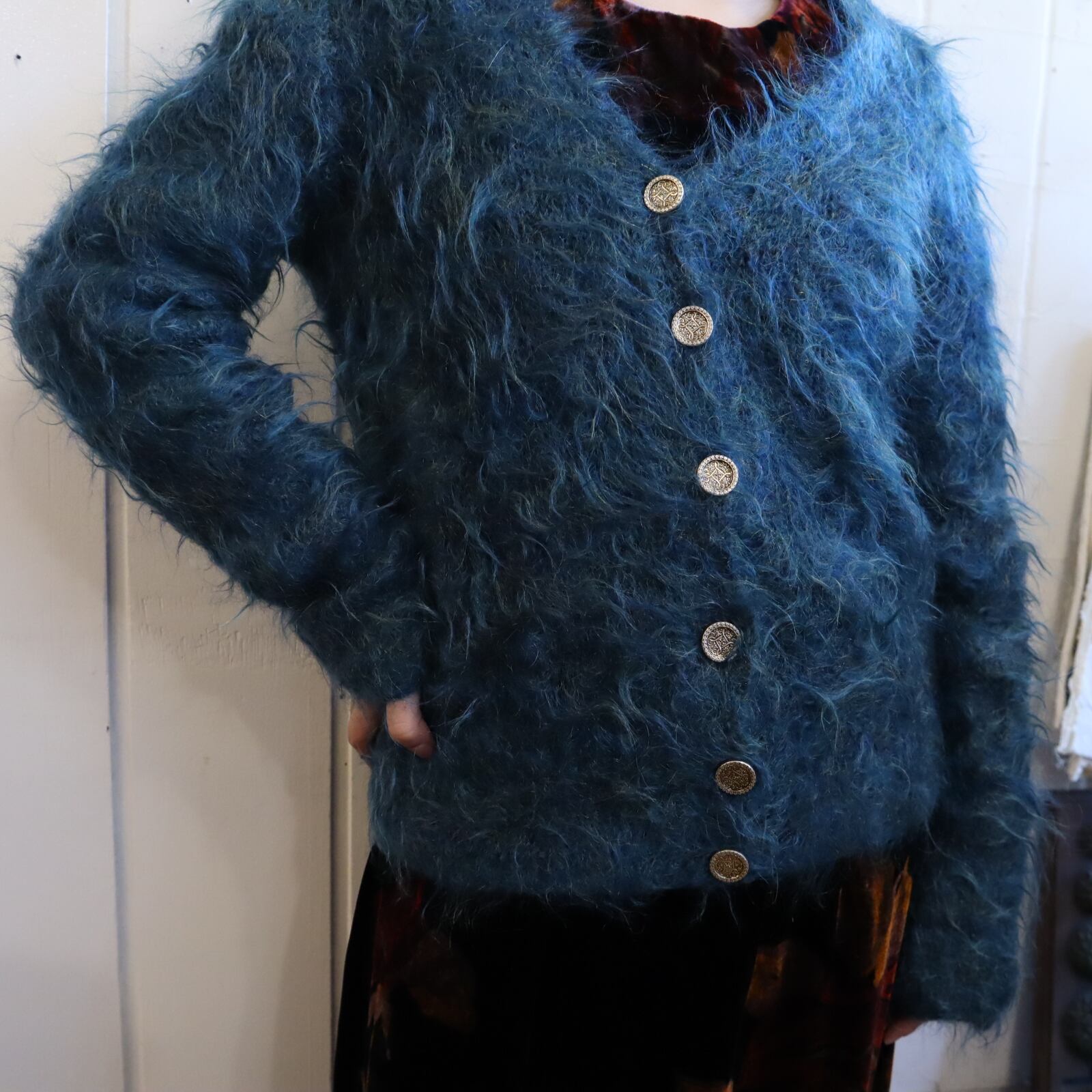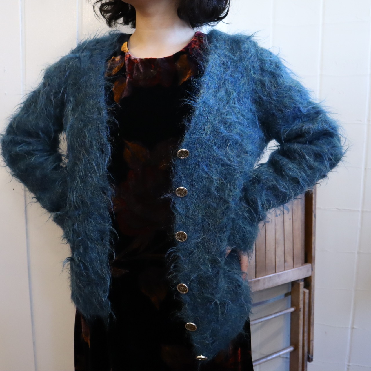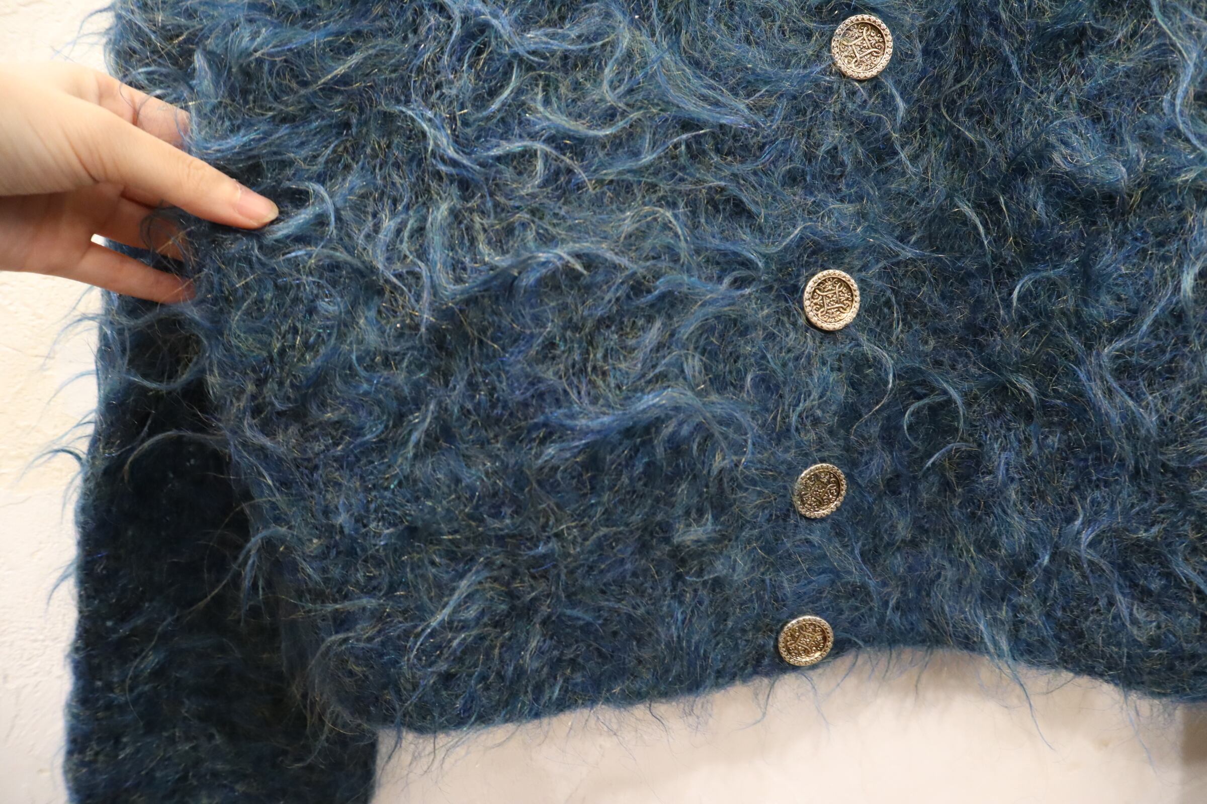 光沢感のある繊維も混じっていて、大人っぽいモヘアカーディガンです。