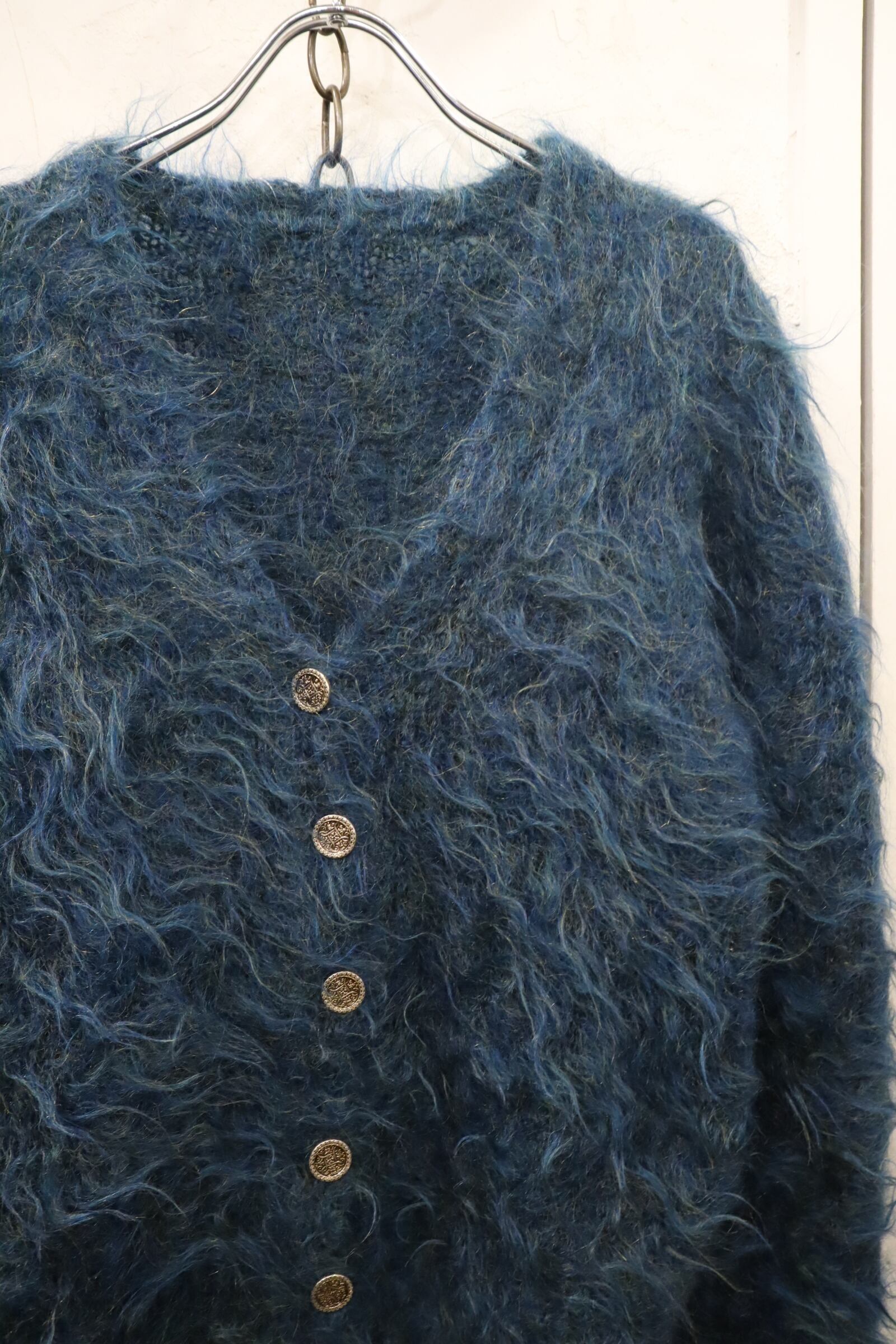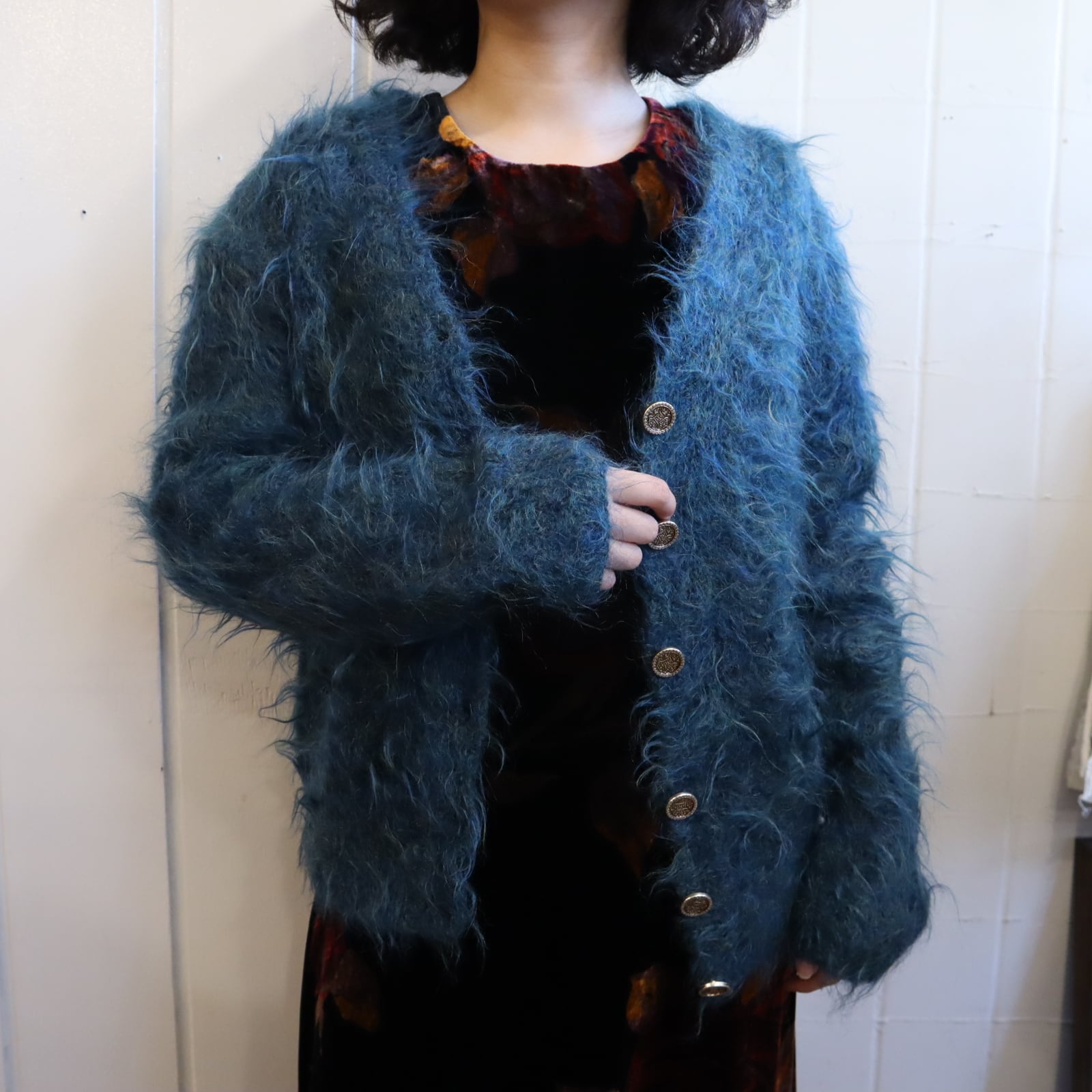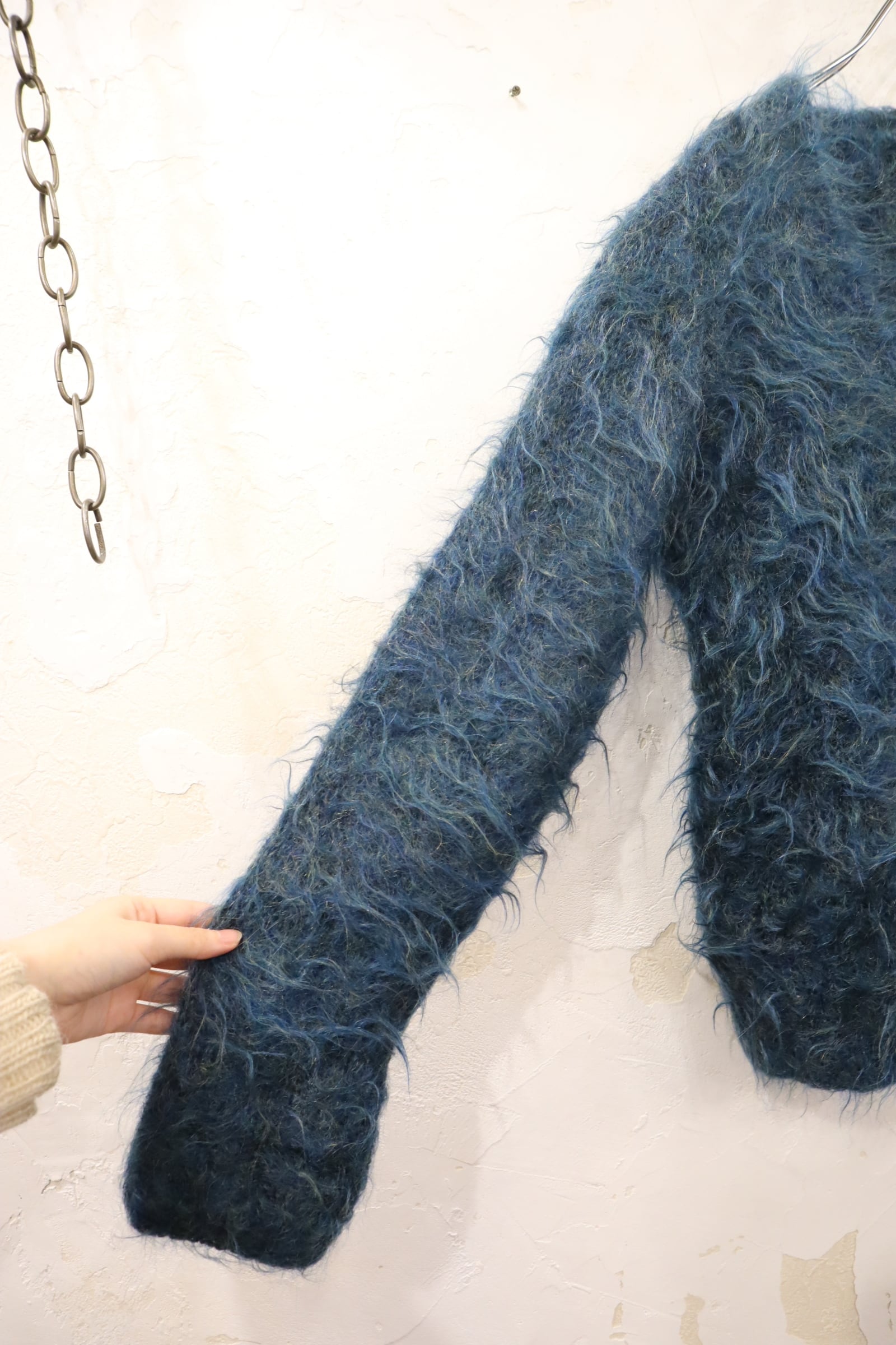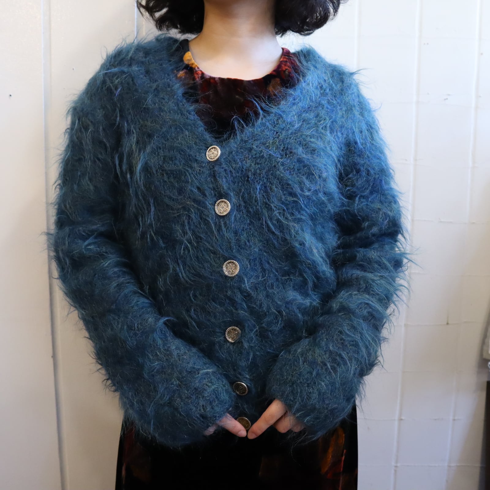 光沢感のある繊維も混じっていて、大人っぽいモヘアカーディガンです。