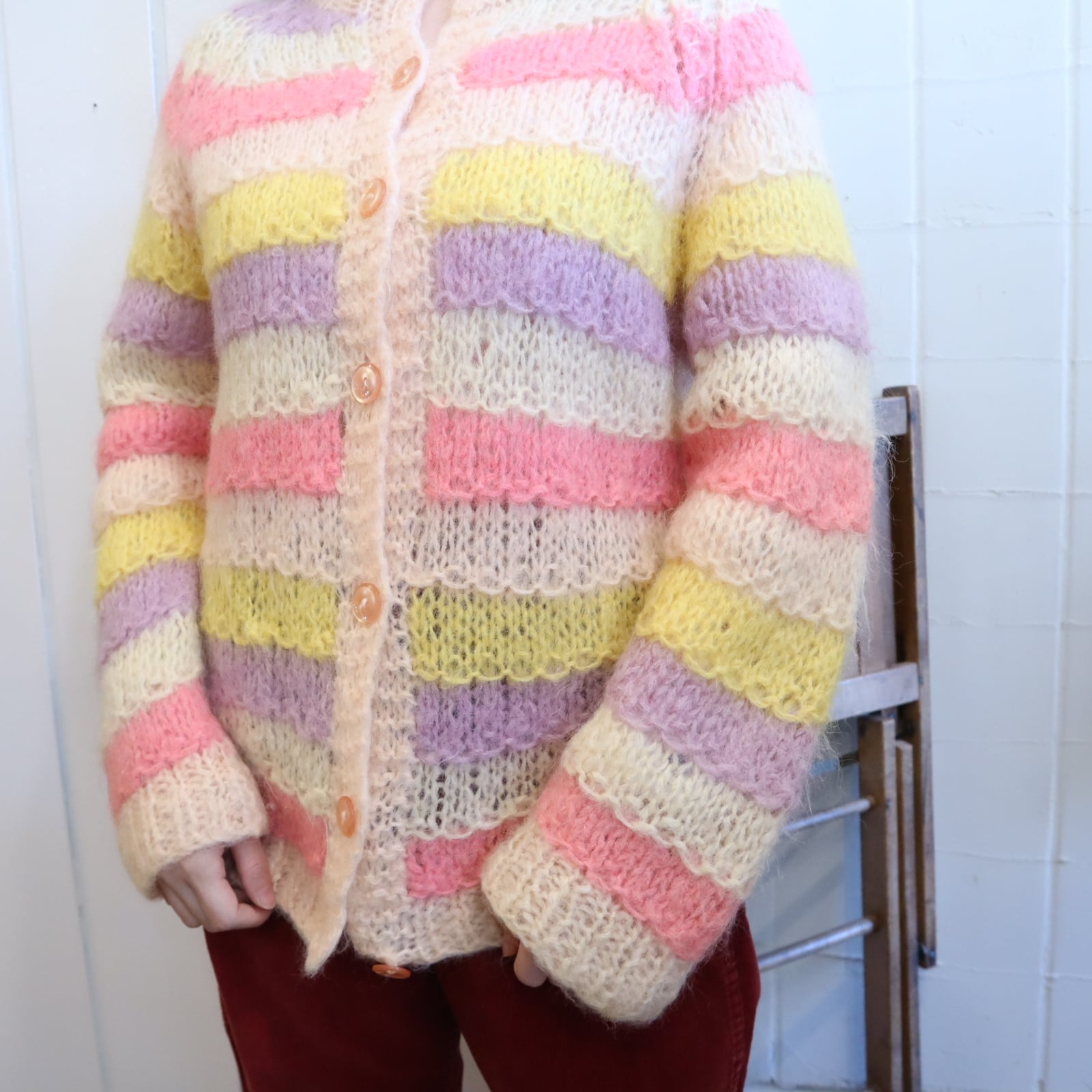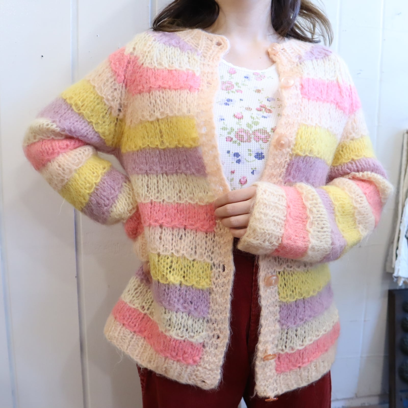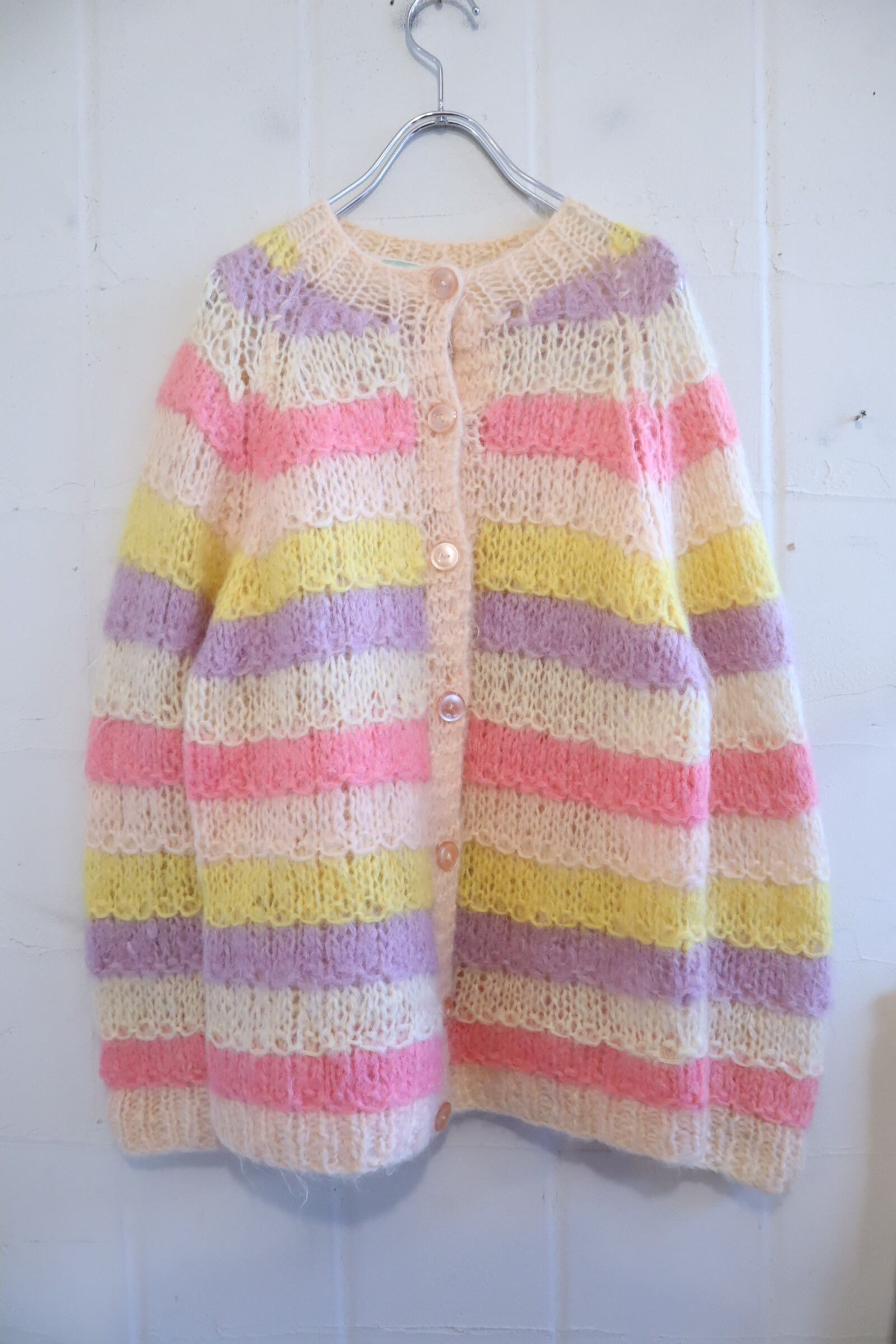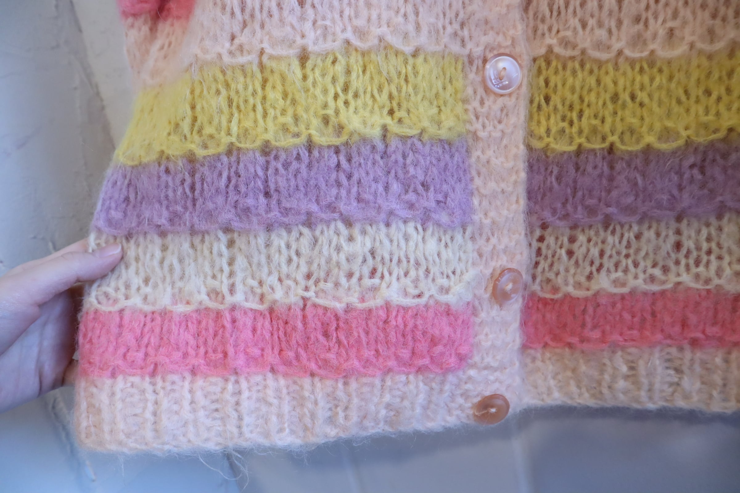 made in ITALY pink×colorful border mohair knit cardigan [l-4585]